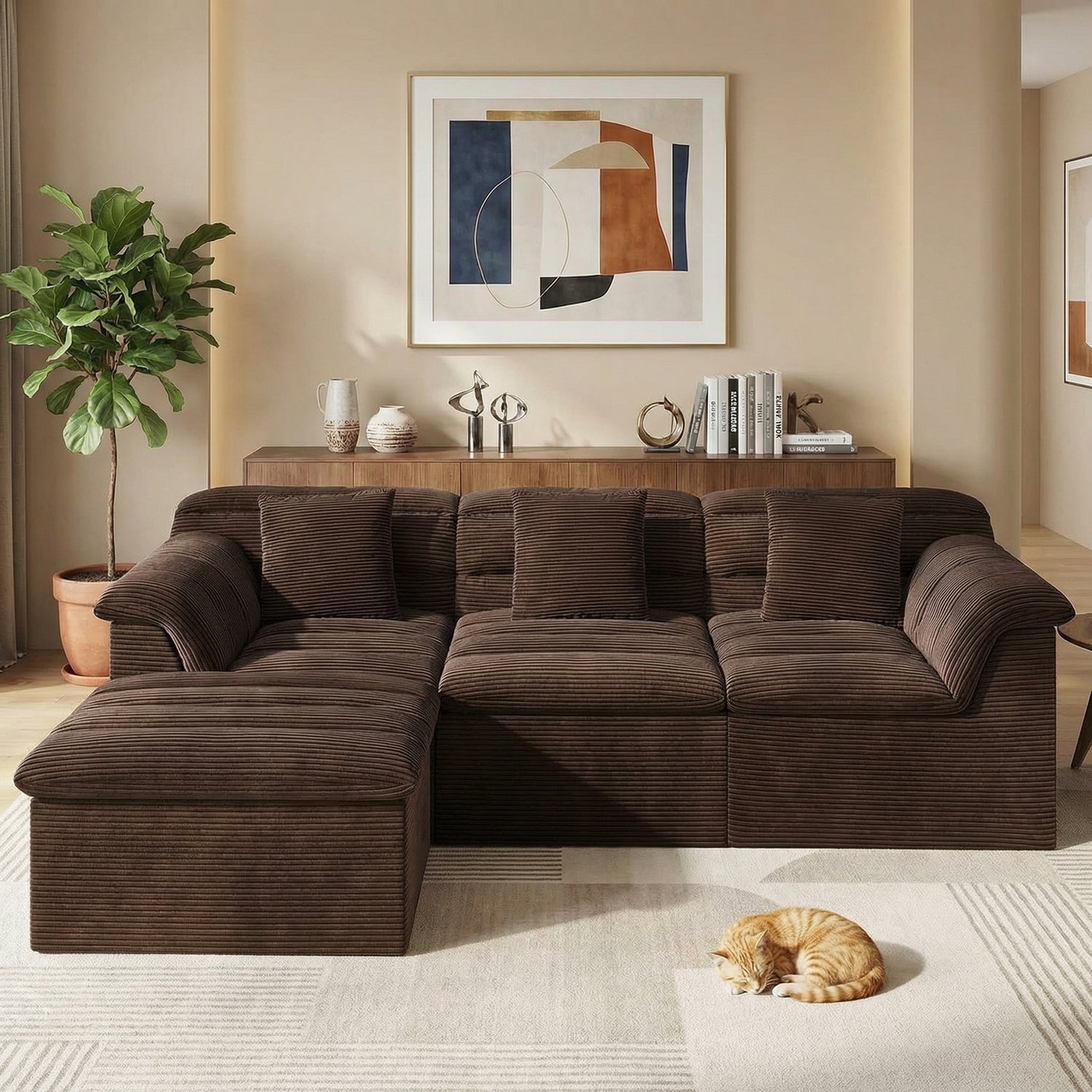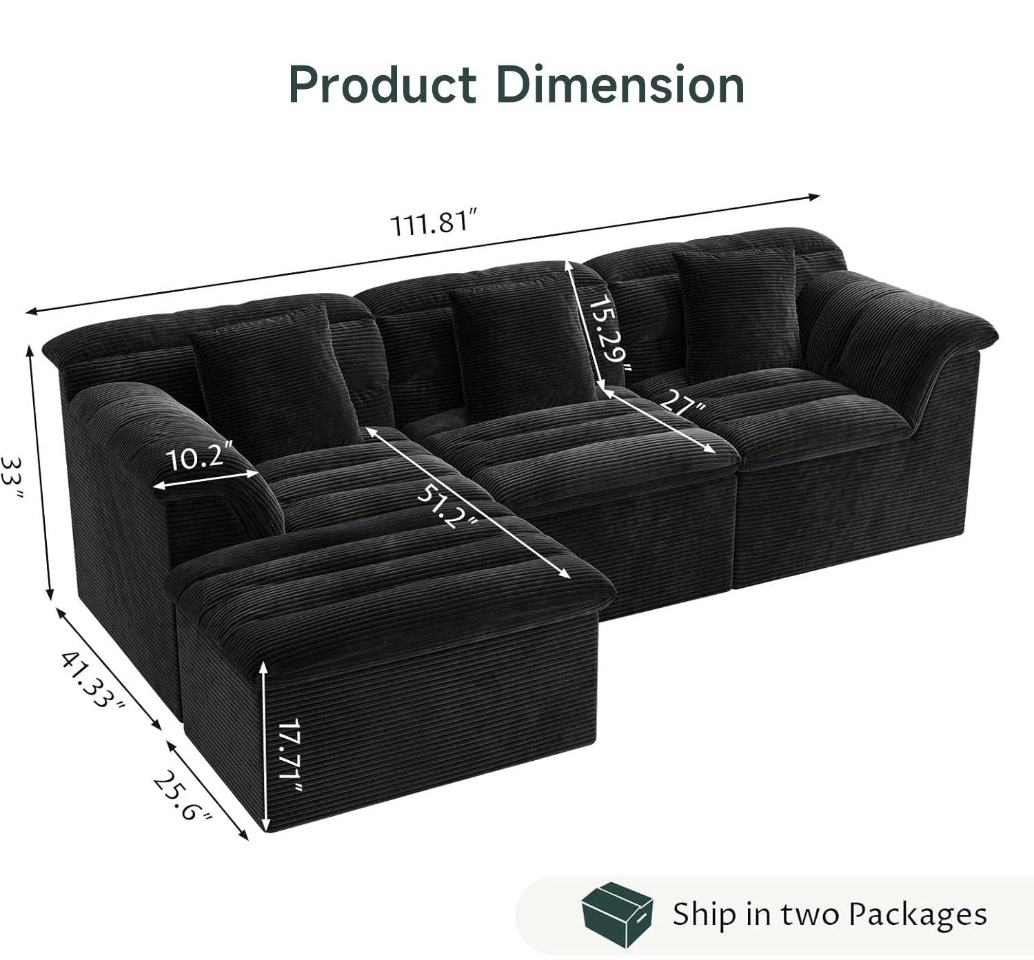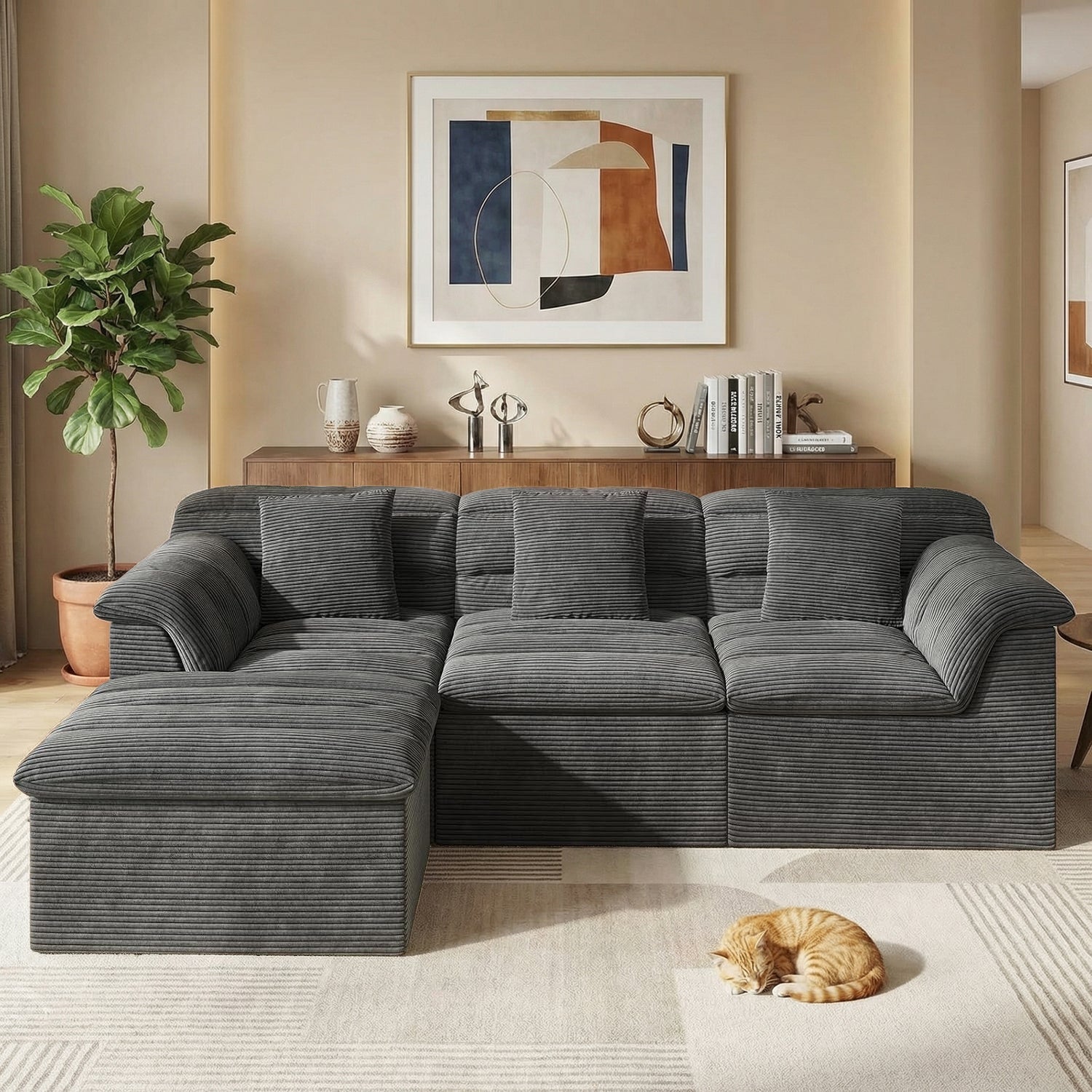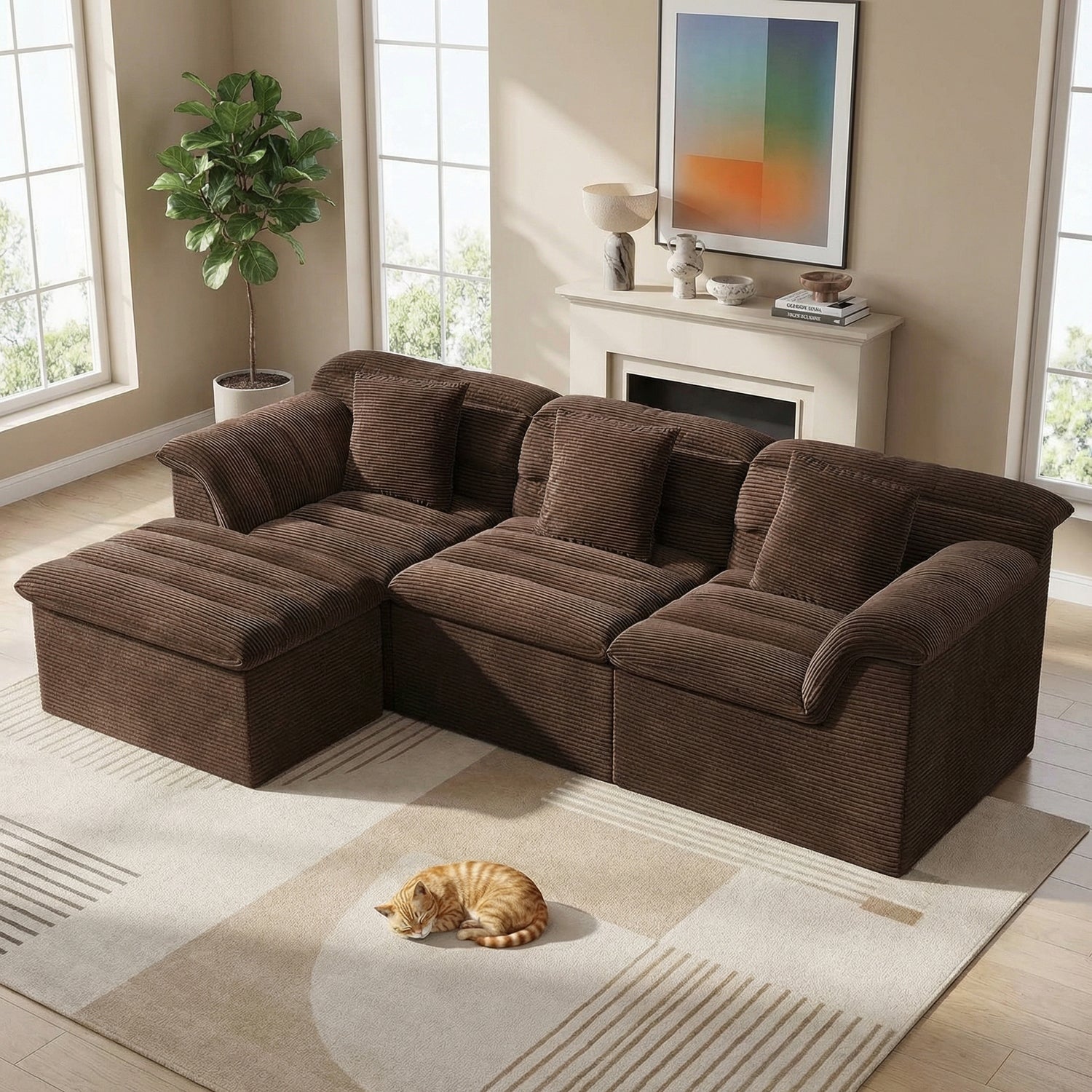 112" Modular Cloud Sectional Sofa with Ottoman, Deep-Seat Corduroy Design