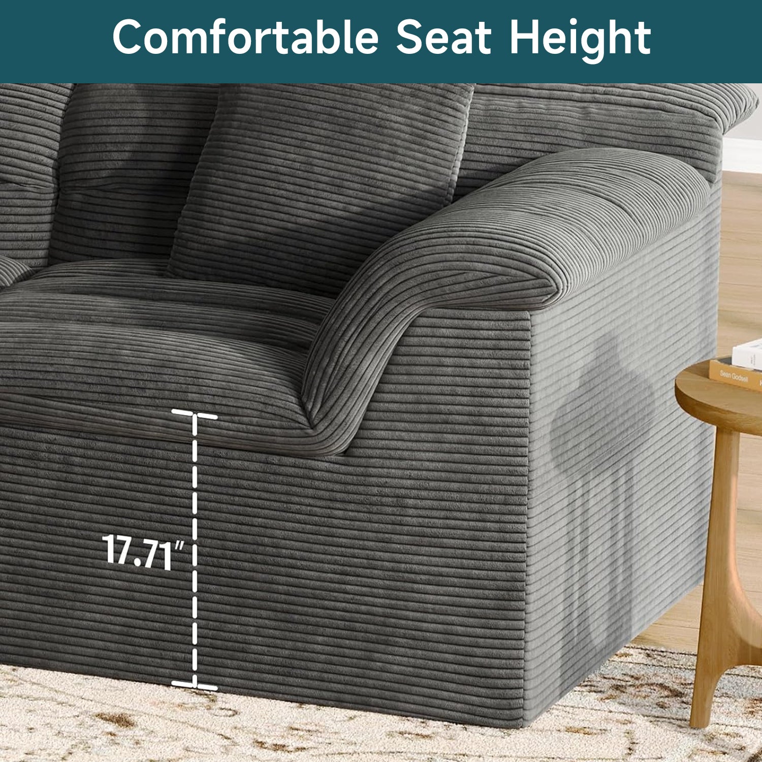 Its durable corduroy upholstery delivers a soft, cozy feel with long-lasting performance. The finely textured fabric adds warmth and visual depth while remaining sturdy enough for everyday use, making it a stylish and comfortable choice for living rooms, apartments, or bedrooms.