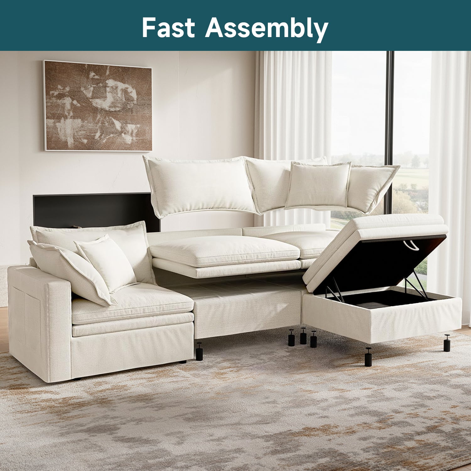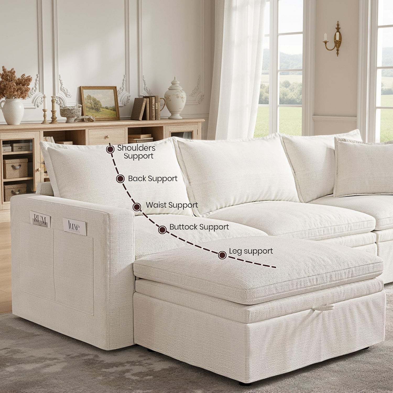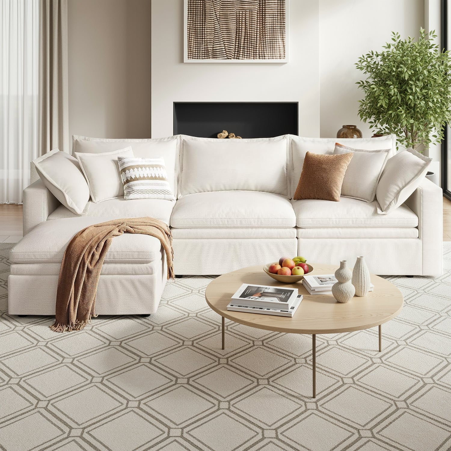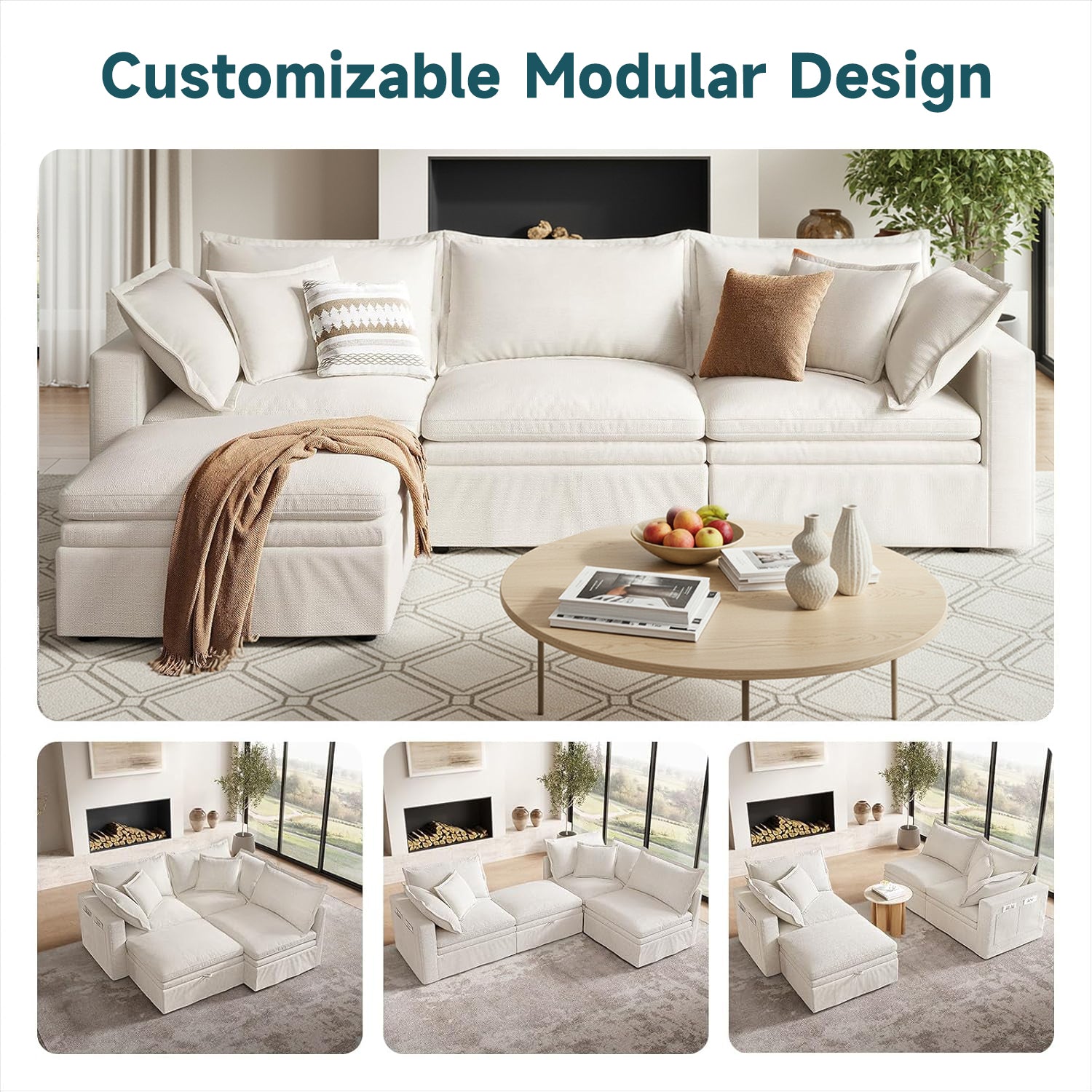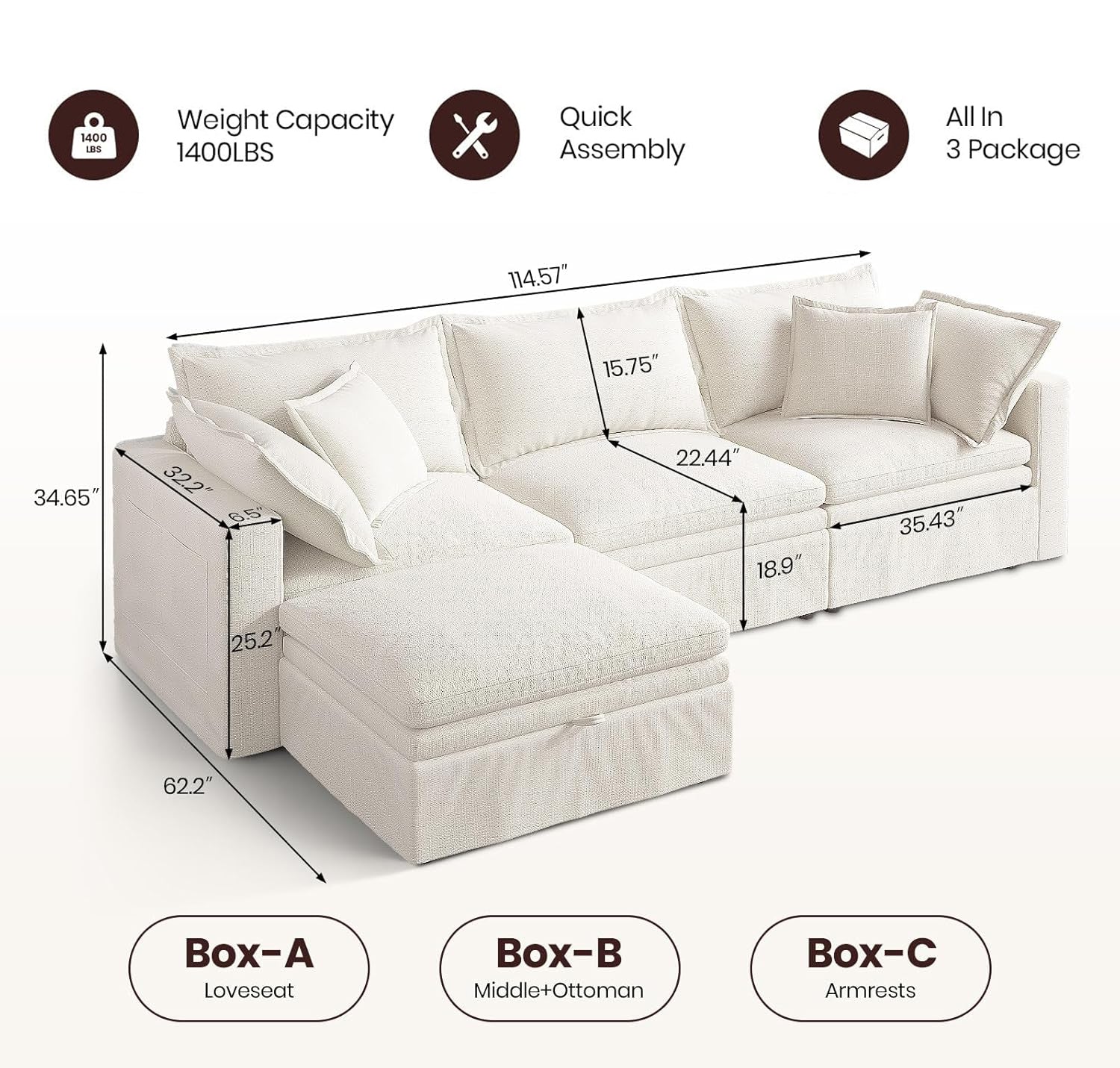 114" Oversized Modular Cloud Couch, Comfy L-Shaped Sectional Sofa with Storage Ottoman & Detachable Washable Covers for Modern Living Rooms