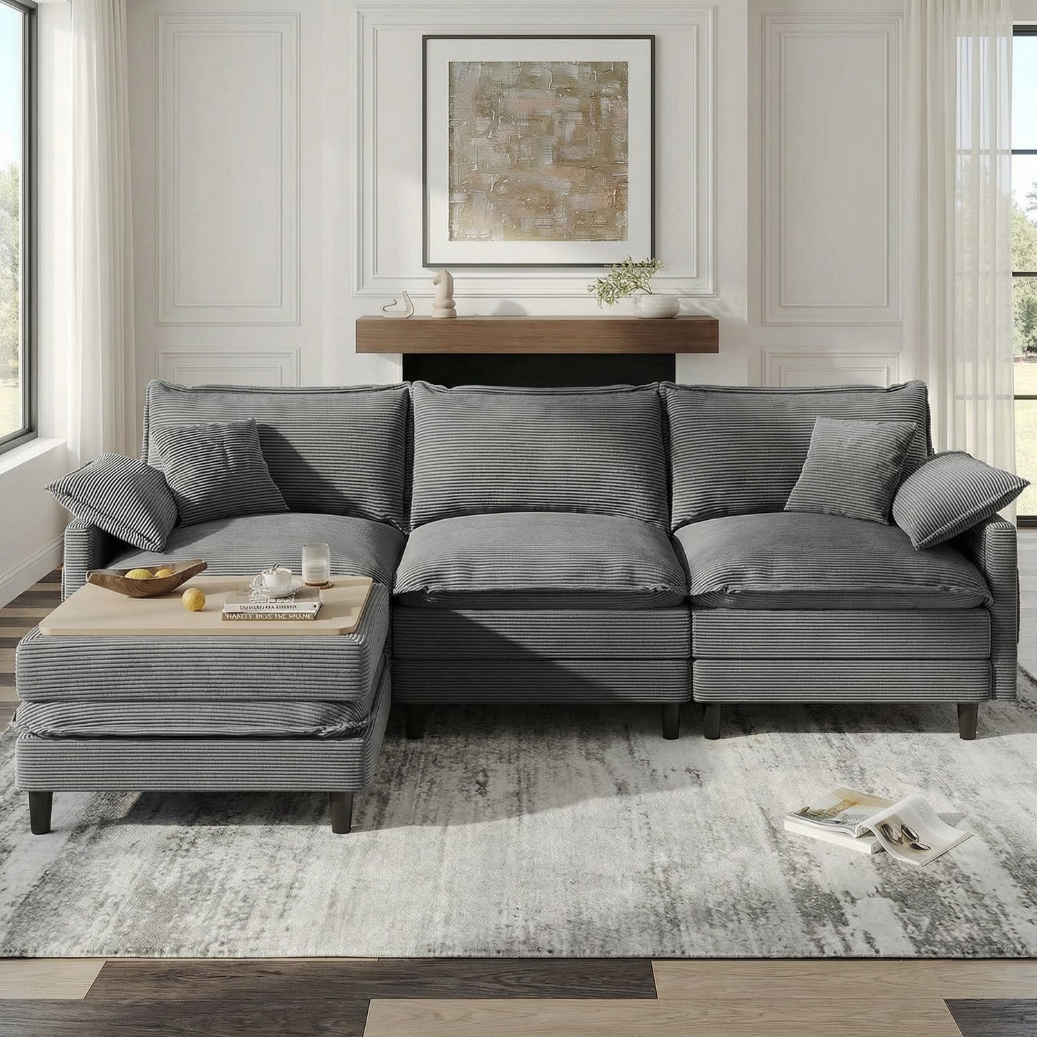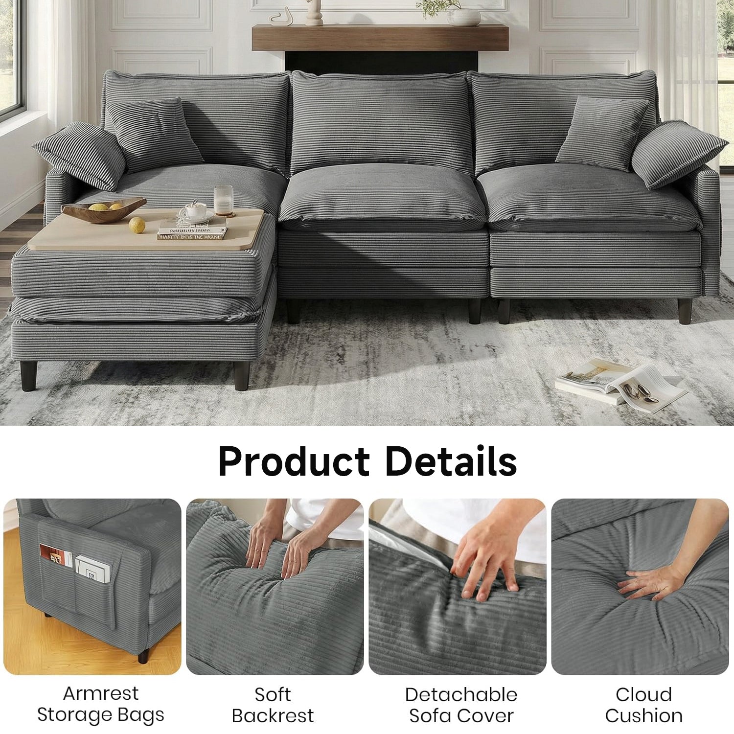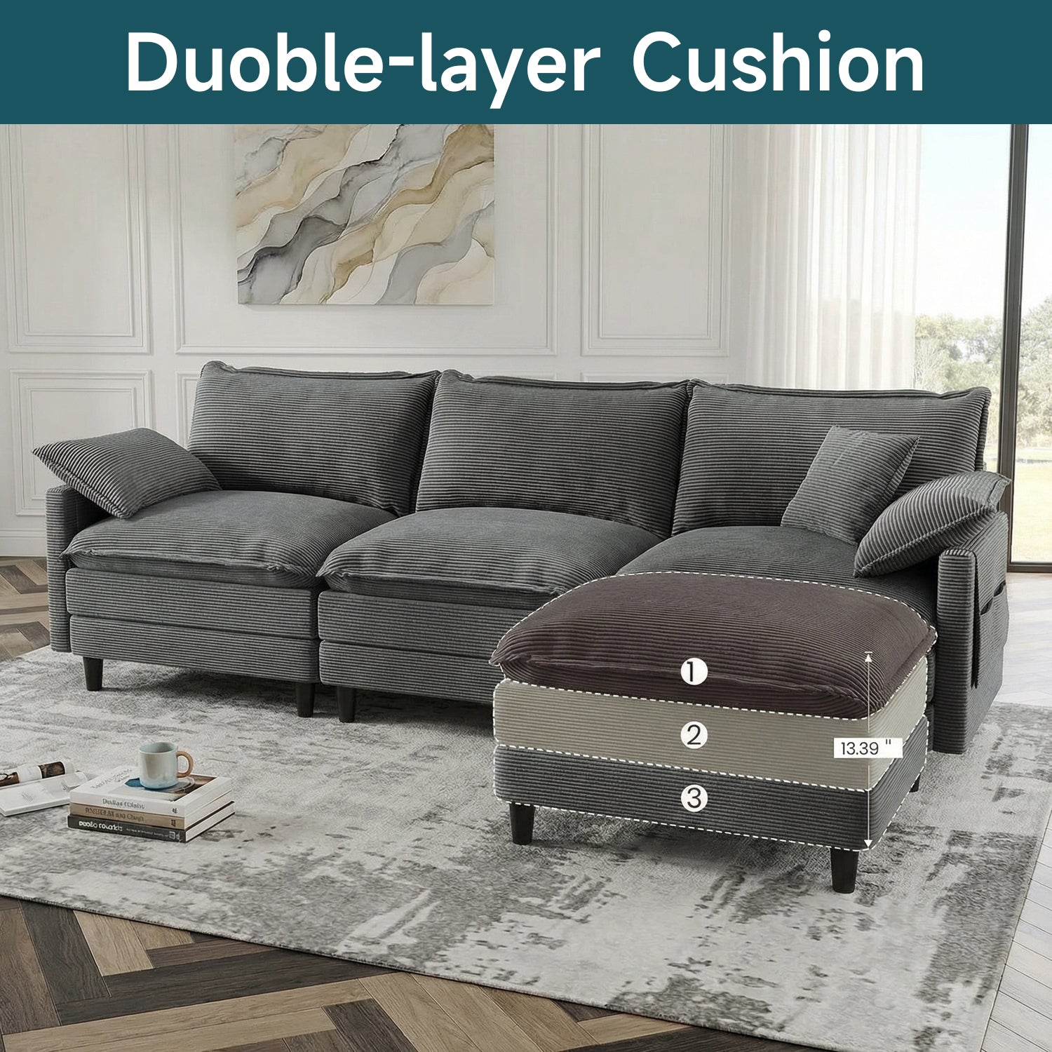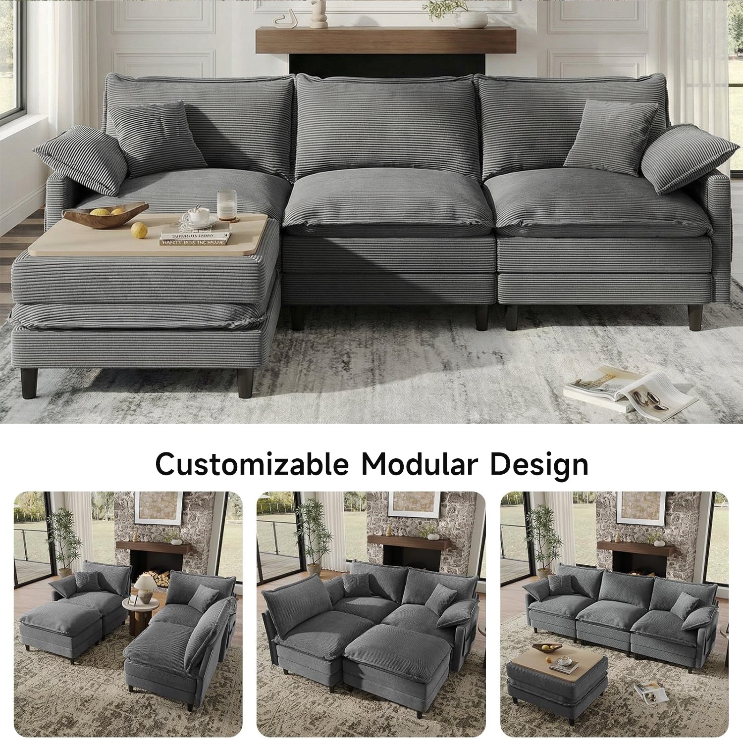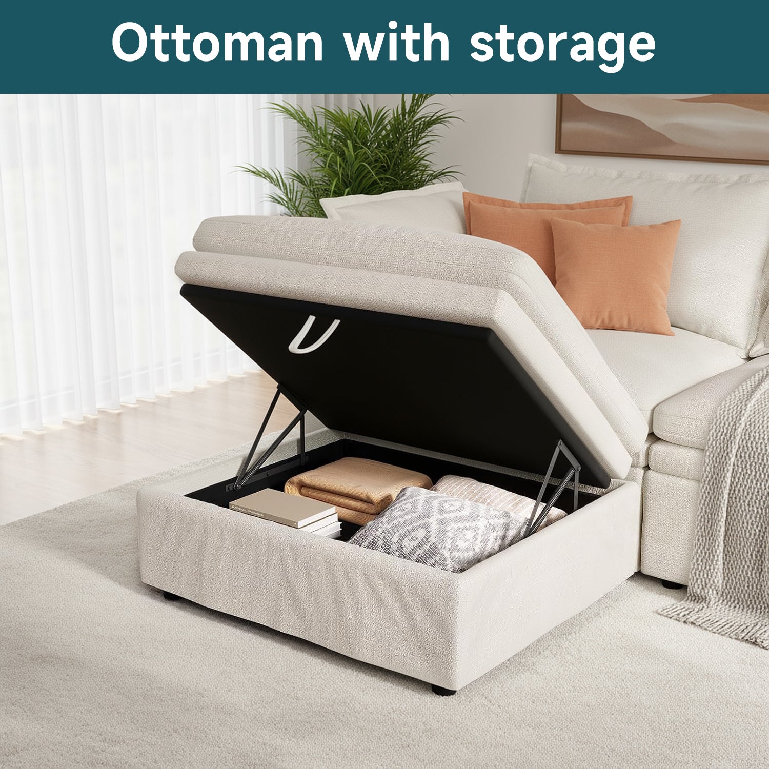 114" Oversized Modular Cloud Couch, Comfy L-Shaped Sectional Sofa with Storage Ottoman & Detachable Washable Covers for Modern Living Rooms