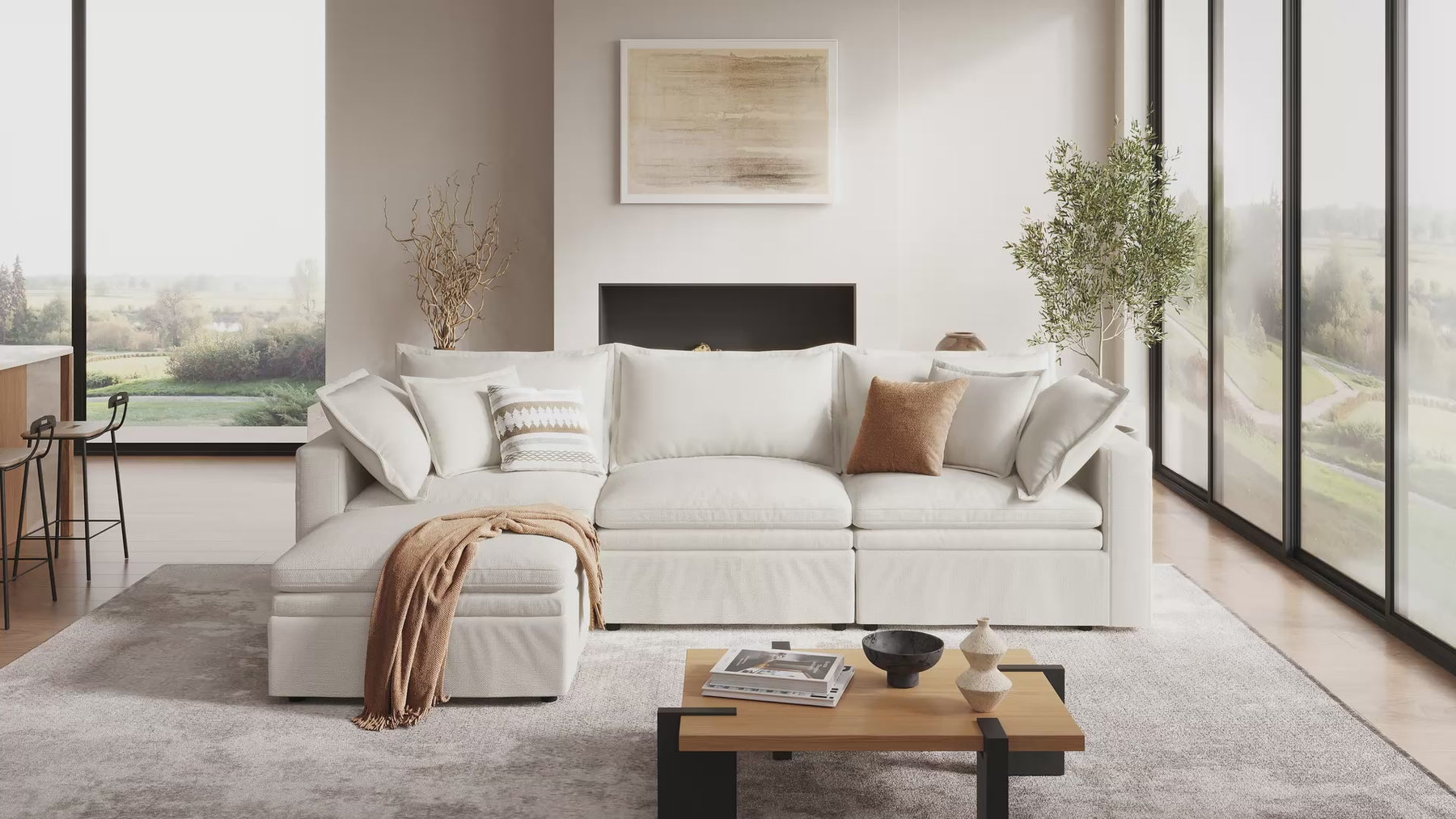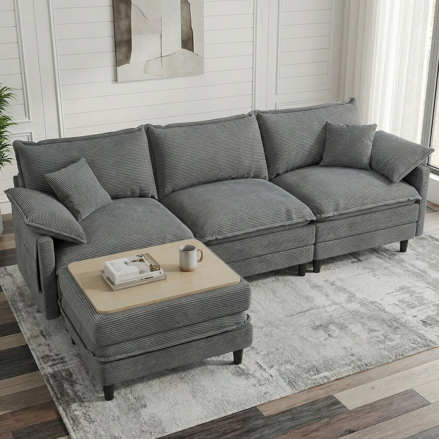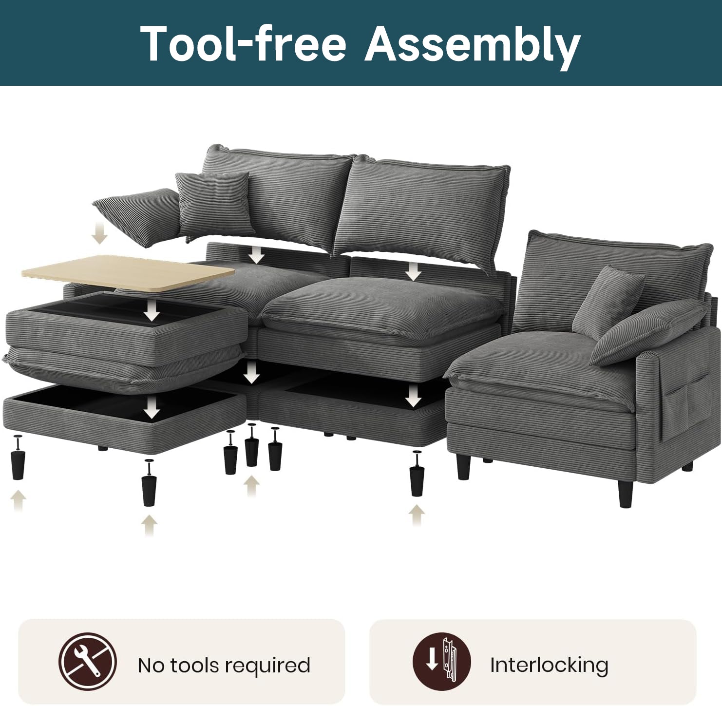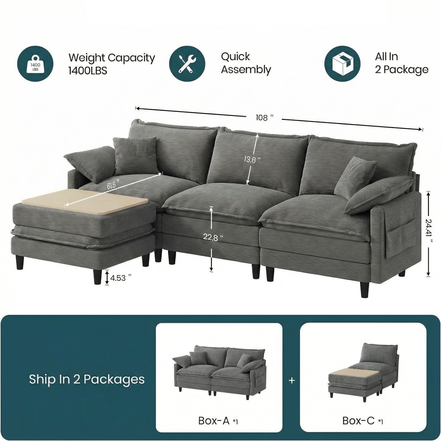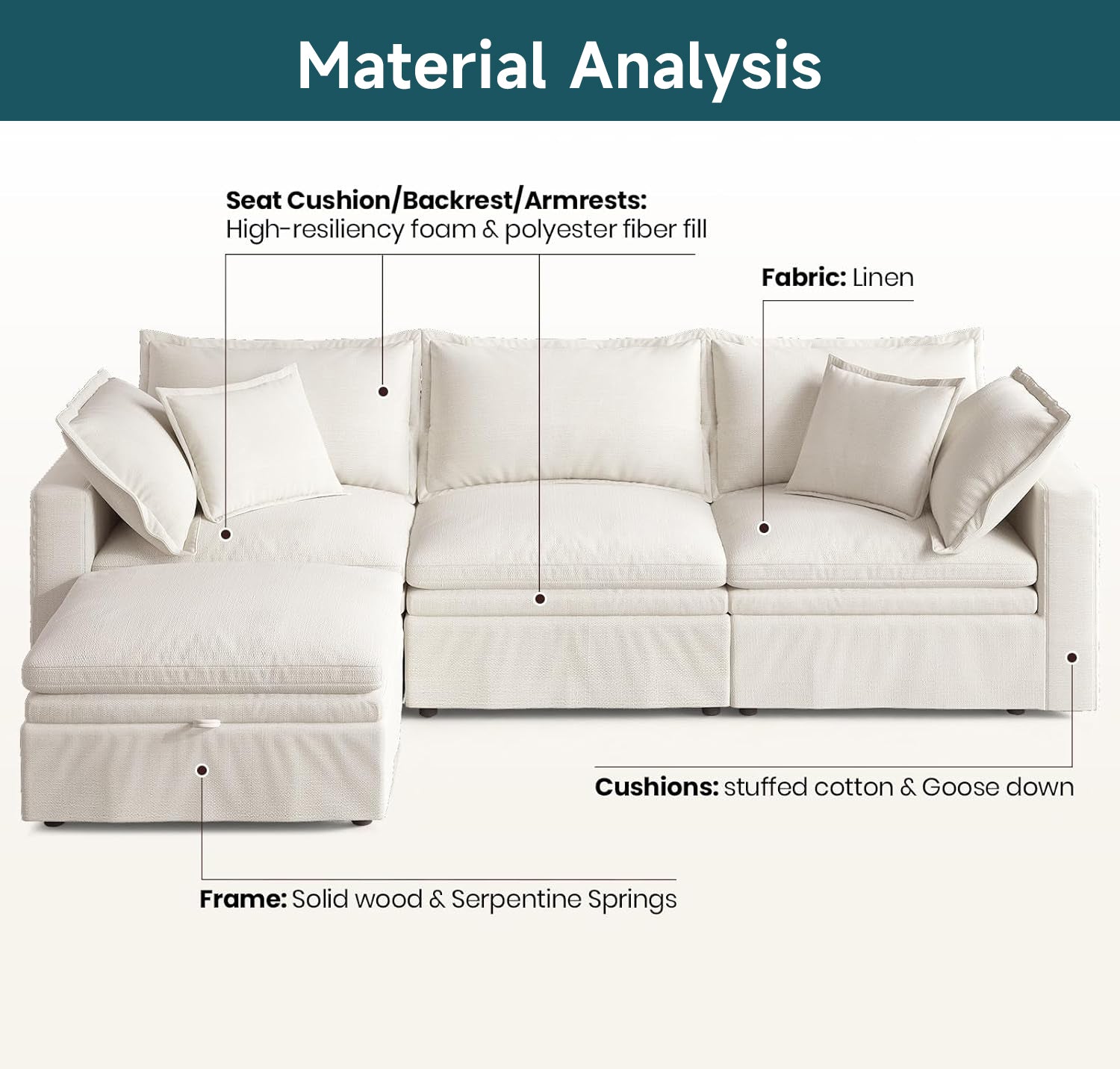 114" Oversized Modular Cloud Couch, Comfy L-Shaped Sectional Sofa with Storage Ottoman & Detachable Washable Covers for Modern Living Rooms