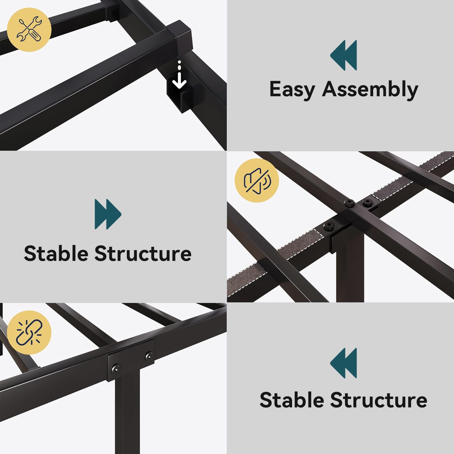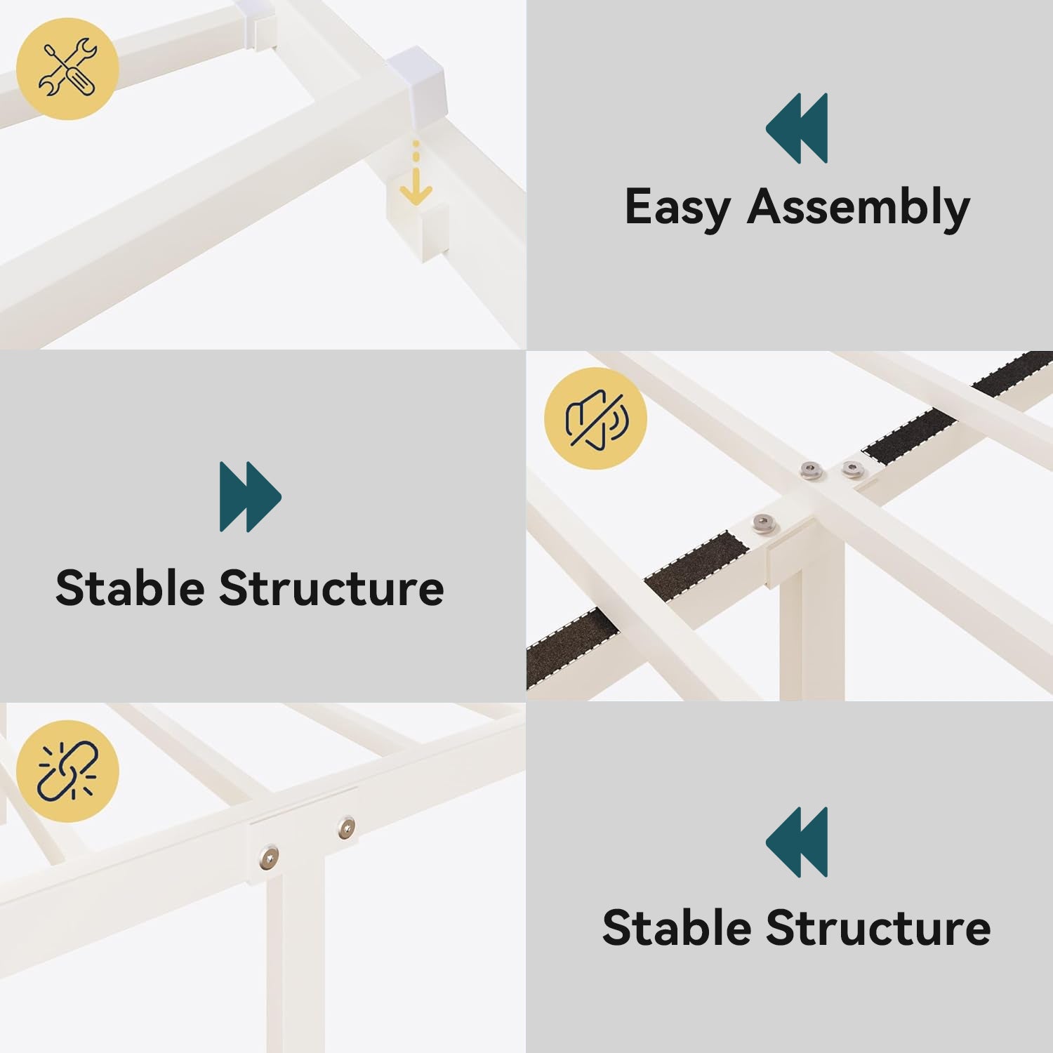 It also creates a quieter sleeping environment with a thoughtful noise-reducing design. The groove system keeps the slats firmly in place, while EVA foam strips on the metal beams help reduce friction and minimize squeaking sounds.