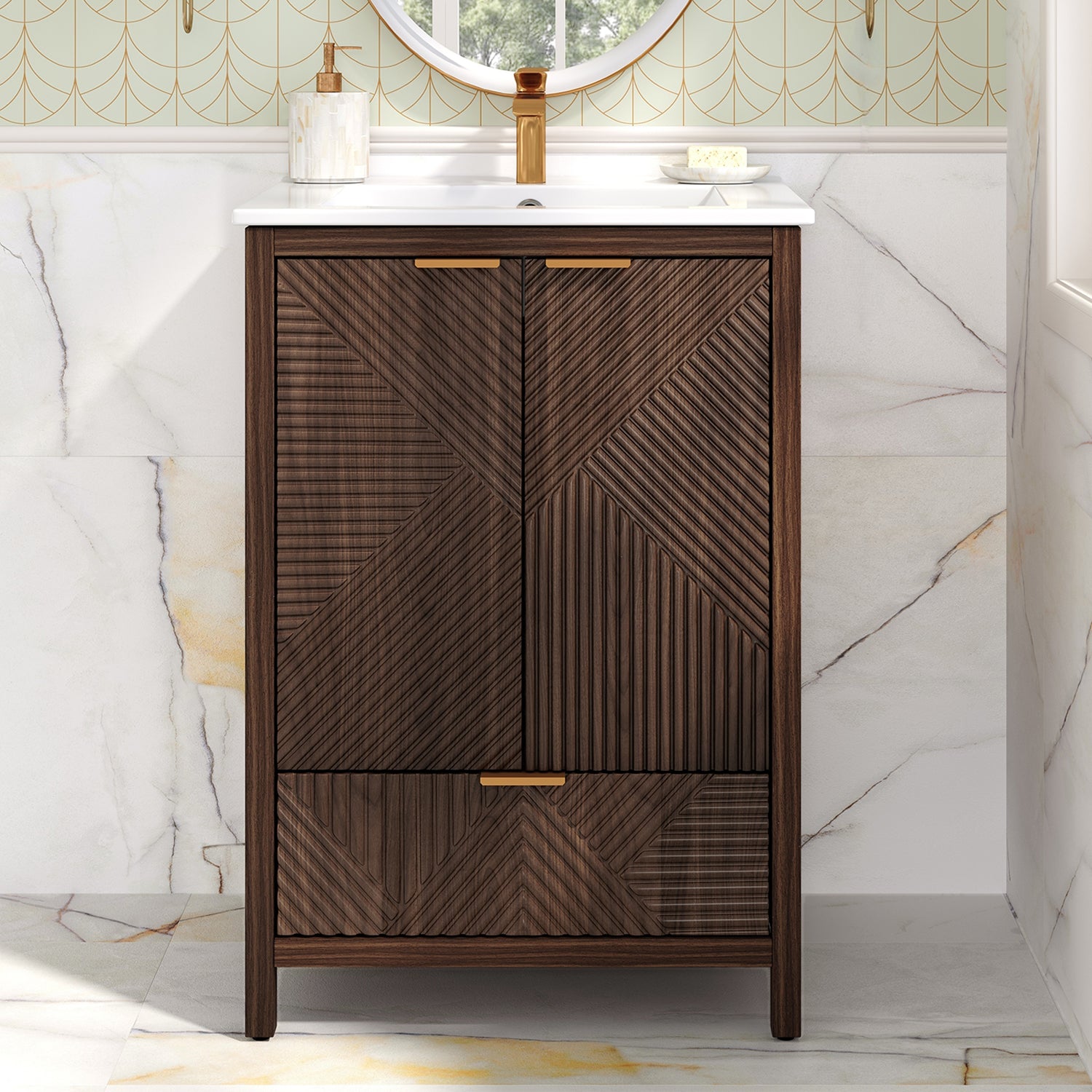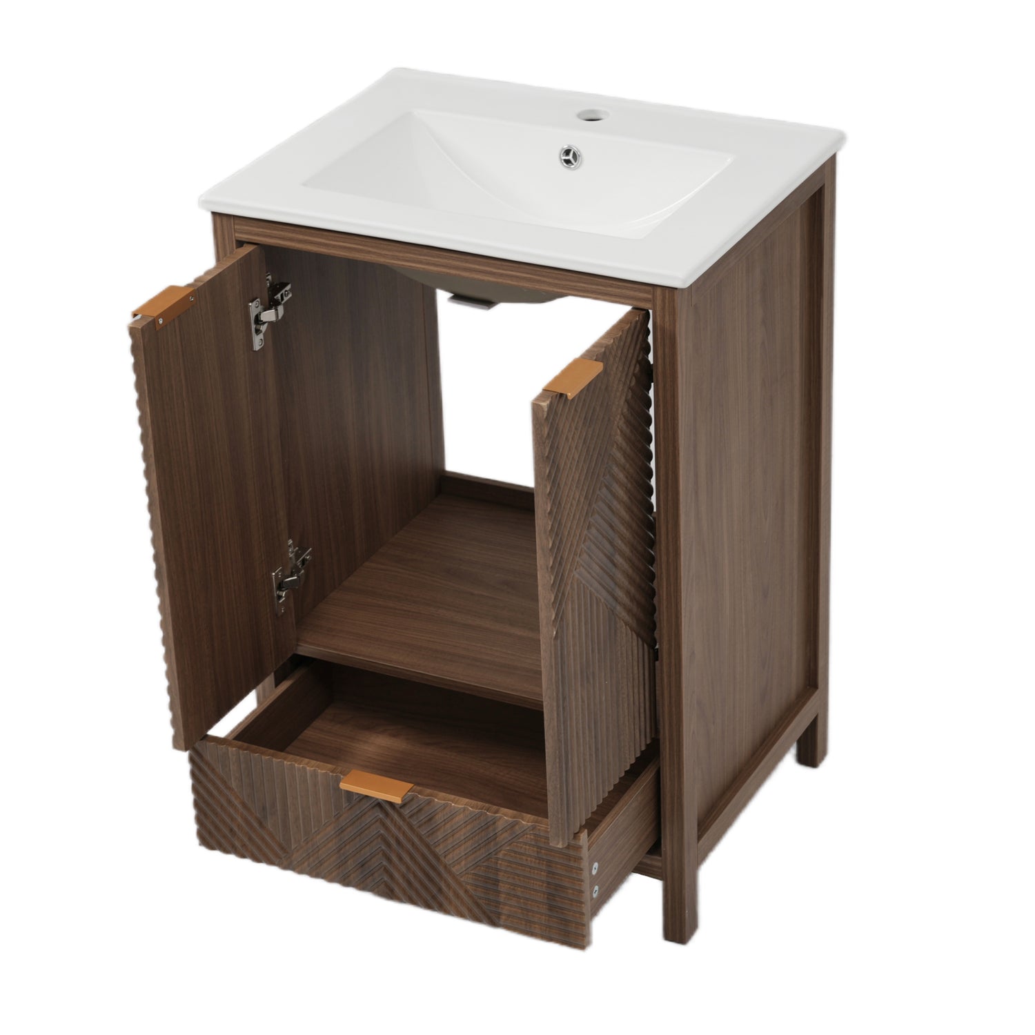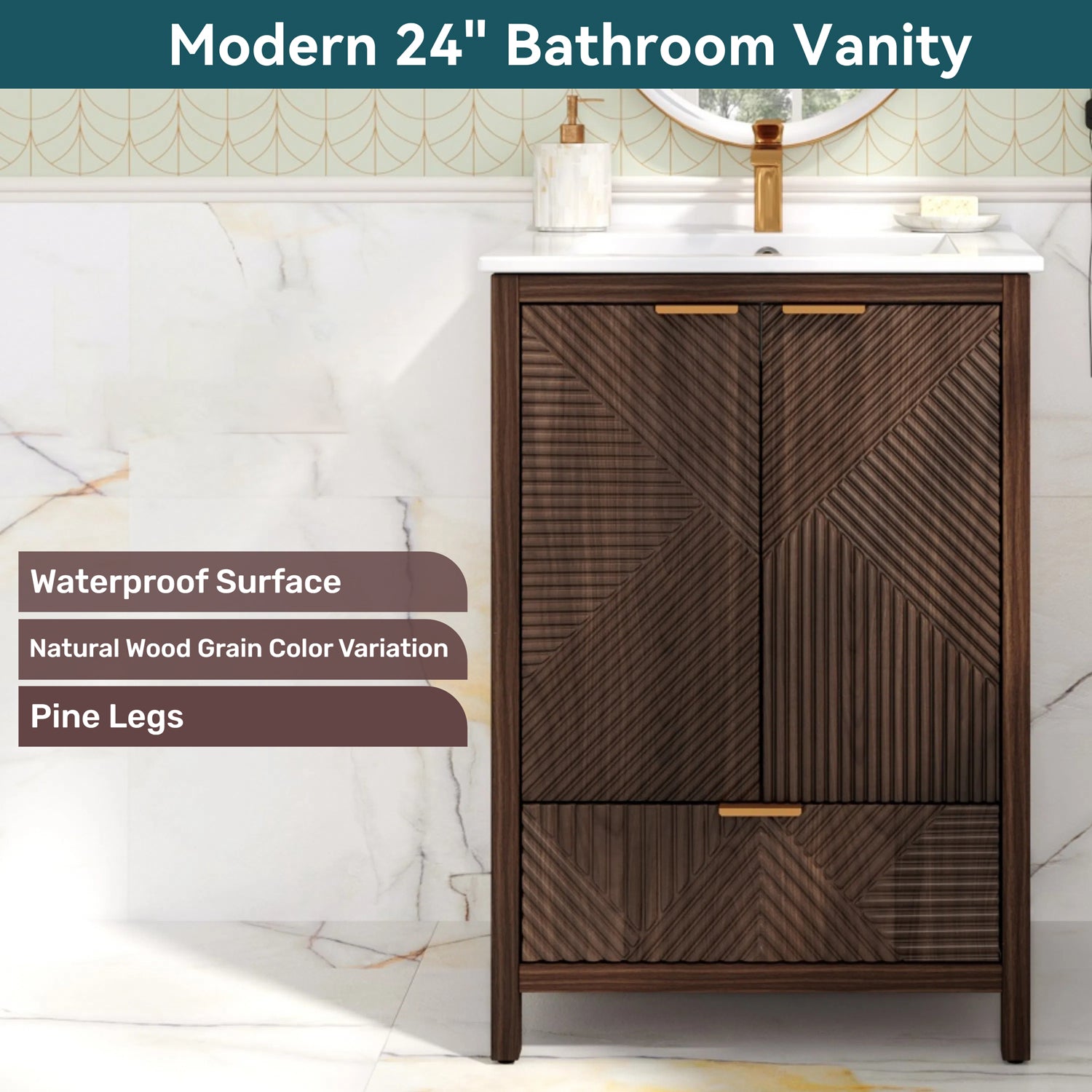 24" Bathroom Vanity with Sink, Modern Freestanding Vanity Cabinet with Drawer & Storage, Soft-Close Hinges
