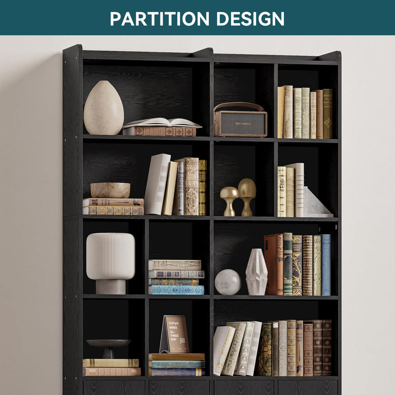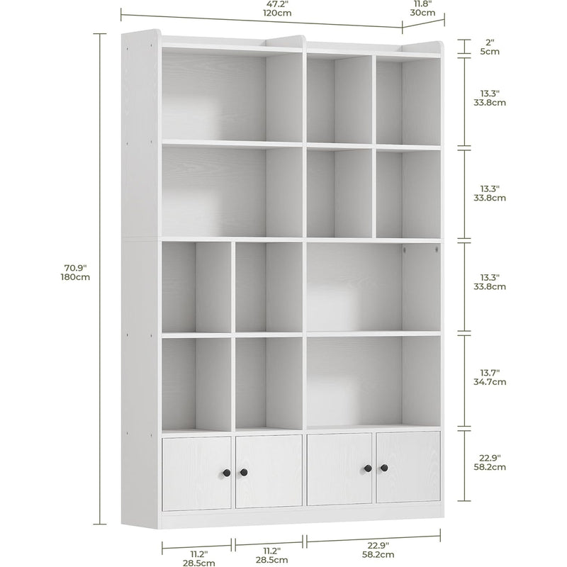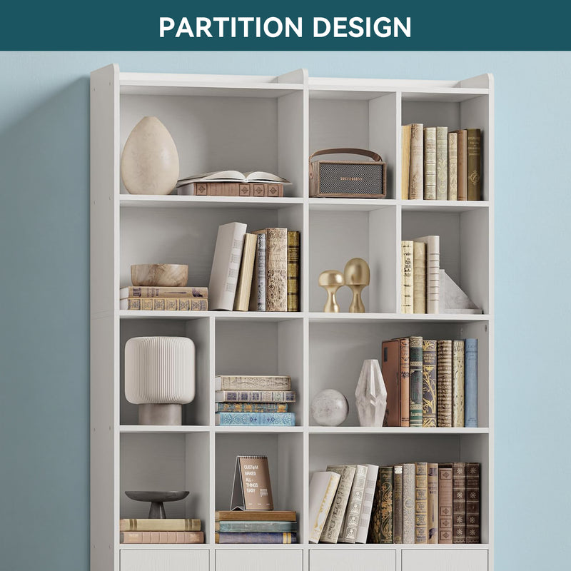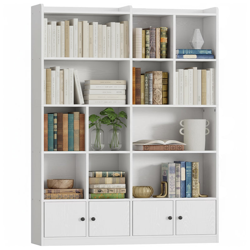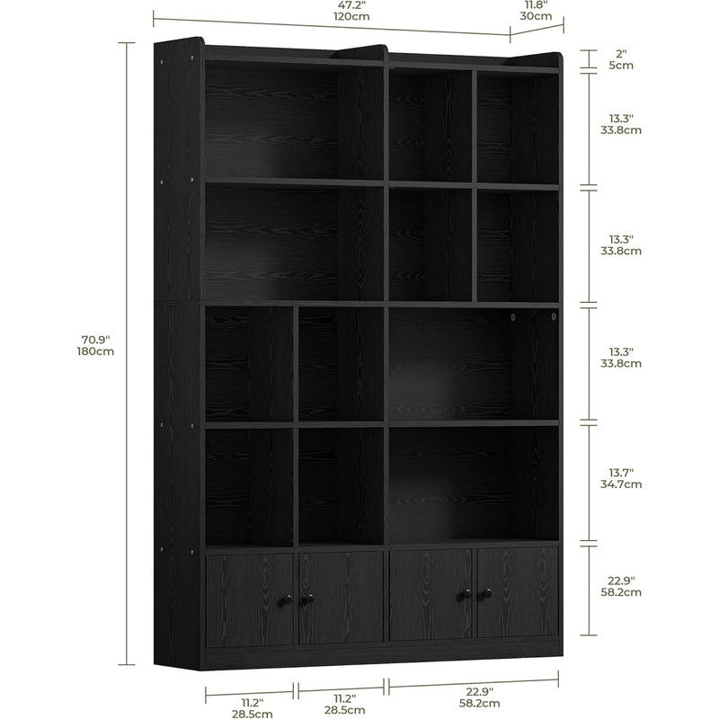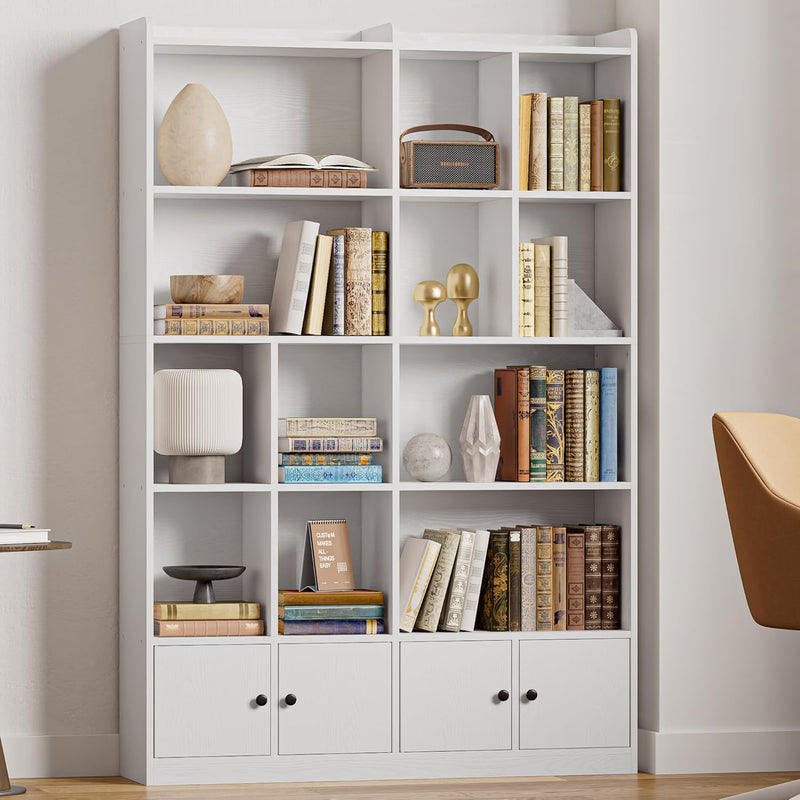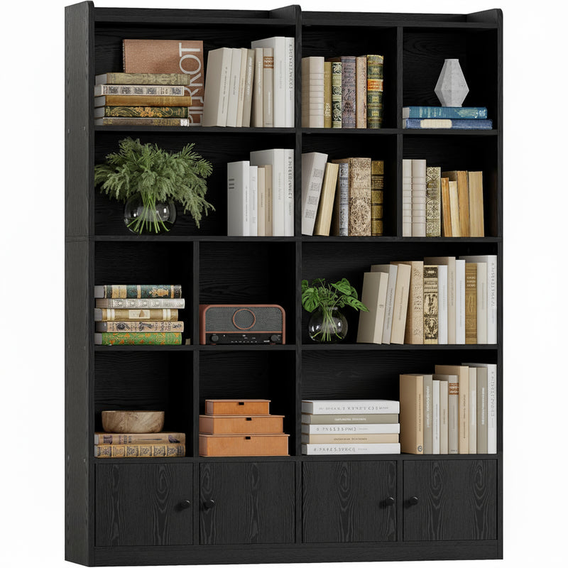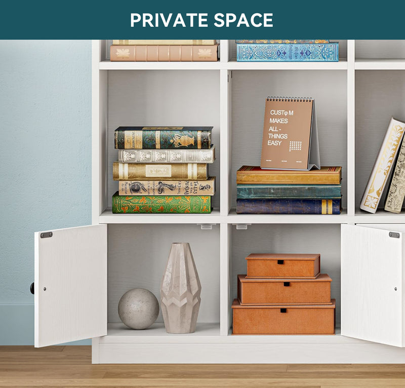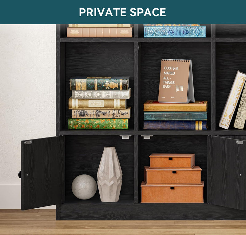 The 6-tier morden bookcase is the ultimate solution to organizing and showcasing your belongings. With a smart mix of open shelving and 4 cabinet doors, it offers both visibility and concealed storage, perfect for books, decorative items, office supplies, and even personal essentials you prefer to keep out of sight. This bookcase makes it easier than ever to keep your space organized while adding a stylish focal point to any room.