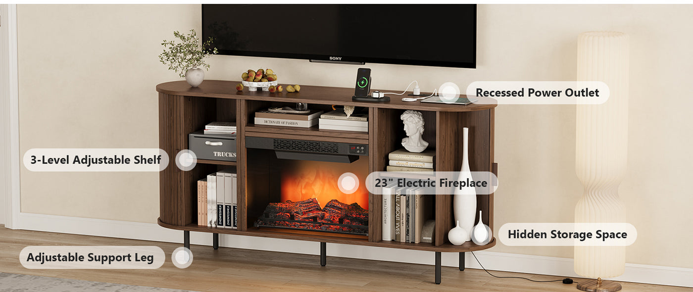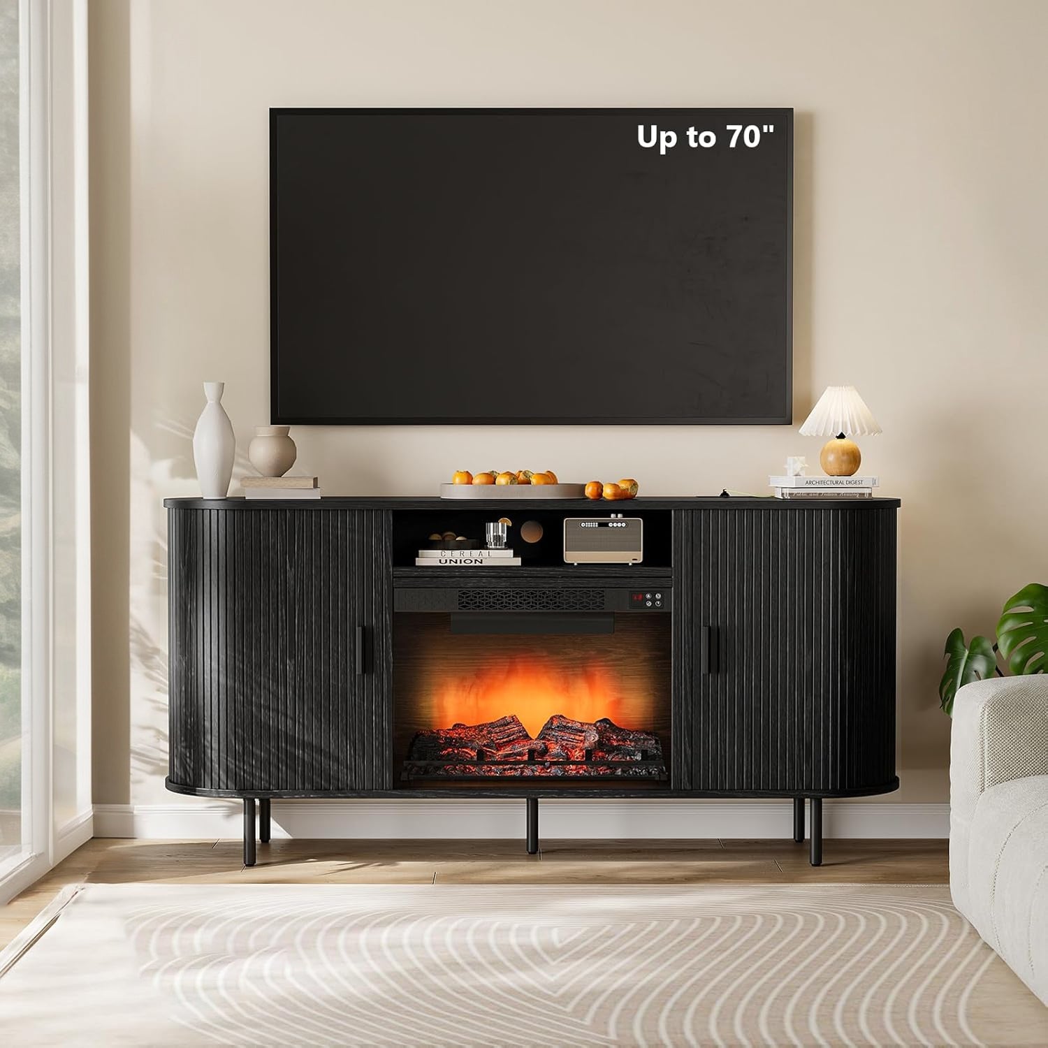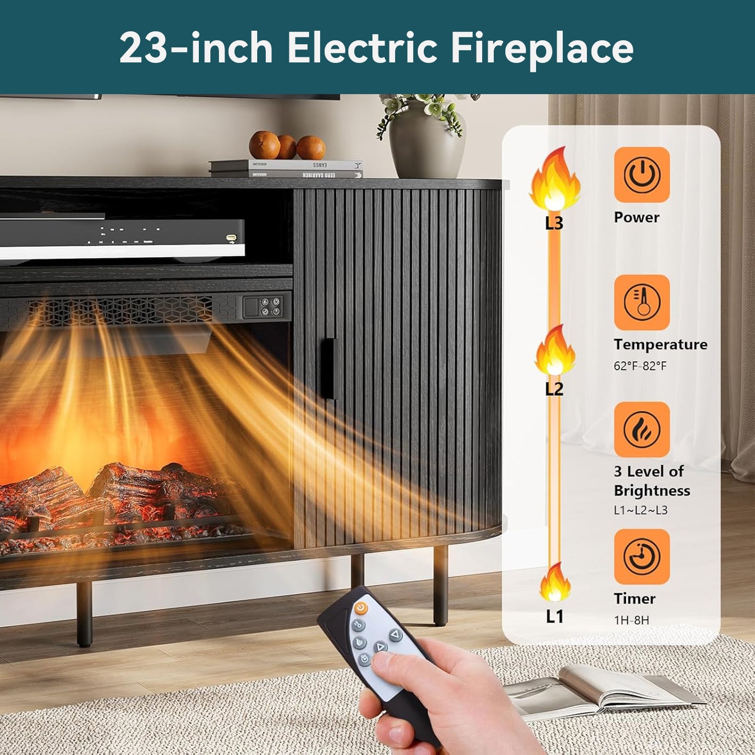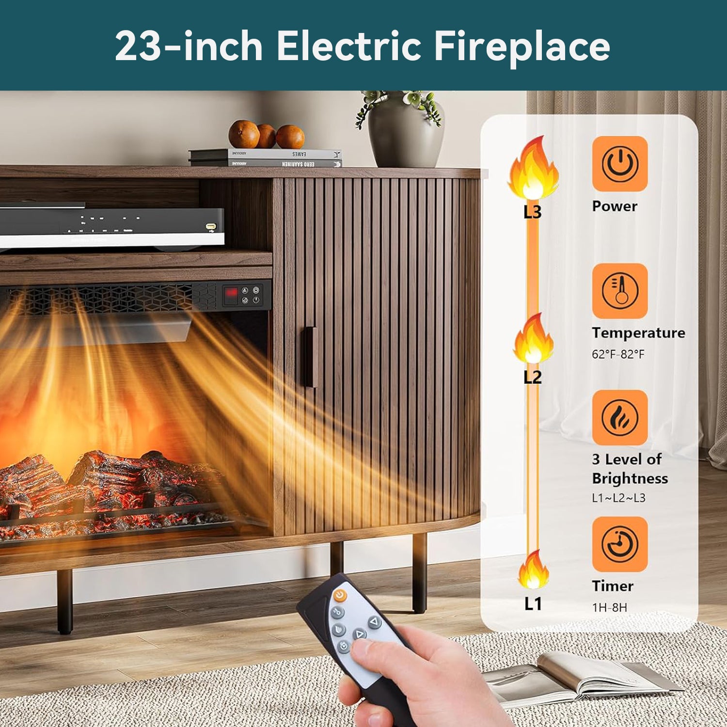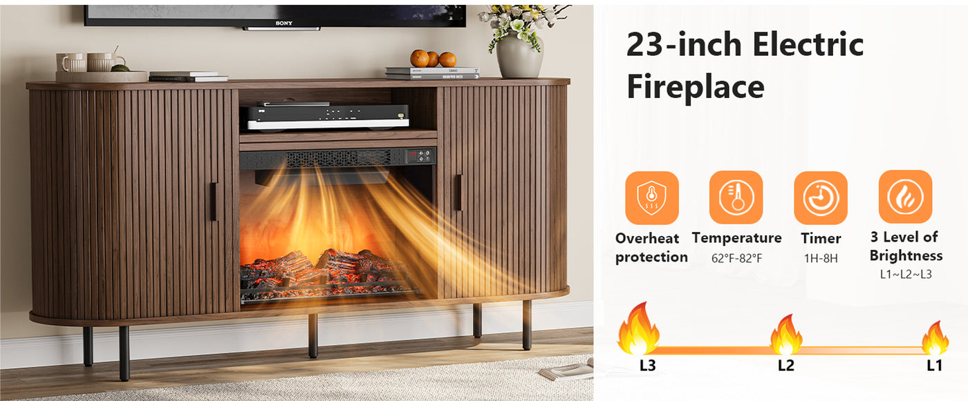 63" Fireplace TV Stand with 23" Electric Fireplace, TV Stand for TVs up to 70", Entertainment Center with Storage, Sliding Doors and Adjustable Shelves