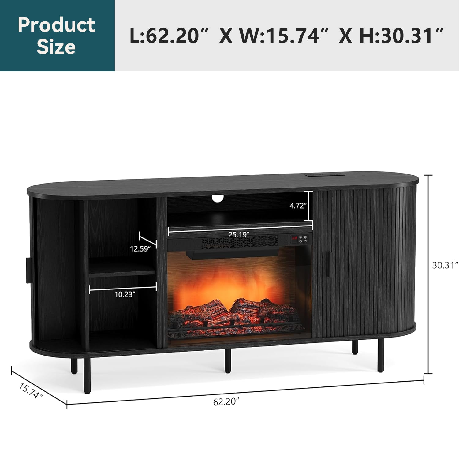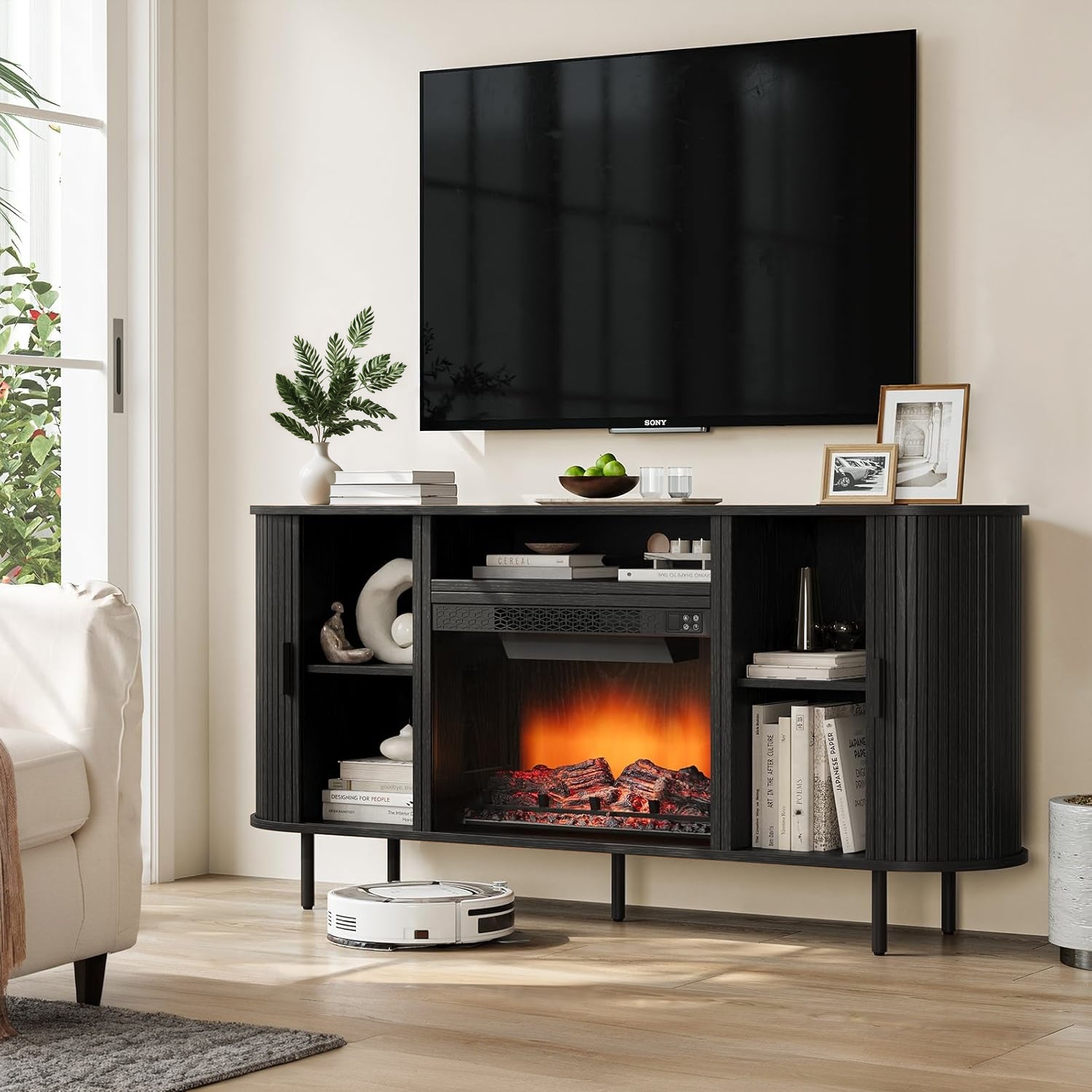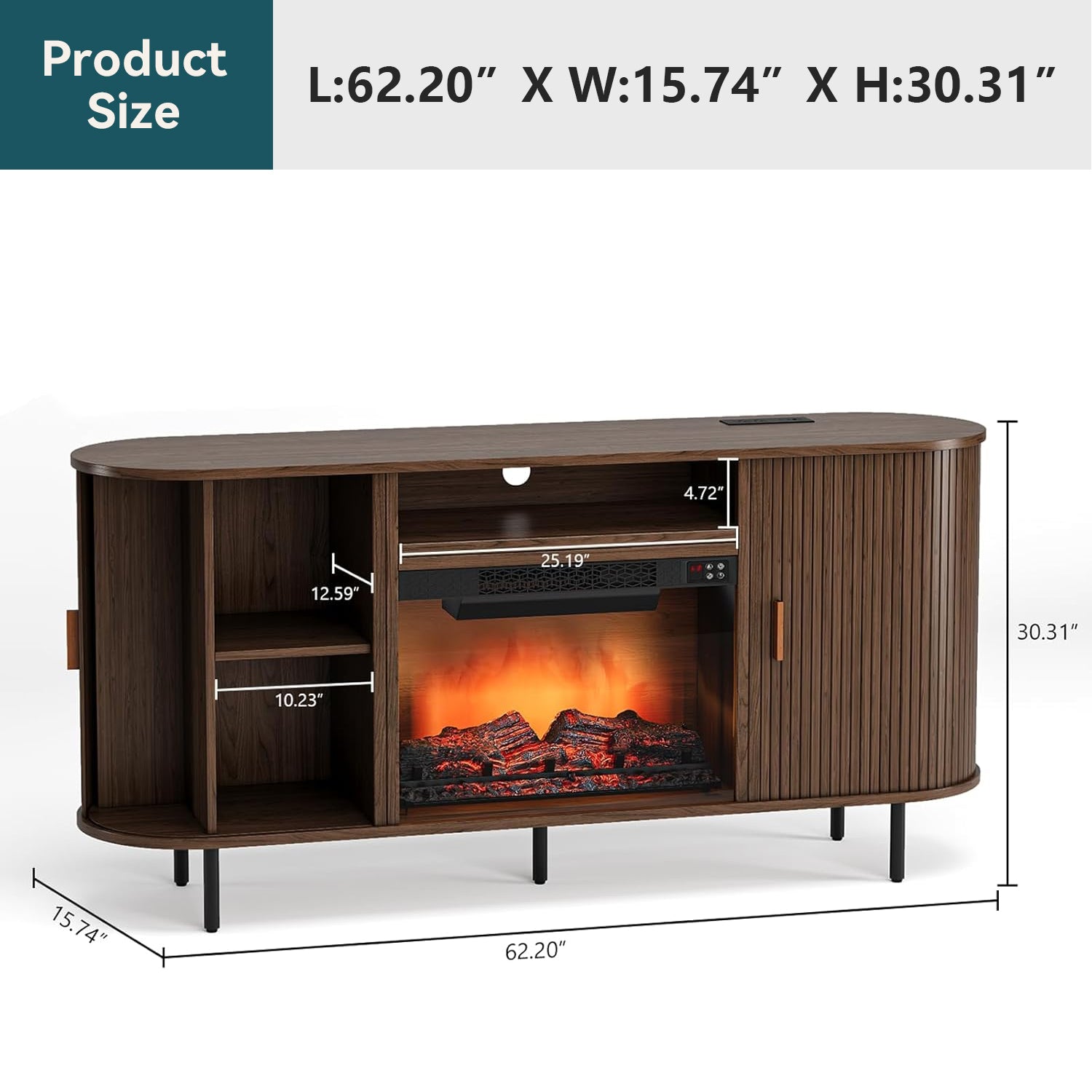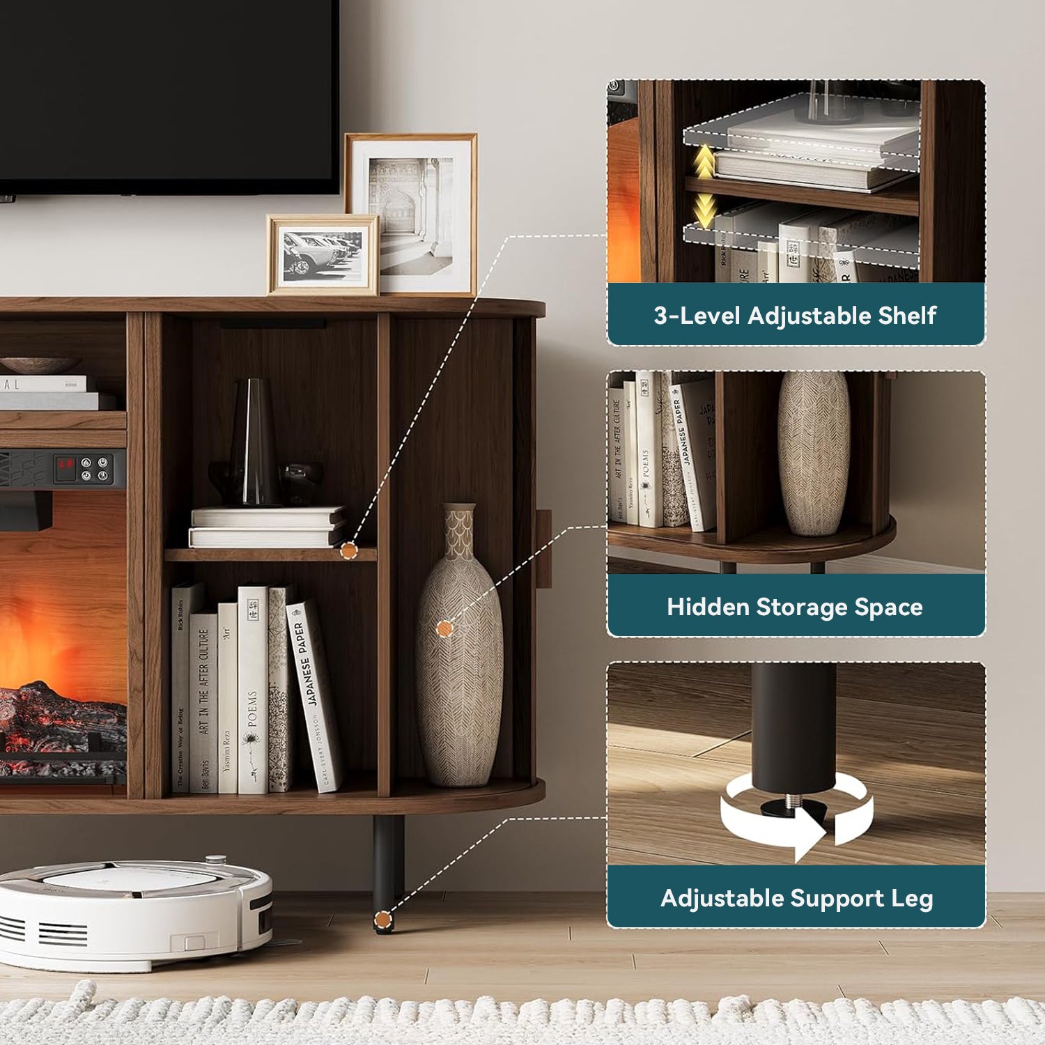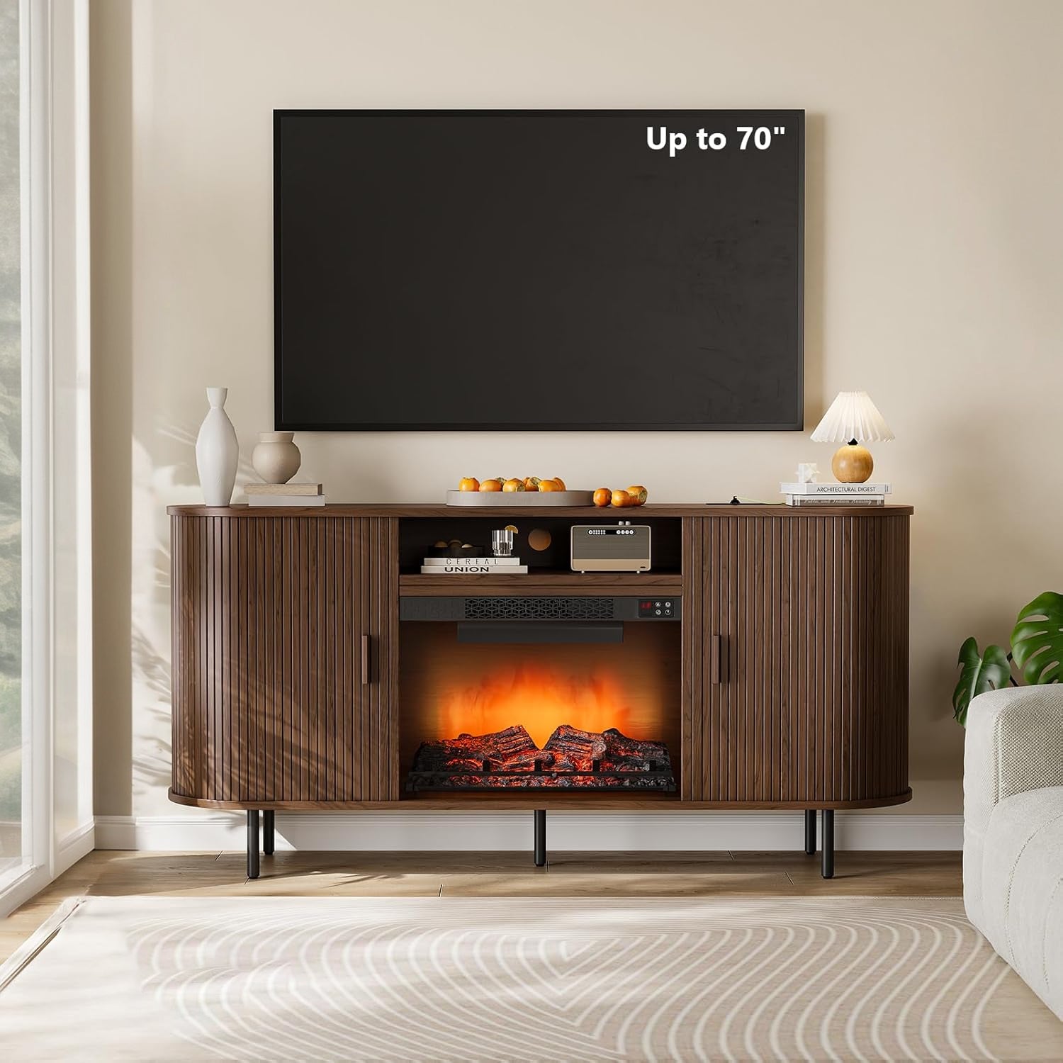 63" Fireplace TV Stand with 23" Electric Fireplace, TV Stand for TVs up to 70", Entertainment Center with Storage, Sliding Doors and Adjustable Shelves