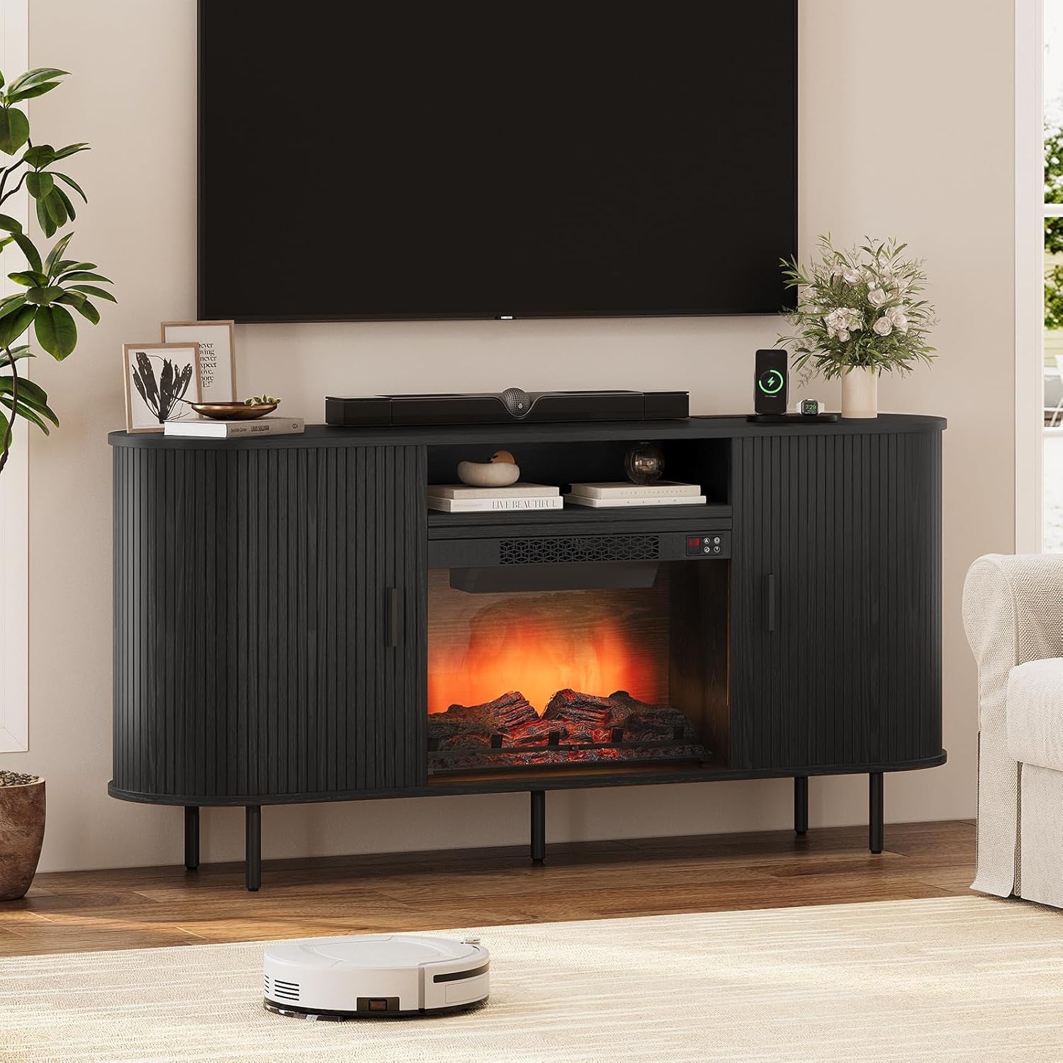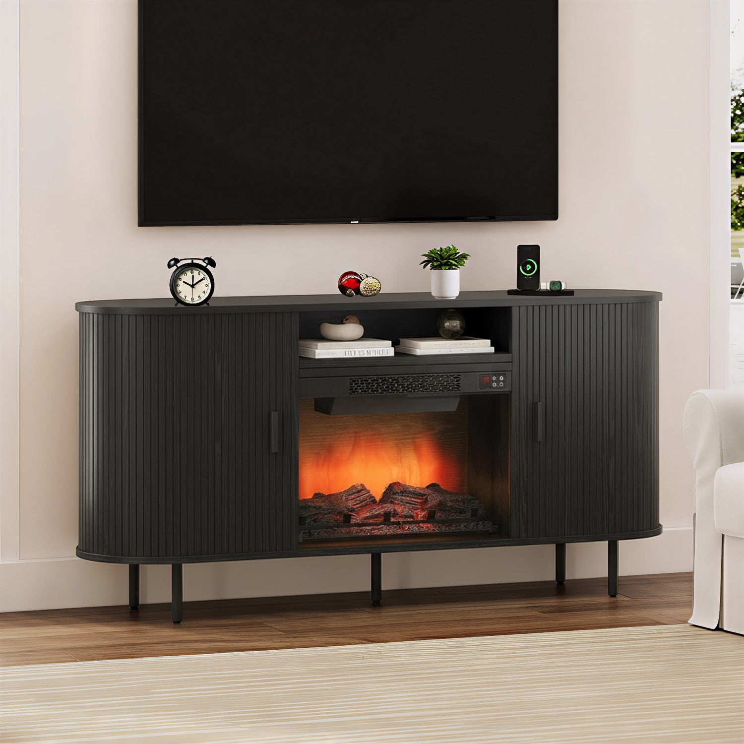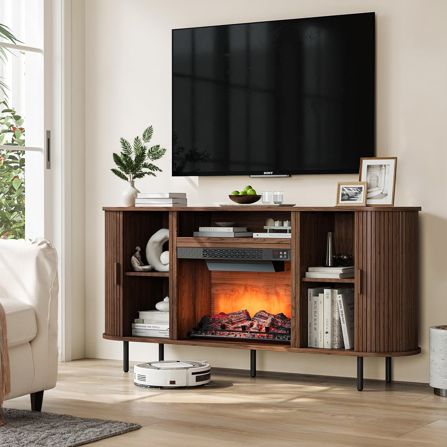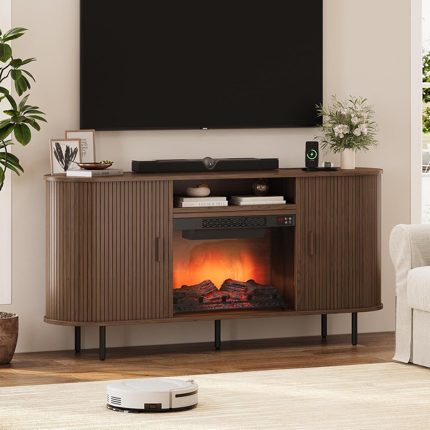 63" Fireplace TV Stand with 23" Electric Fireplace, TV Stand for TVs up to 70", Entertainment Center with Storage, Sliding Doors and Adjustable Shelves