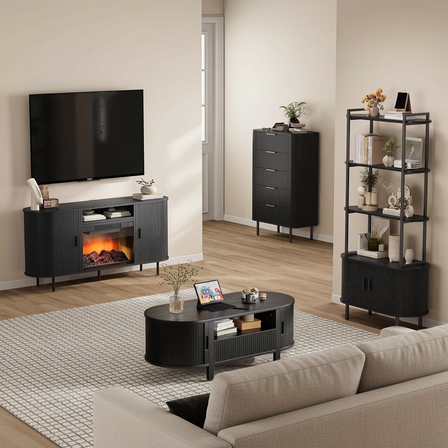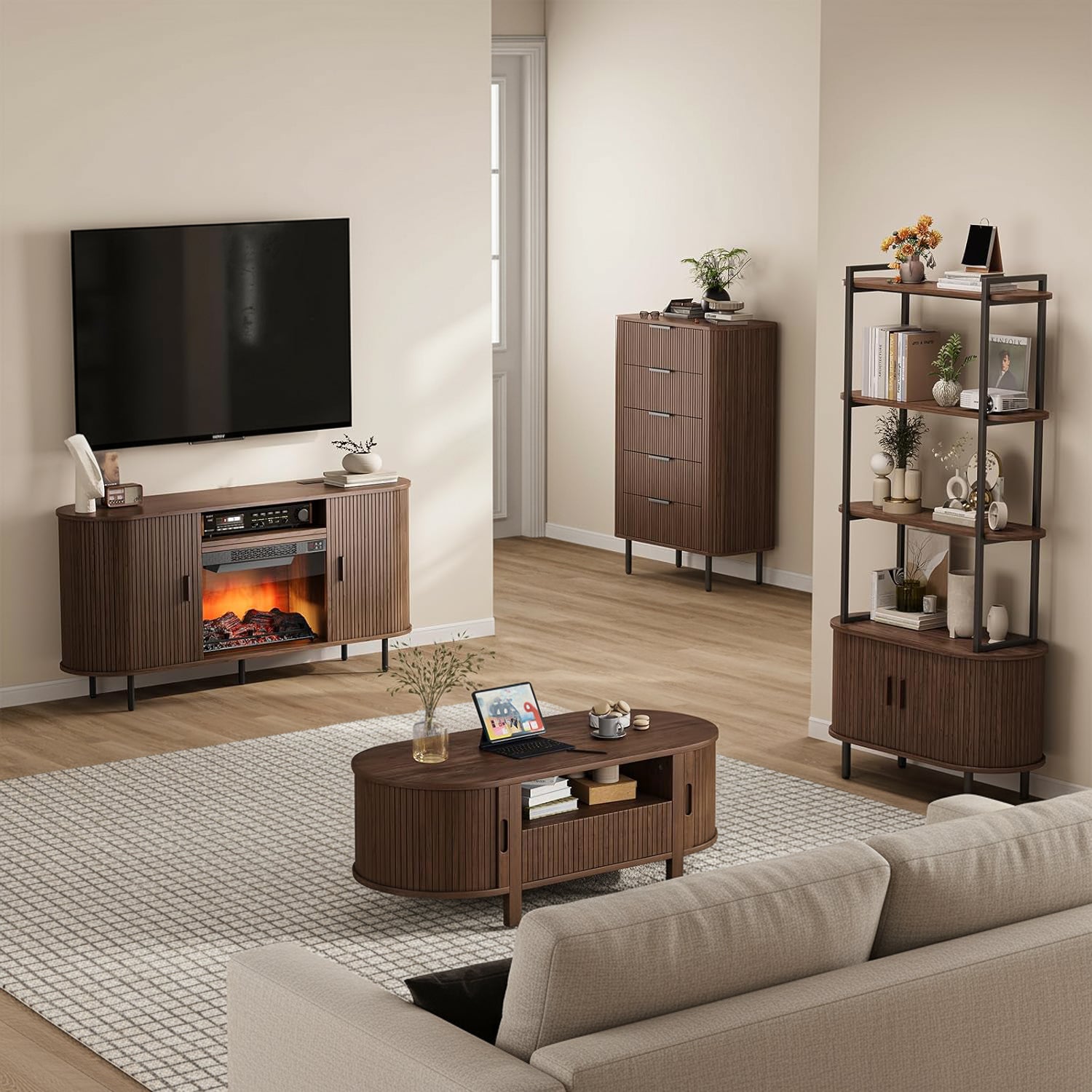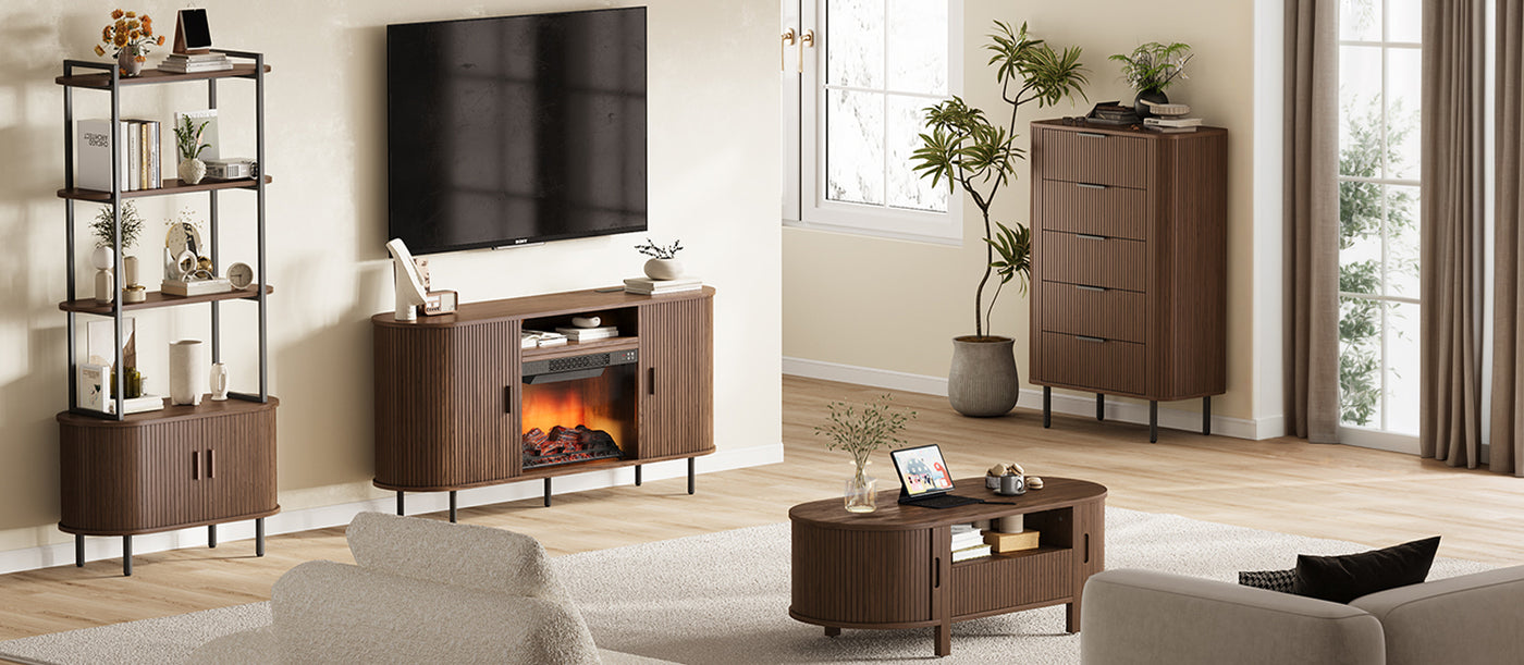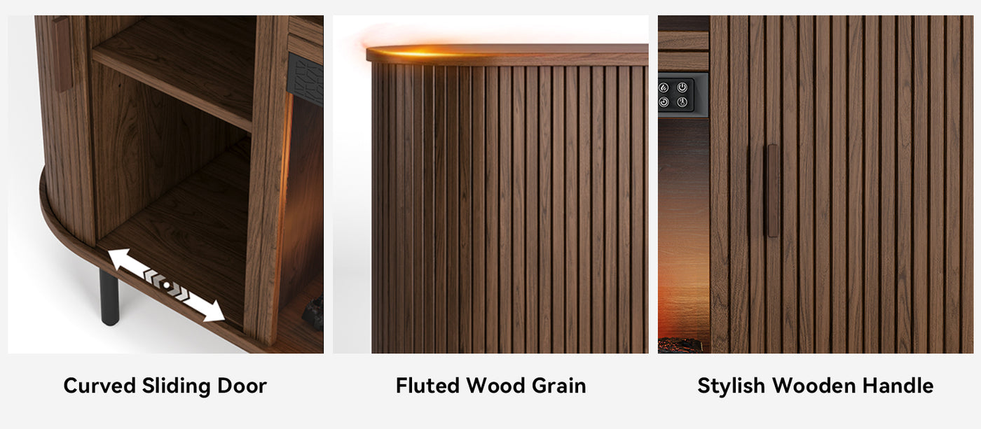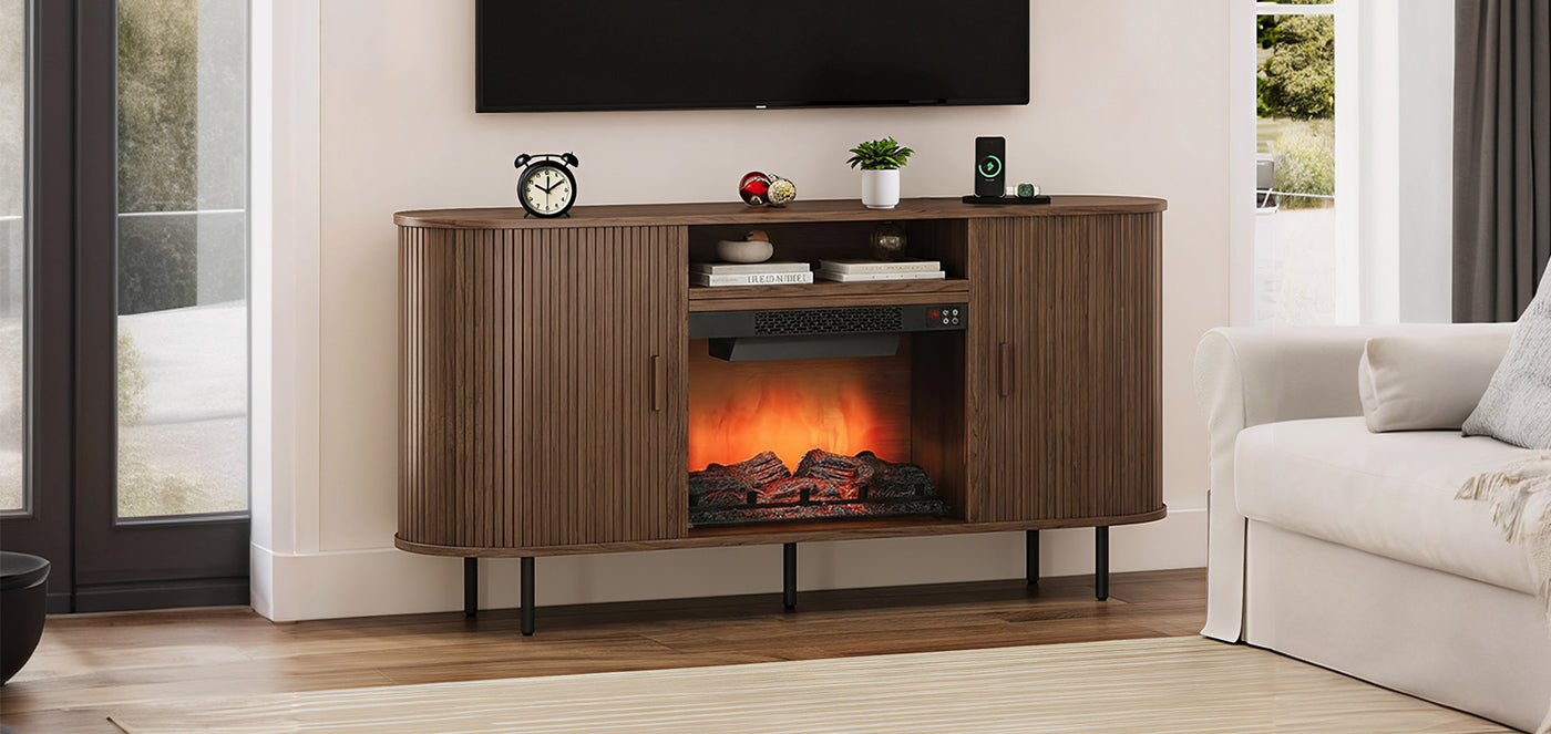 Picture this TV stand in your living room: your favorite show playing on a TV up to 70 inches, and right below it, the 23-inch electric fireplace softly glowing. On a chilly evening, you can turn on the heater to add warmth, or just enjoy the flame effect without any heat on a mild day, simply to create ambiance.