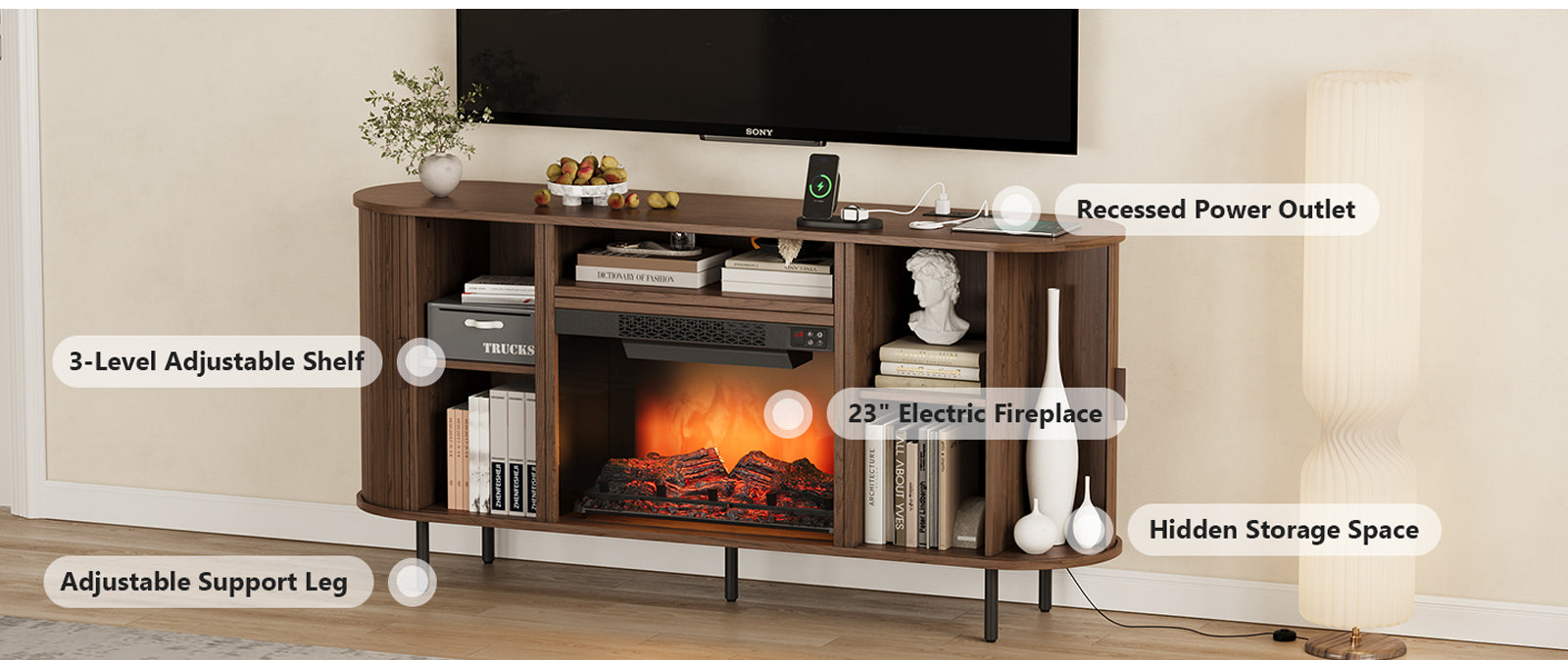 Special Feature  Adjustable Shelf, Charging Station, Electric Fireplace