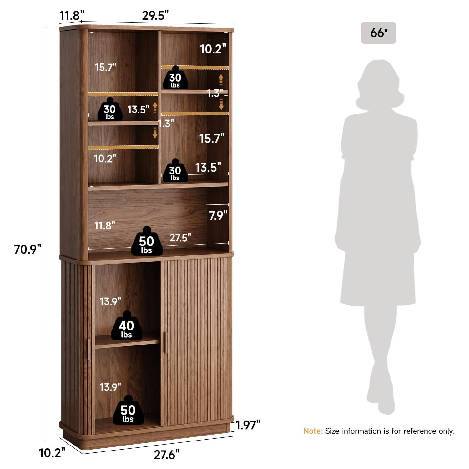 This book shelf stands 70.9 inches tall. It uses vertical space well without feeling overwhelming. The base is solid, and a wall connection fixer is included to keep everything secure once it’s in place. It’s the kind of piece that quietly does its job every day, without asking for attention.