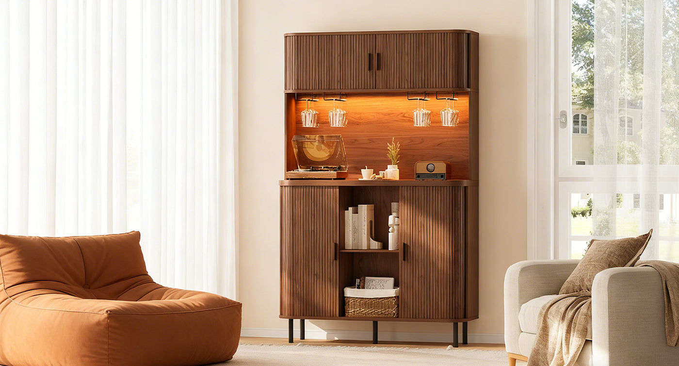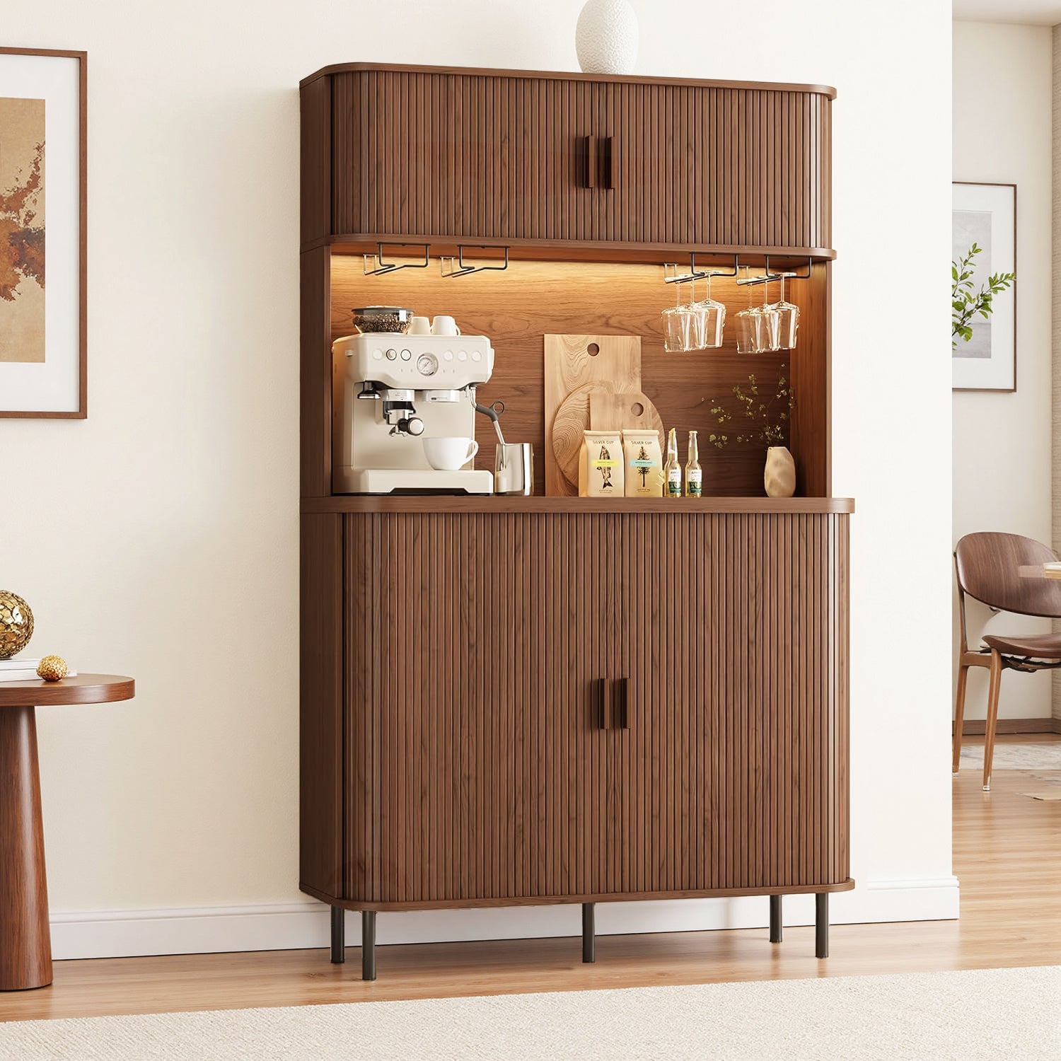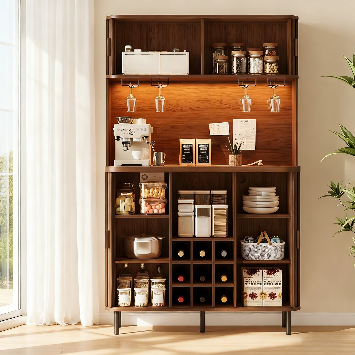 You can use it as a bar, a coffee station, or just extra storage in the kitchen area. The layout works well for anyone who likes things organized but doesn’t want furniture that feels too formal or complicated.