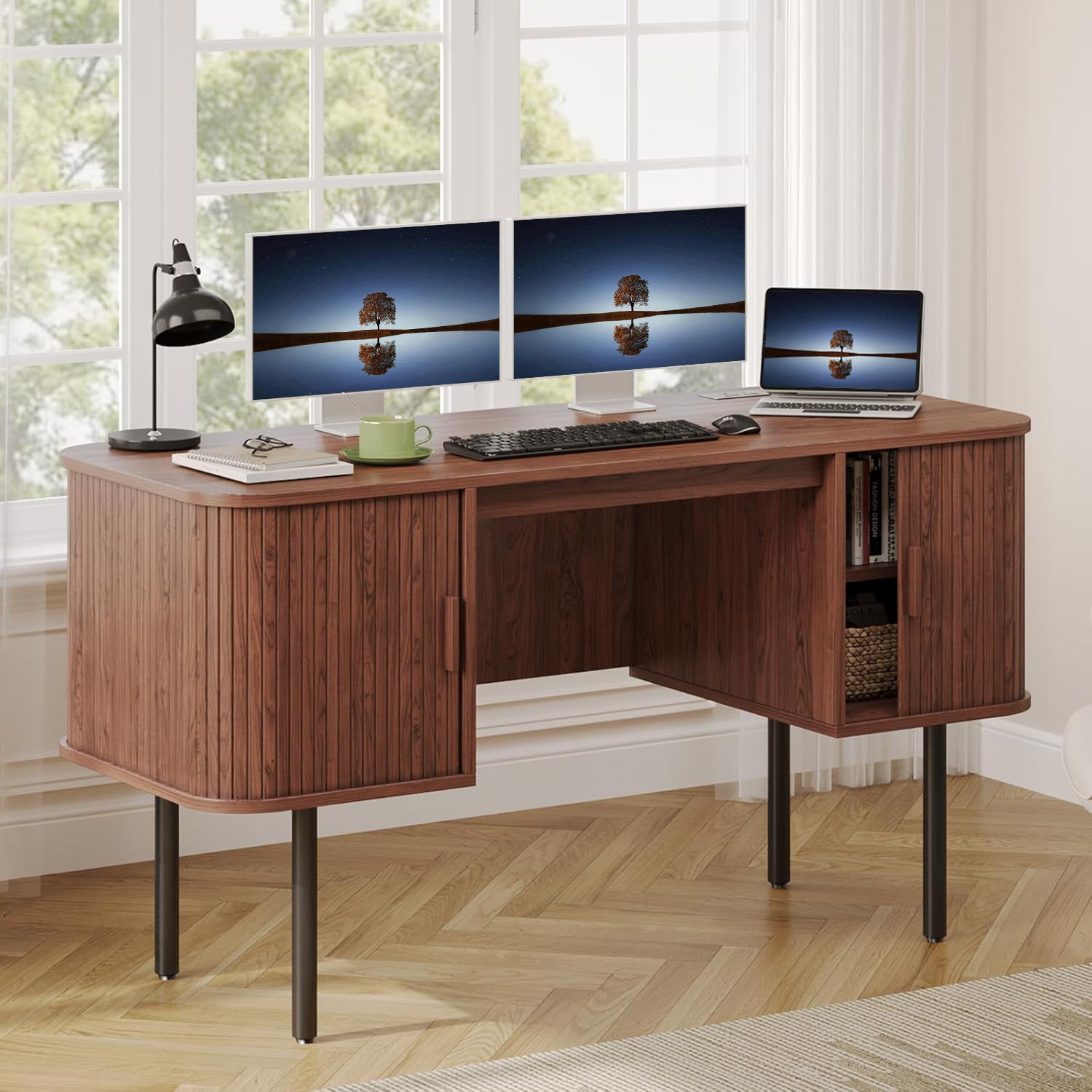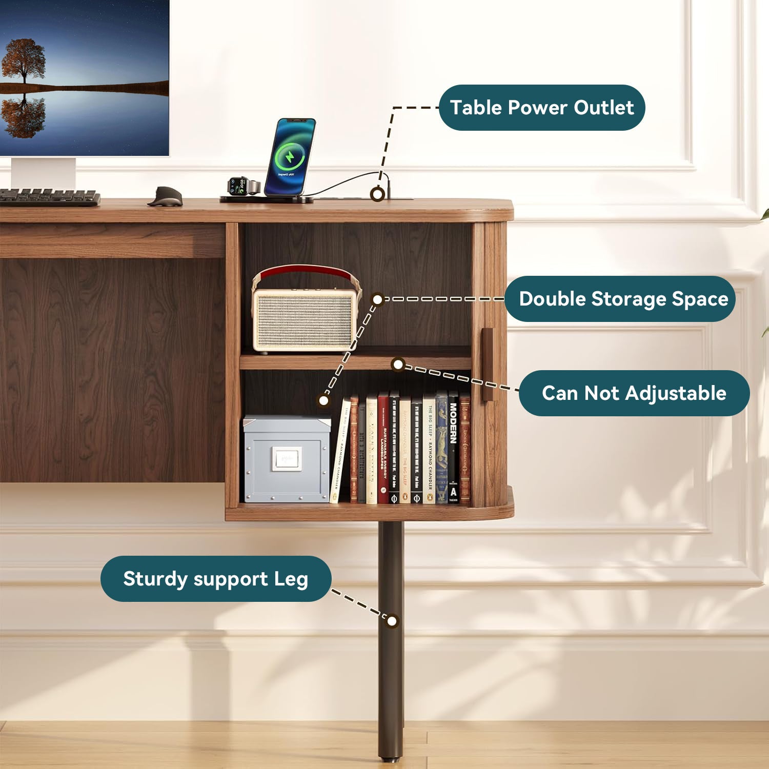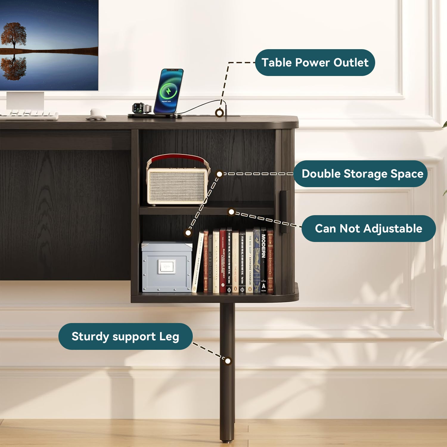 On both sides of the desk, sliding doors open smoothly to reveal two-tier storage compartments. You can open and close them as you like, providing both open and closed storage options.