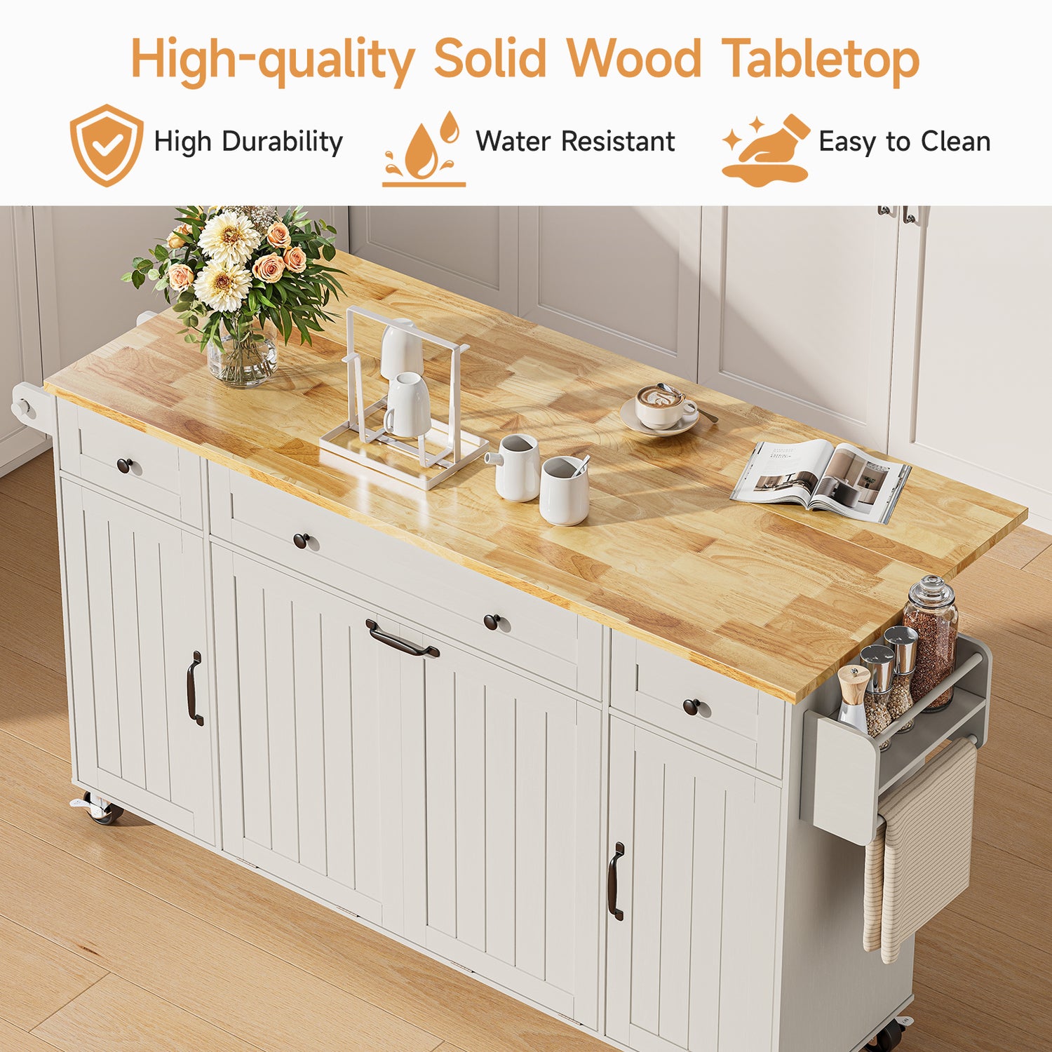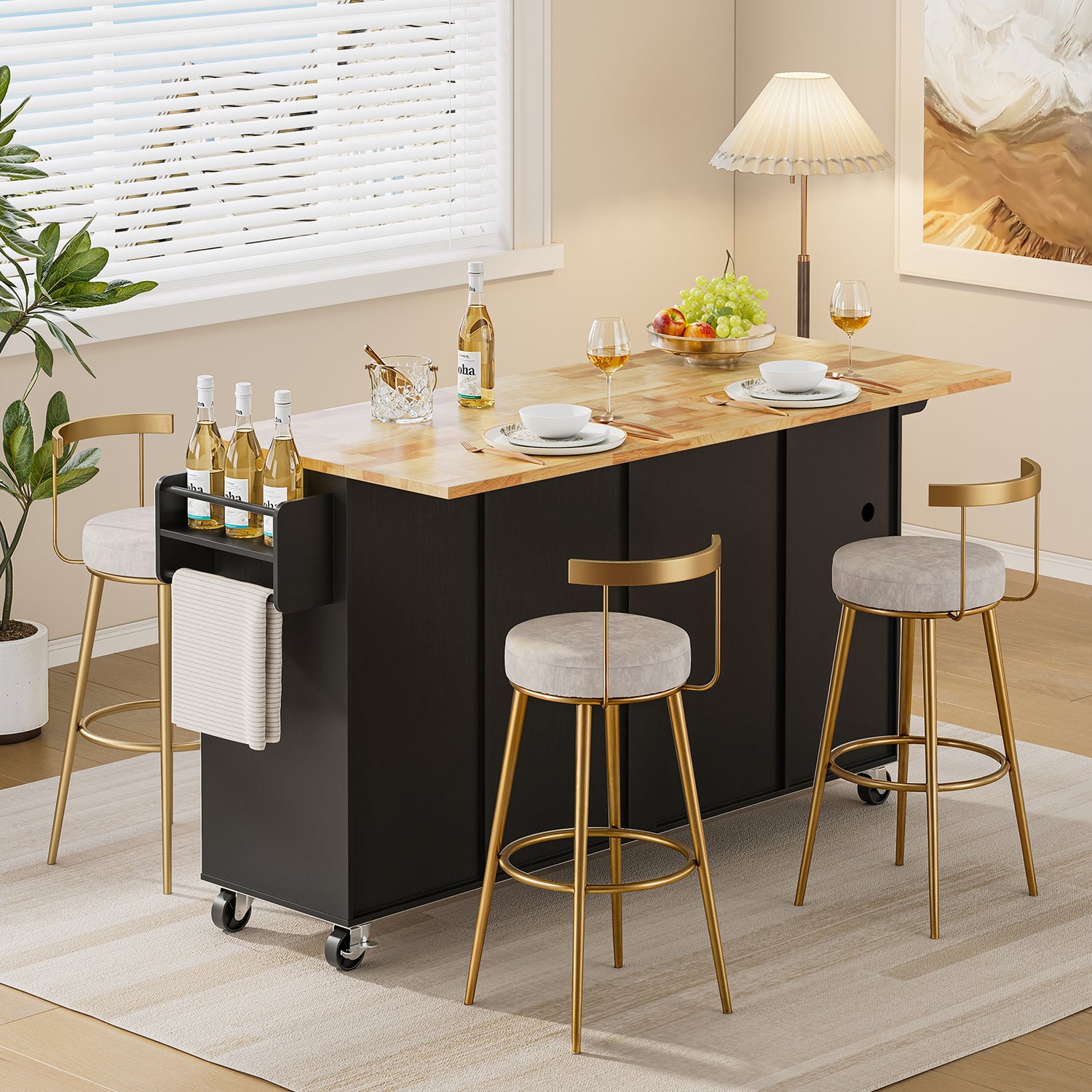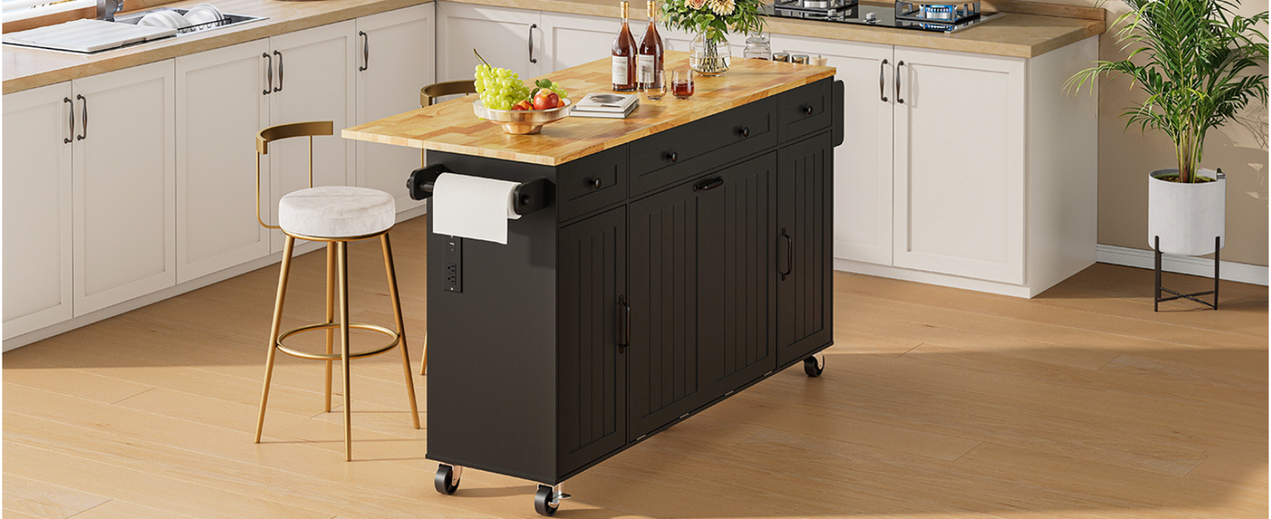This versatile piece works as a kitchen island, rolling kitchen cart, food prep station, bar table, coffee bar, microwave stand, or small-space dining table. This multi-functional kitchen island adapts to your space and your routine with ease.