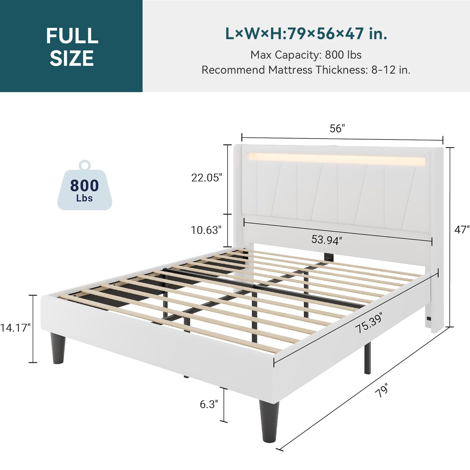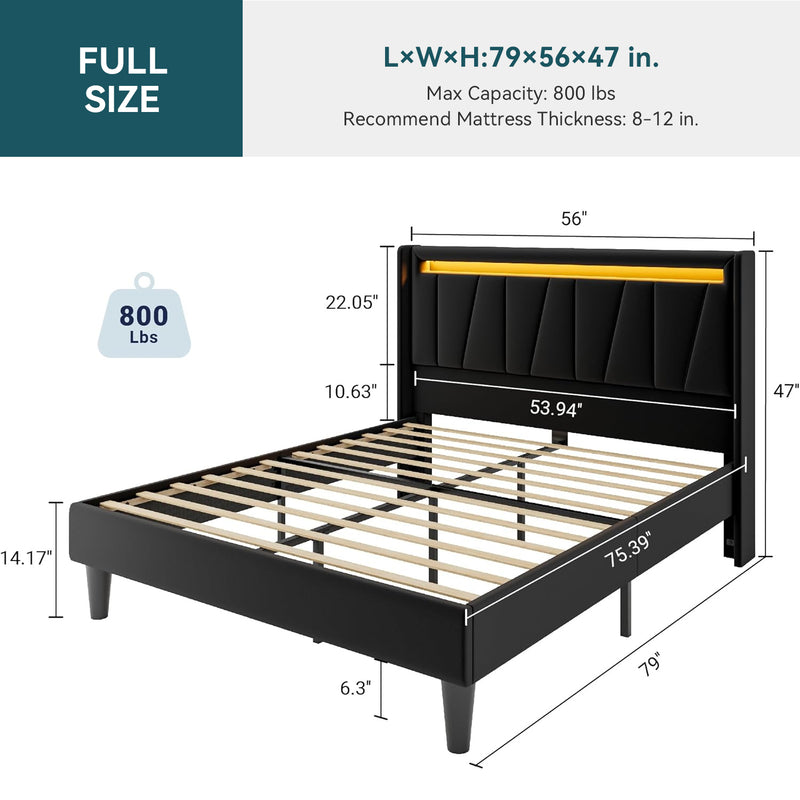 Full-Size Bed Frame | 79"L x 56"W x 47"H, 800 lbs. |