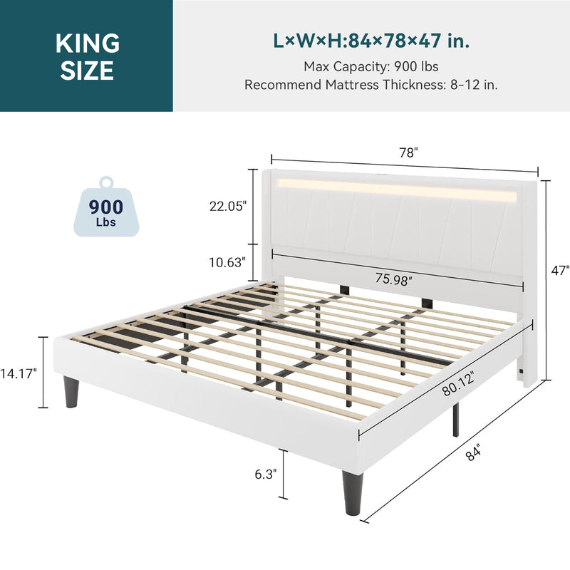 King Size Bed Frame | 84"L x 78"W x 47"H, 900 lbs. |
