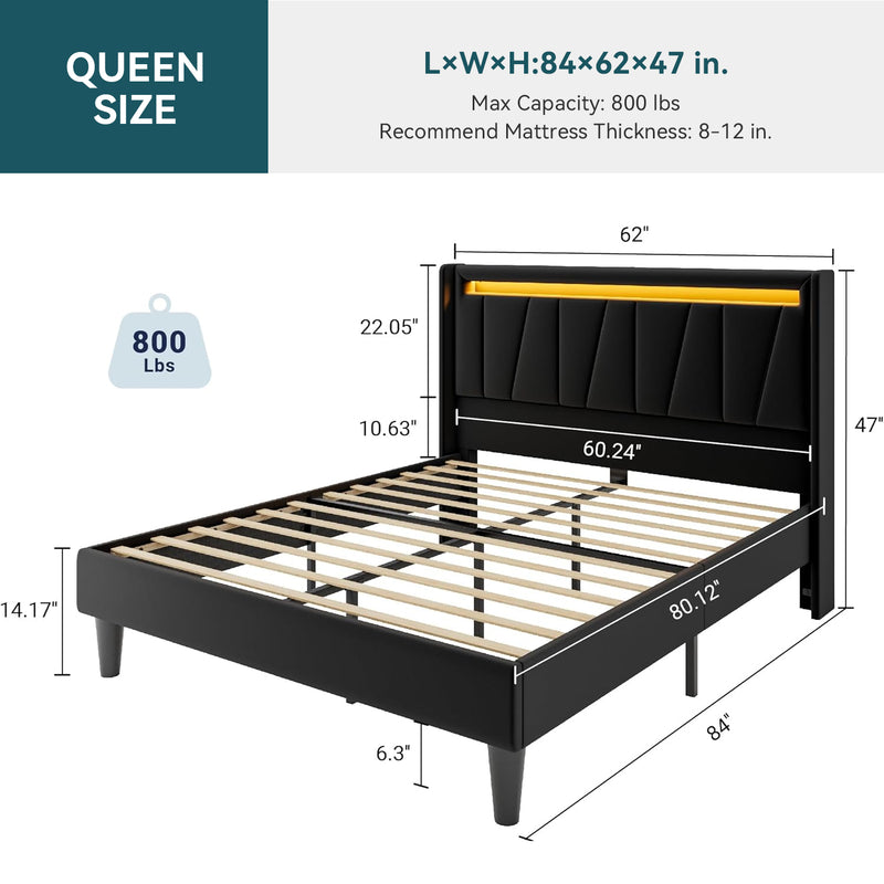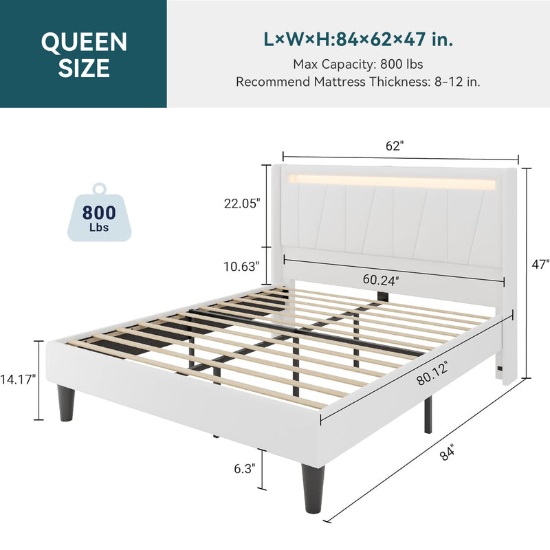 Queen Size Bed Frame | 84"L x 62"W x 47"H, 800 lbs. |