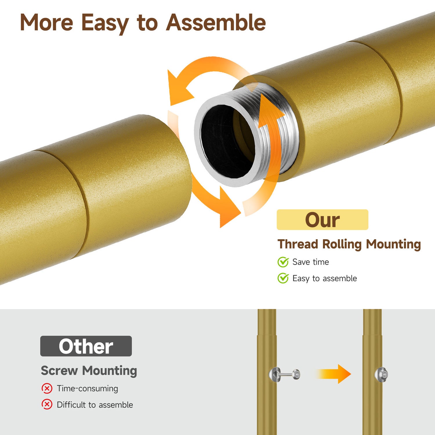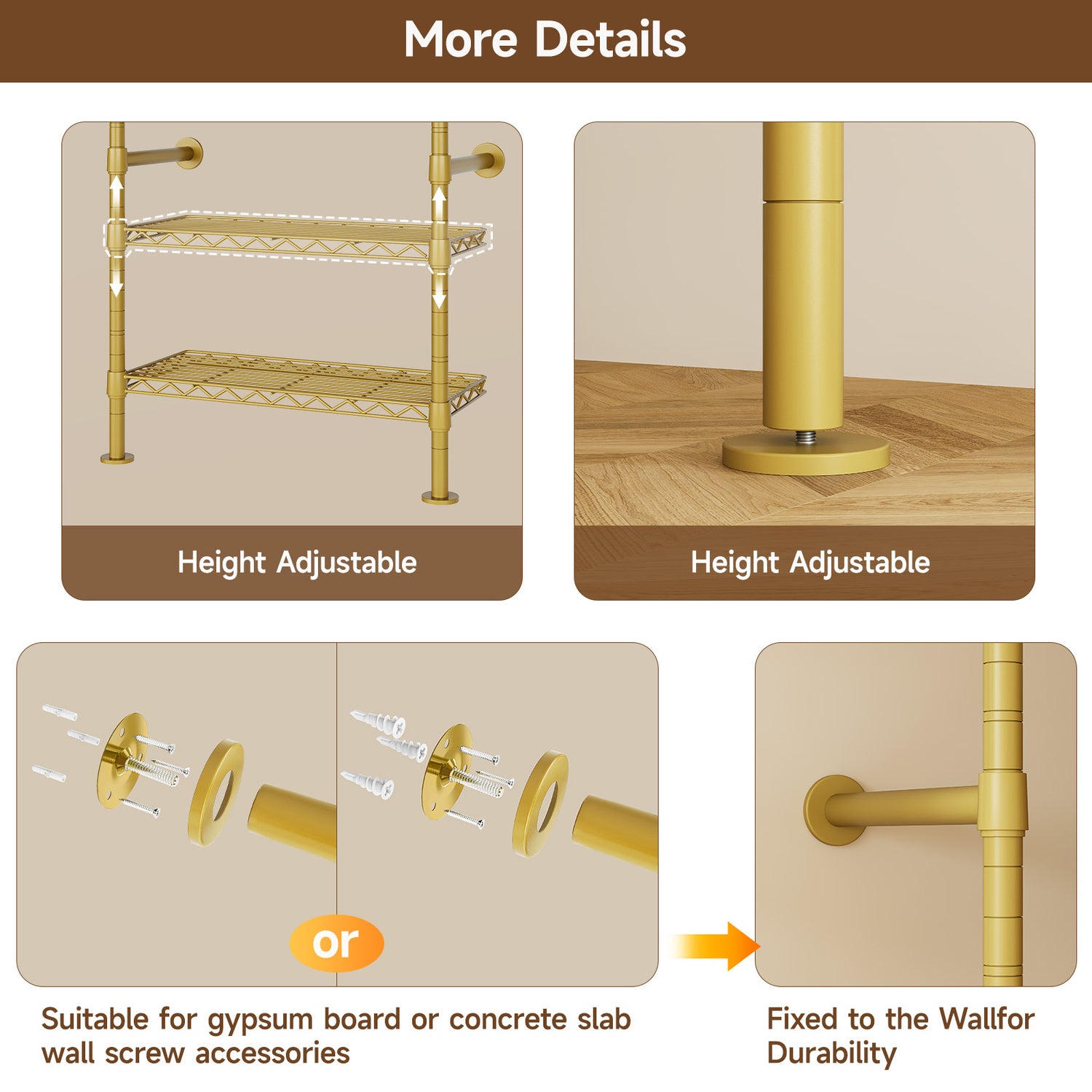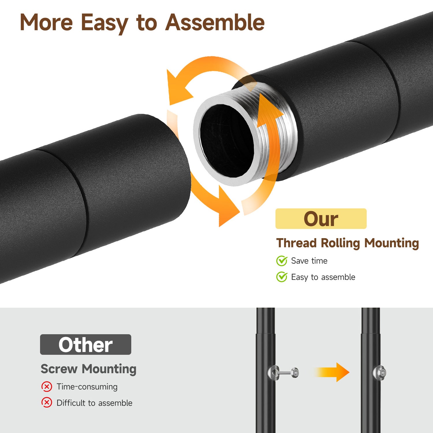 The frame is made from sturdy metal pipes with a matte powder-coated finish for improved durability. The poles connect directly with threaded joints, making assembly faster and more secure than traditional screw-based designs. Wall-mount hardware is also included to improve overall stability.
