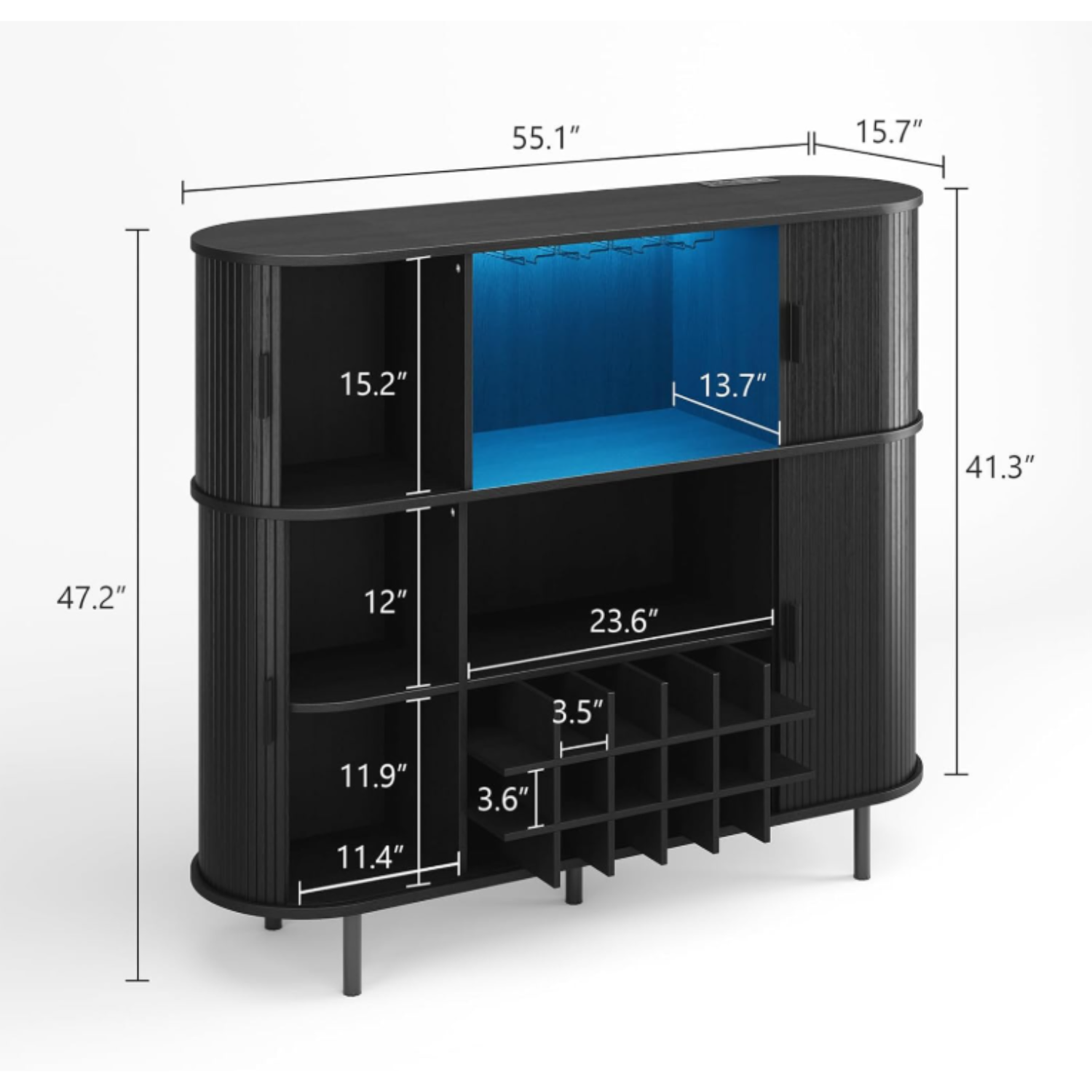 Wine Bar Cabinet with LED Lights, Liquor Cabinet with Charging Station, Detachable Wine Rack and Glass Holder