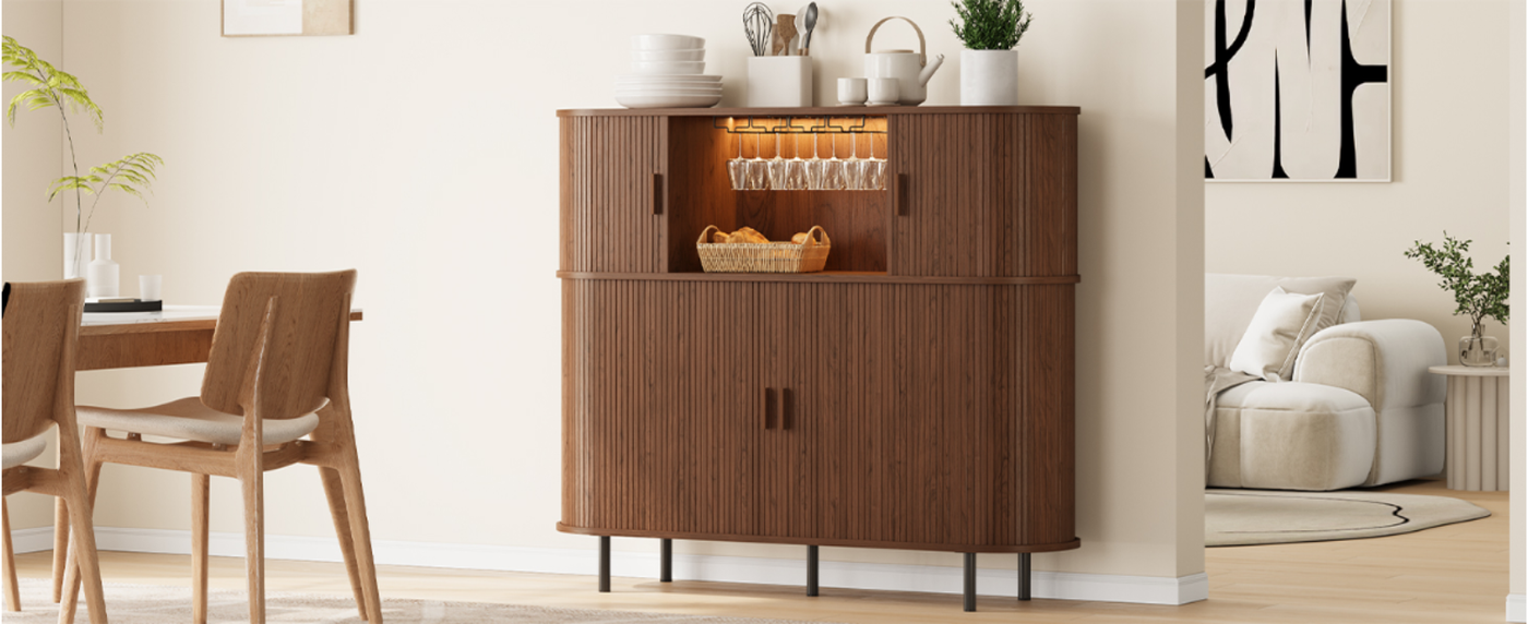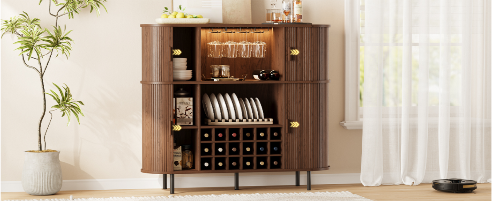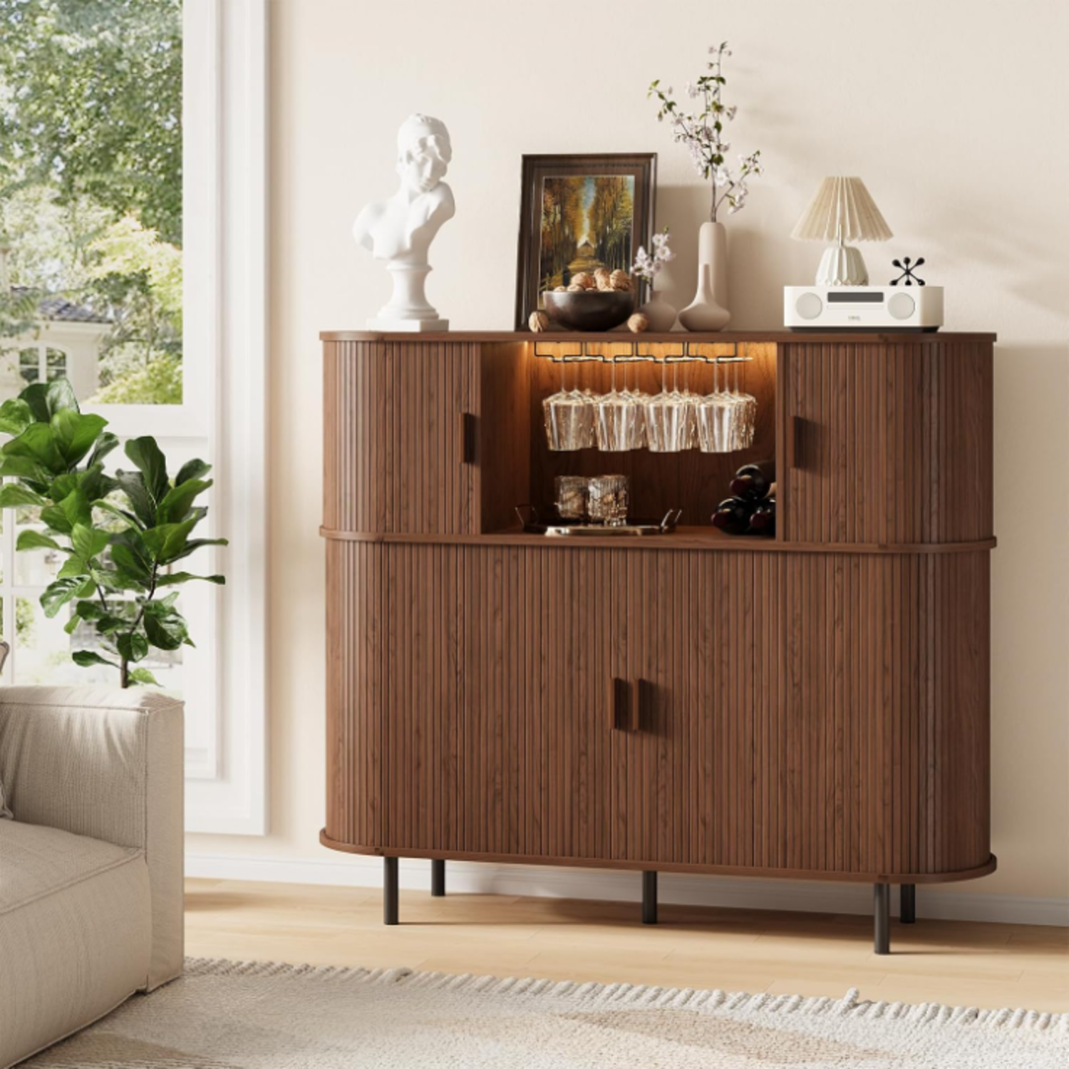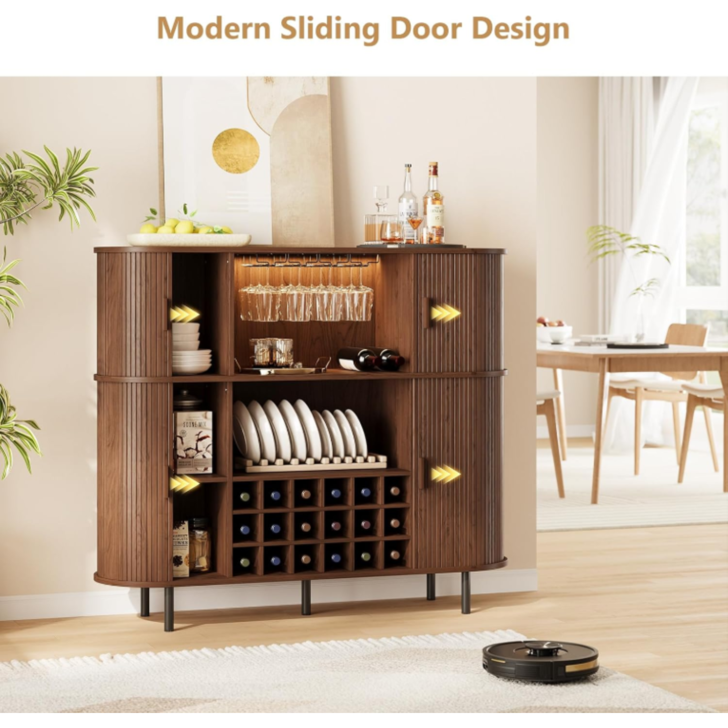 This buffet cabinet is sturdy and made from quality materials. The included wall-mount kit secures it to the wall for added stability. Overall, it’s a versatile piece that can work as a wine bar, coffee station, mini bar, or extra storage in almost any room.