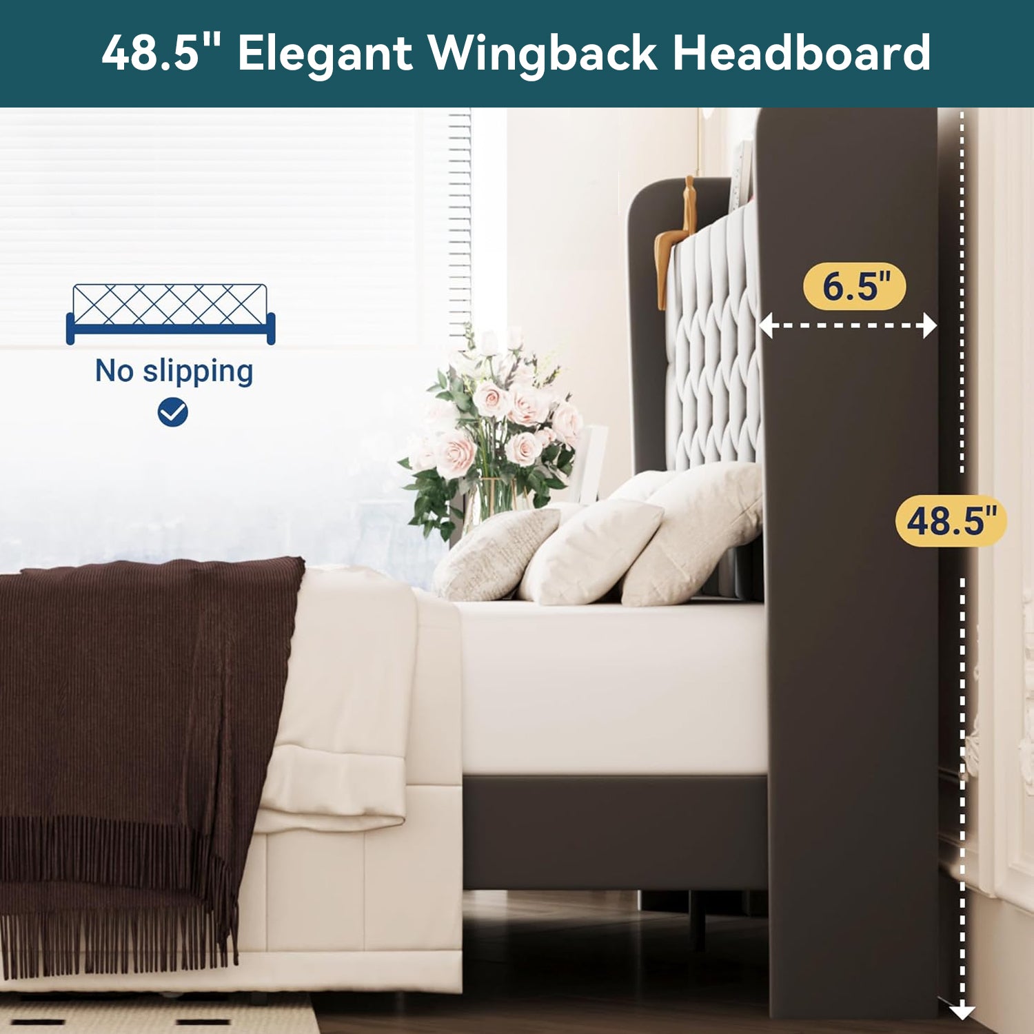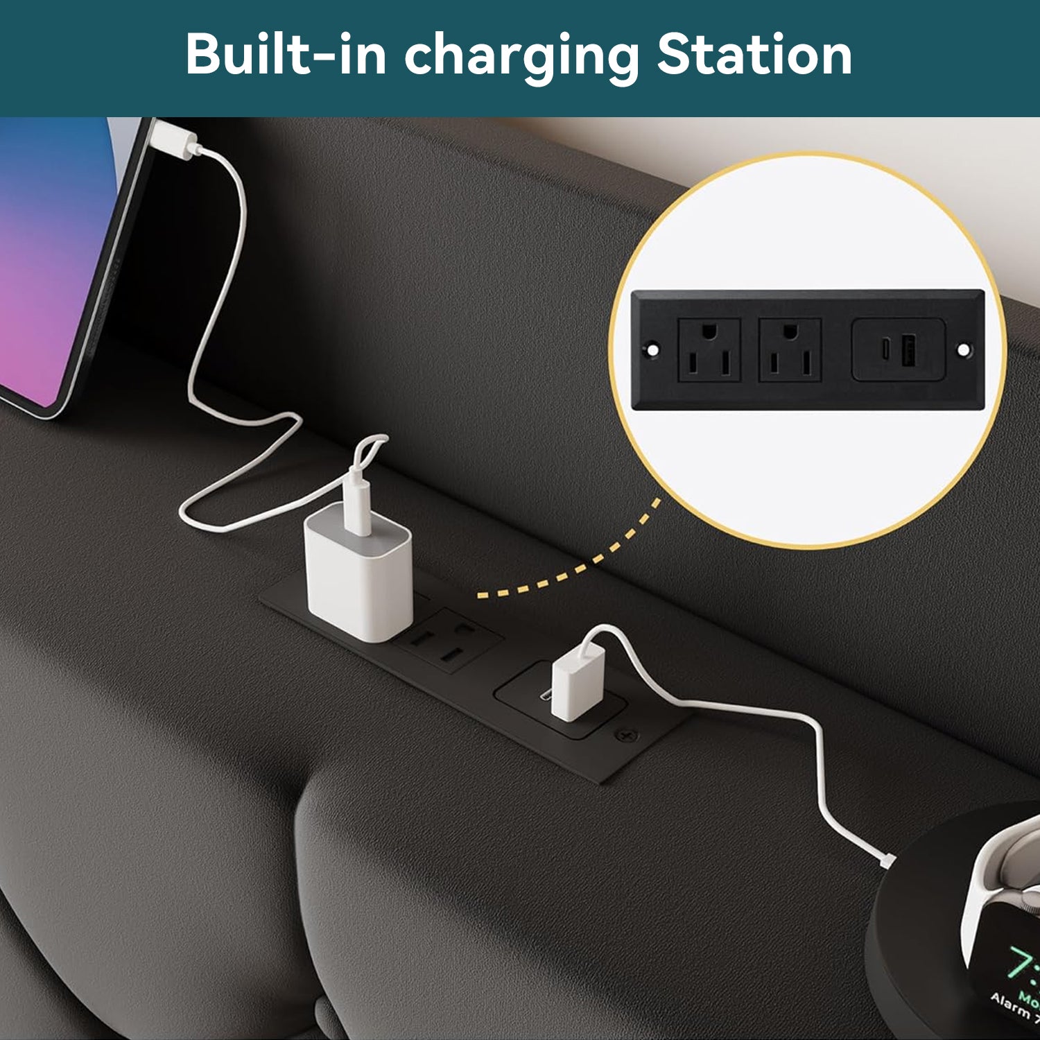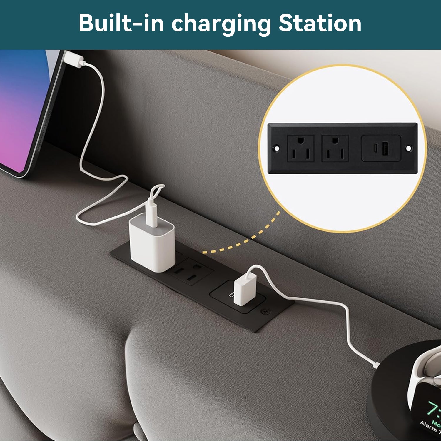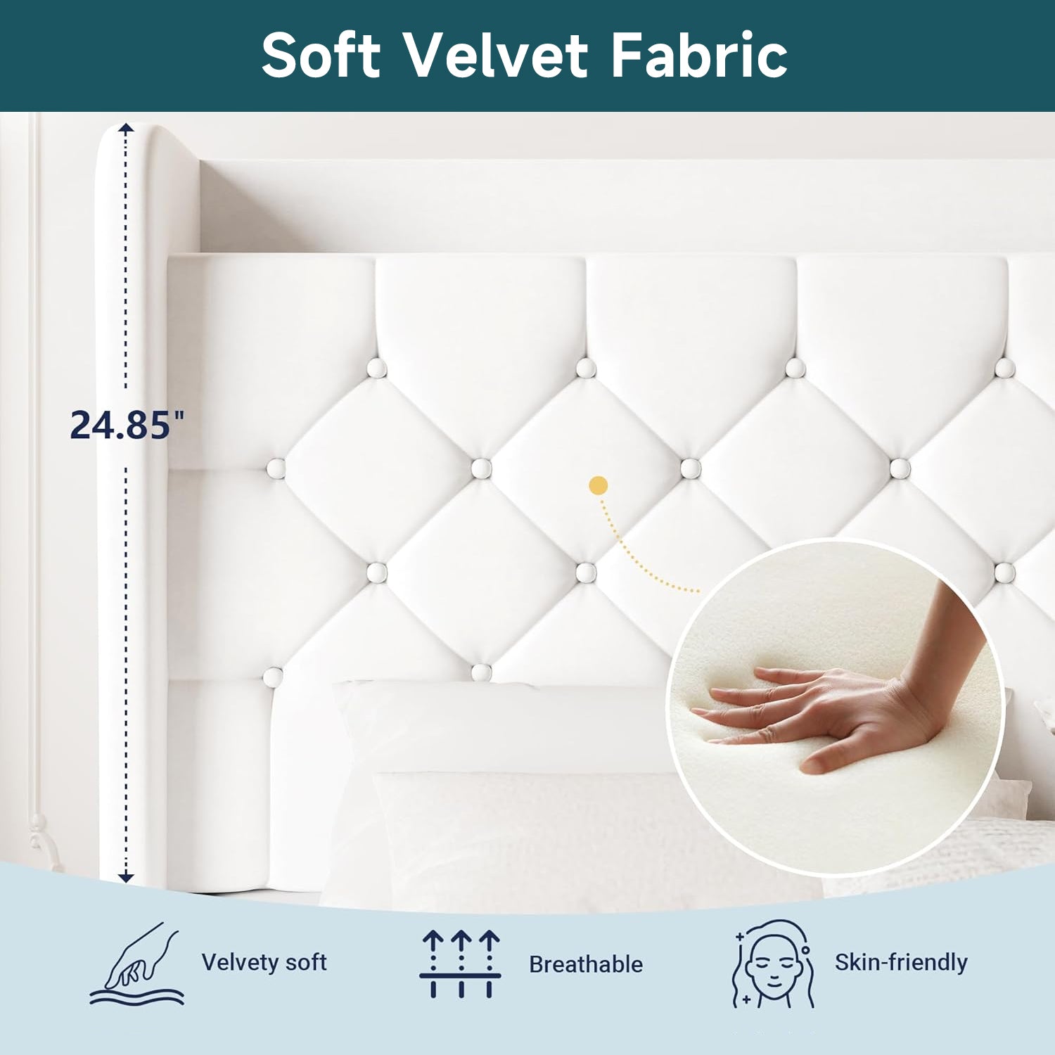 | Other Special Features | Charging Station, Squeak Resistant, Storage Shelf, Velvet Upholstery, Slat Support |