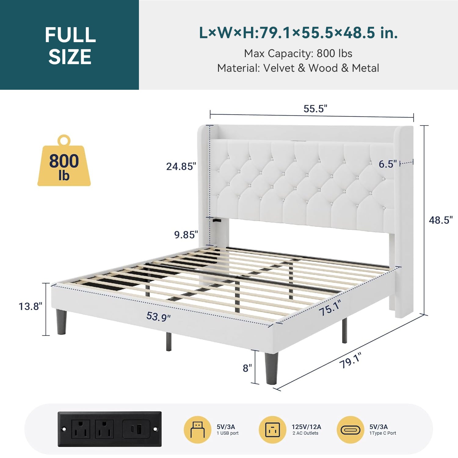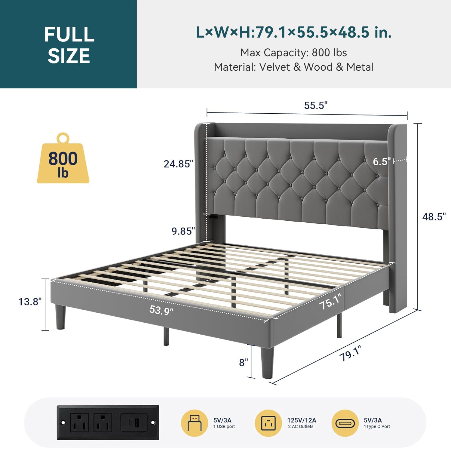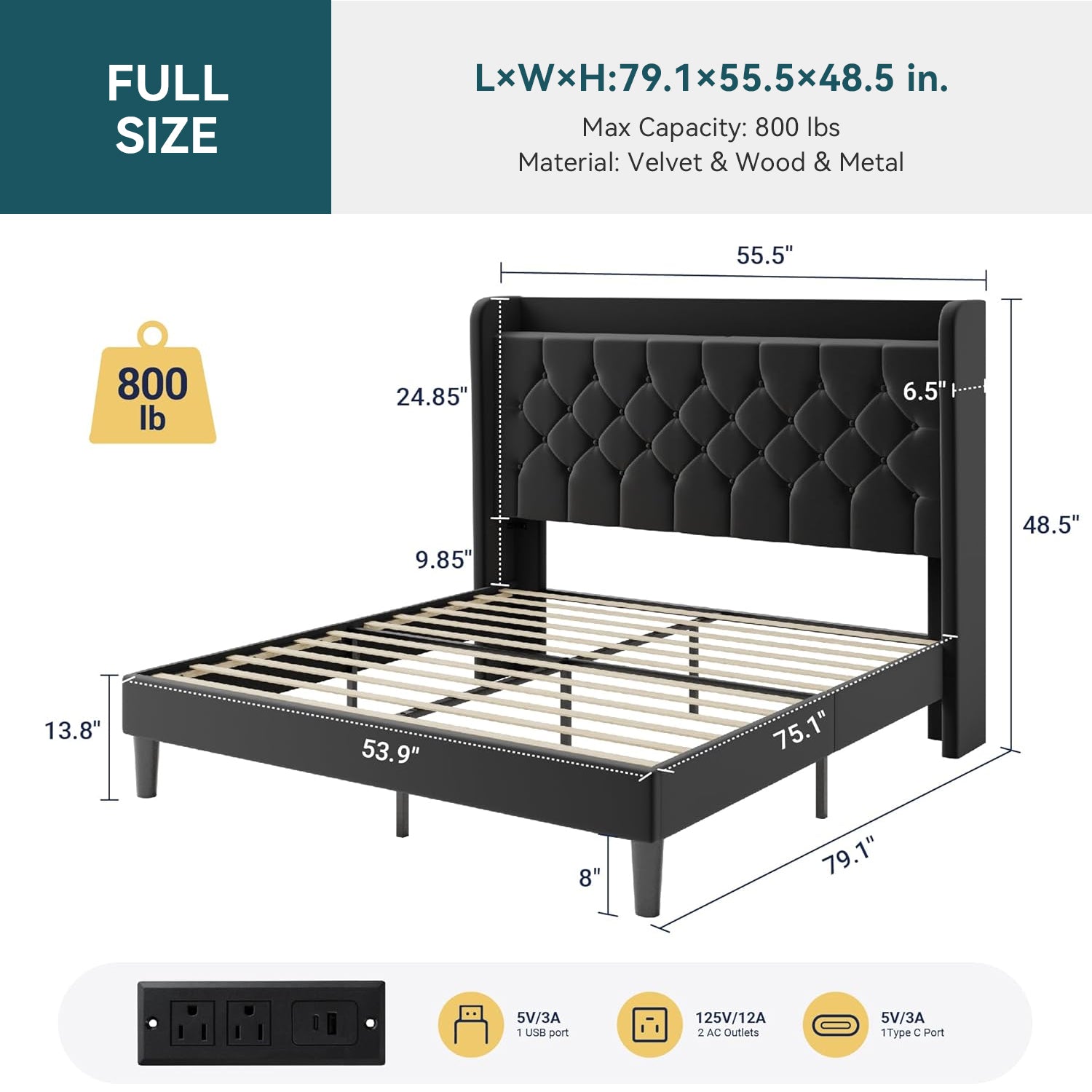 | Full-Size Bed Frame | 79.1"L x 55.5"W x 48.5"H |