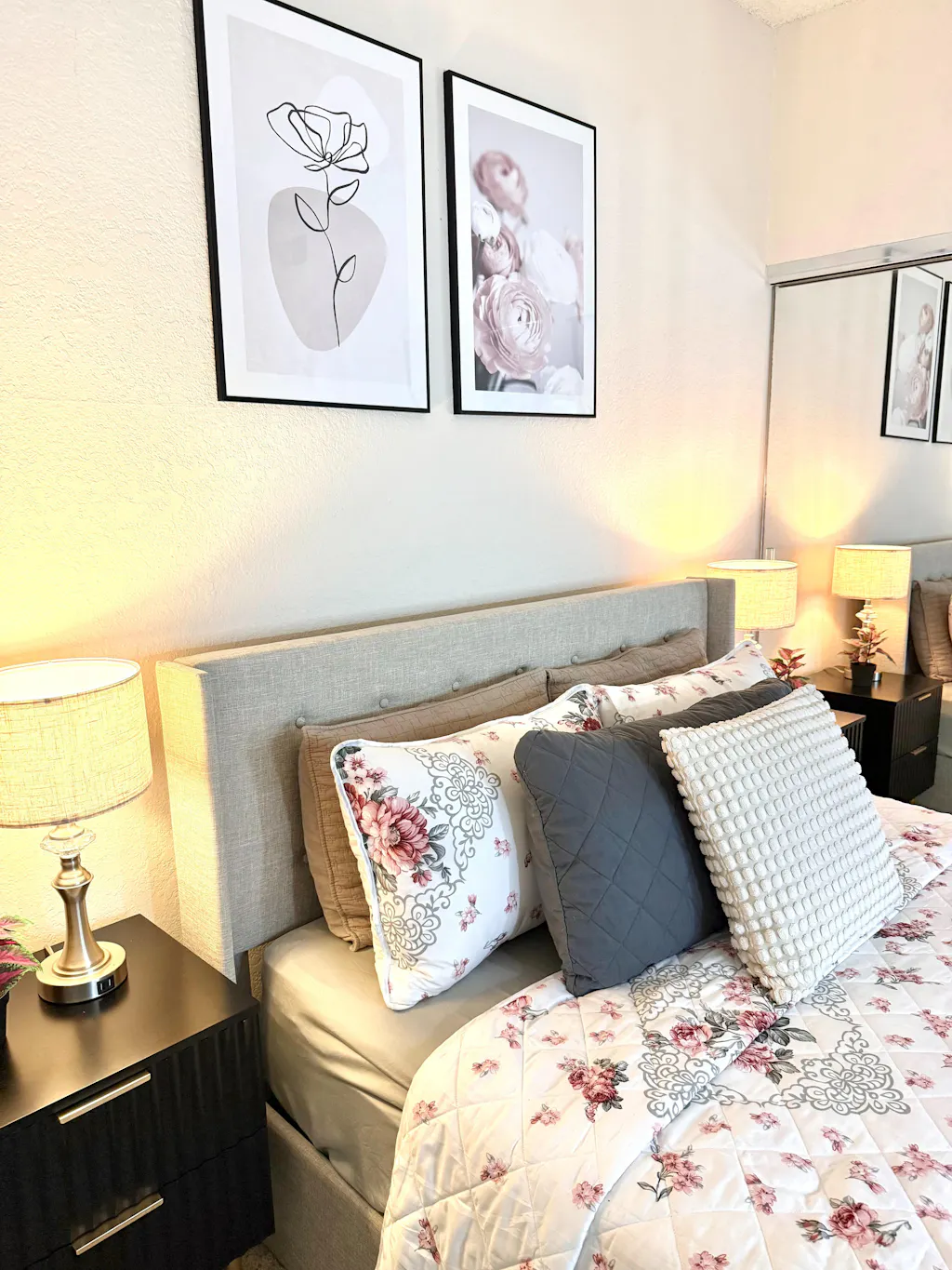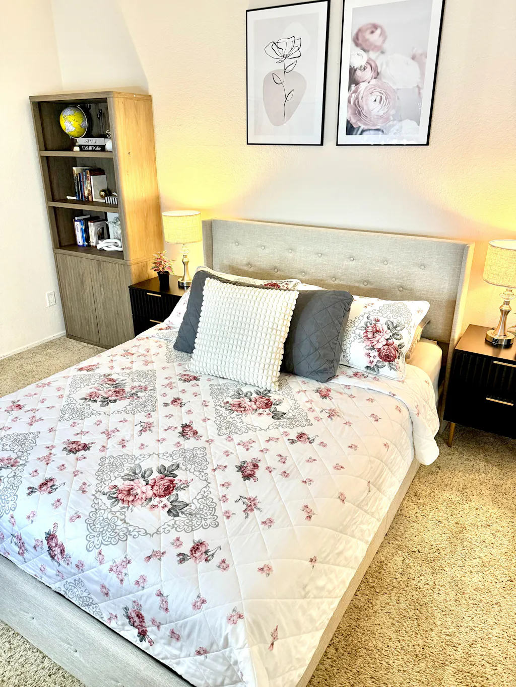 The bed frame's high-back headboard enhances the aesthetic appeal of the bedroom. Featuring a button-tufted design for classic elegance, the headboard adds a touch of timeless glamour to your living space.