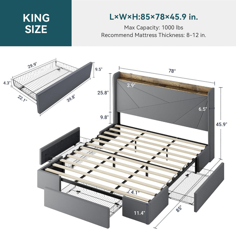 | Package Content | Bed Frame, Headboard, Drawers, Slats |
