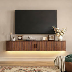 Floating TV Stand with Storage, 63" Wall Mounted Entertainment Center with LED Lights and Power Outlet