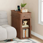 Narrow Side Table with Charging Station, Flip Top Nightstand with Drawer and Sliding Doors
