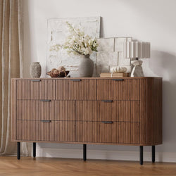 7 Drawer Dresser, Chest of Drawers for Bedroom, 60" Wide Fluted Dresser with Metal Handles and Adjustable Footpads