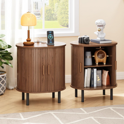 Side Table, End Table with Charging Station, Nightstand with Storage and Sliding Tambour Door