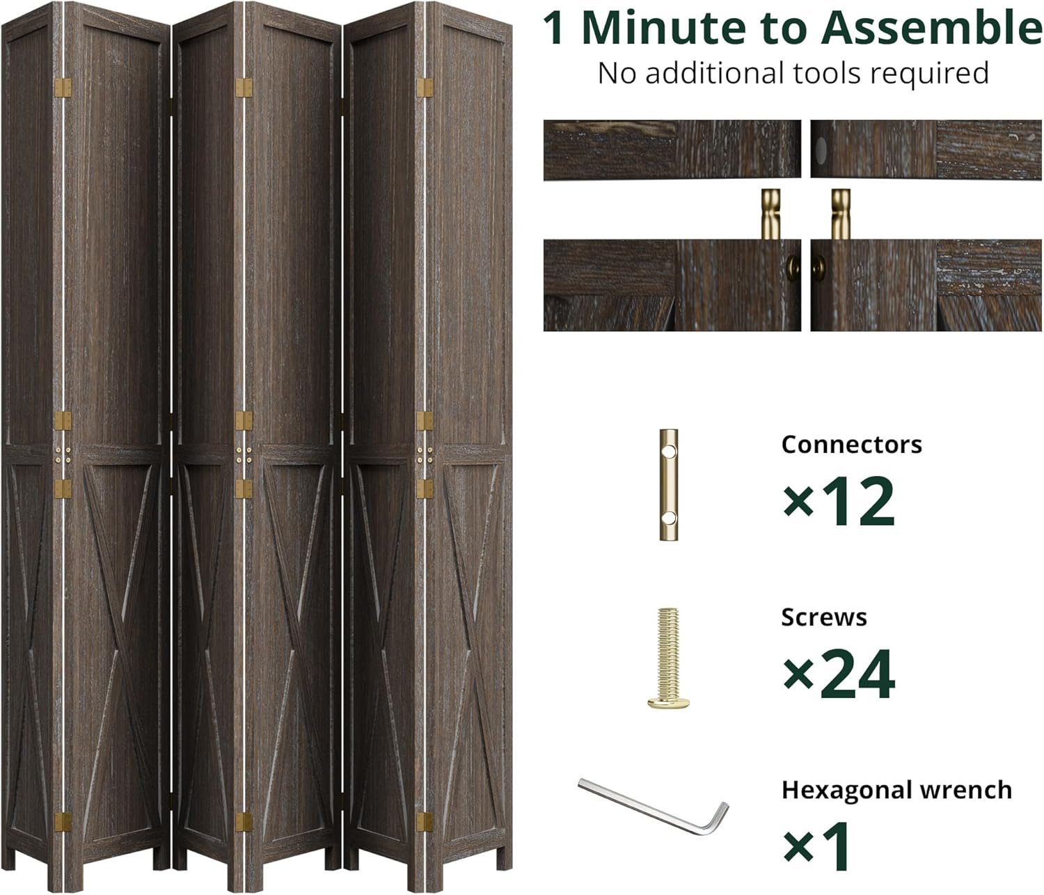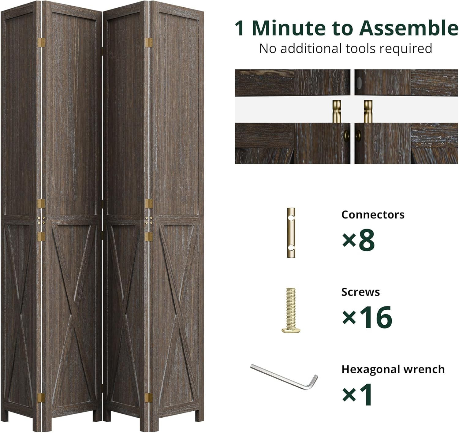 Assembly is quick and straightforward. All hardware is included, and no additional tools are required. Due to different lighting, there may be slight differences in color.