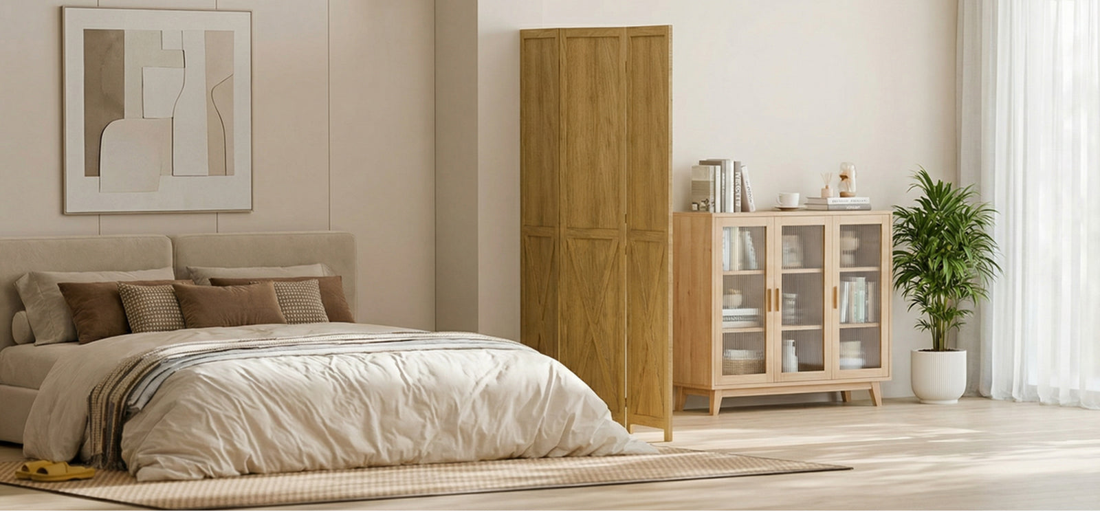 The partition wall divider uses a foldable design, so it opens easily when in use and folds flat when you need to store it. This makes it practical for rooms that change layout, such as home offices, bedrooms, dining areas, or dressing spaces.