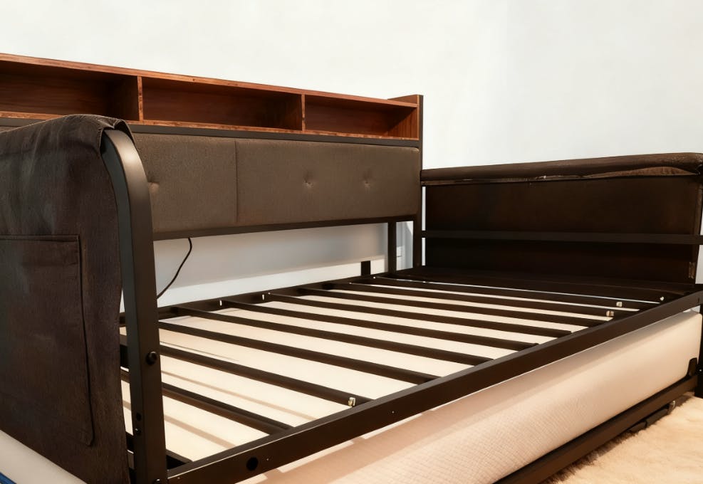 Daybed Sofa Day Bed with Trundle, Twin Bed Frame with Upholstered Headboard, Strong Supports and Charging Station