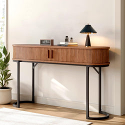 This entryway table features two storage compartments, which are convenient for organizing daily essentials like keys, wallets, or small accessories. The tambour sliding door adds a hidden storage area, giving you extra privacy and helping keep clutter out of sight.
