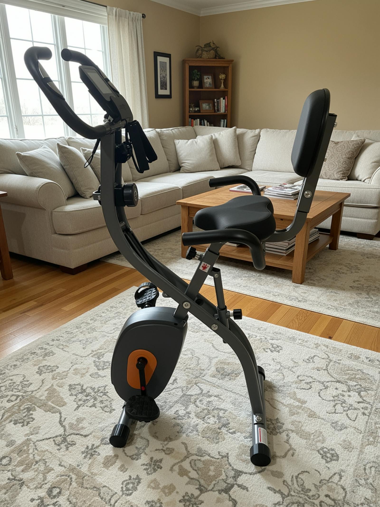 The Home Folding Exercise Bike is perfect for small living rooms as it doesn't take up much space. When not in use, it can be folded up completely for storage in minimal space. The home exercise bike comes with transport wheels that make it easy to move this 4-in-1 exercise bike from one room to another.
