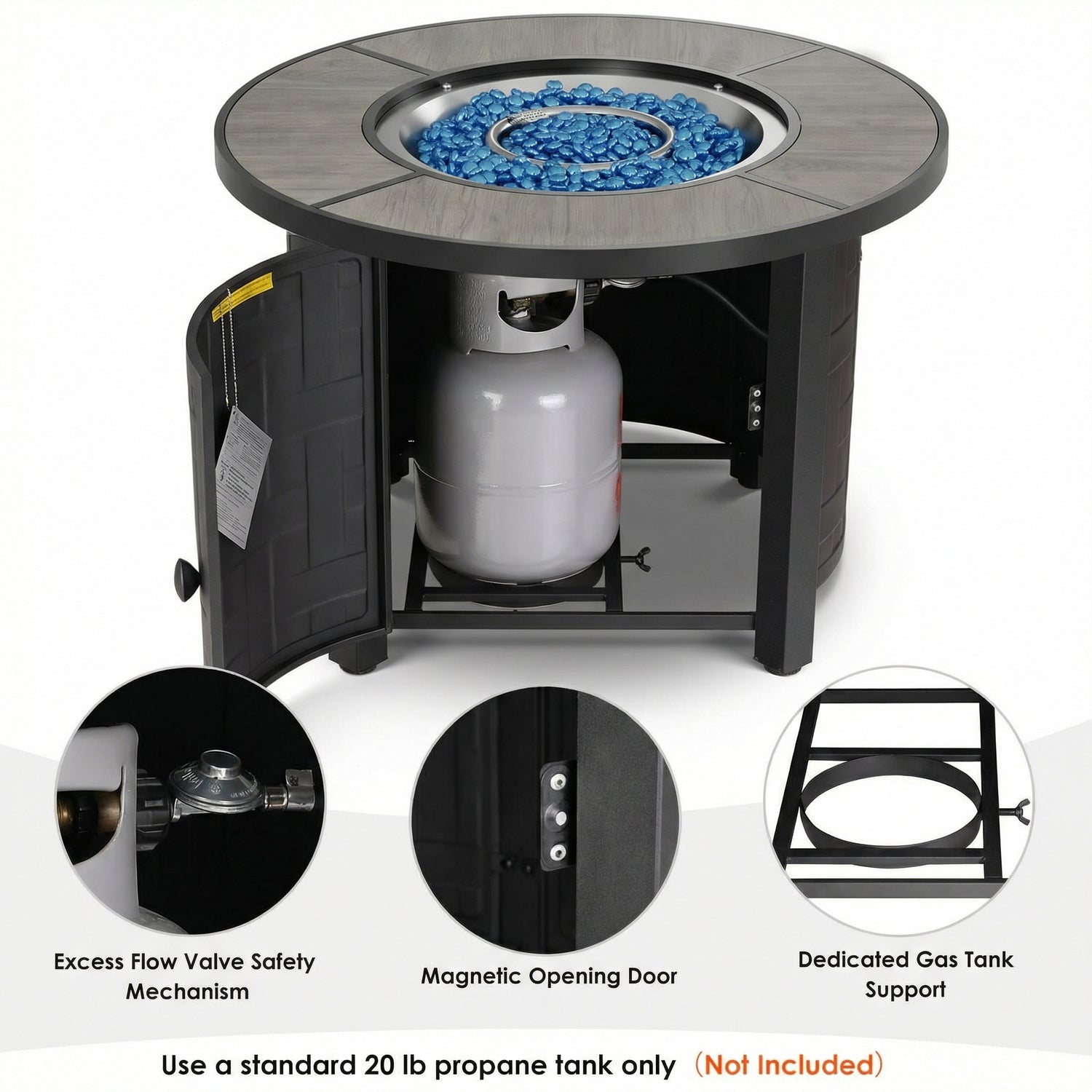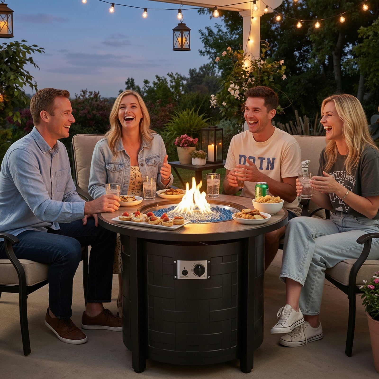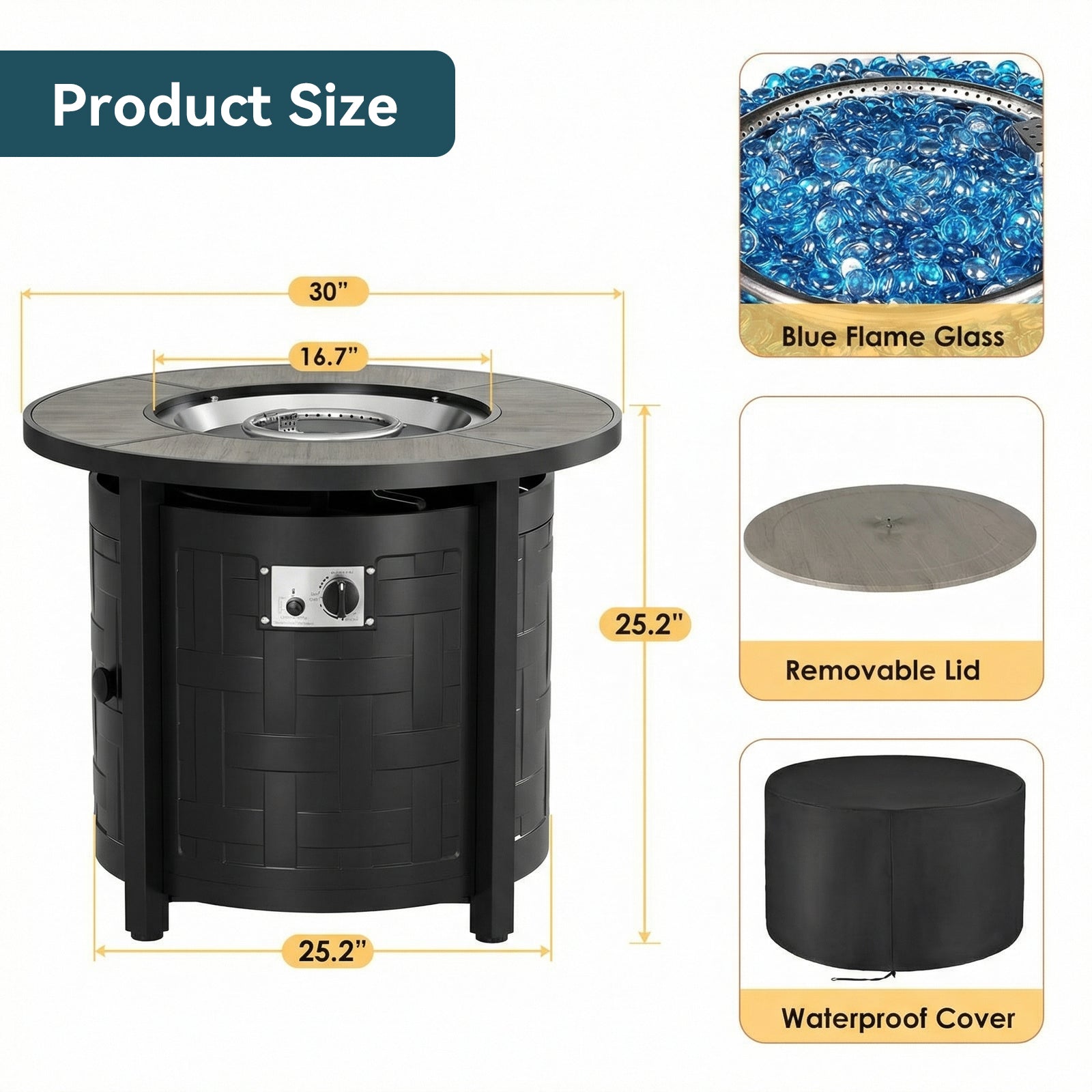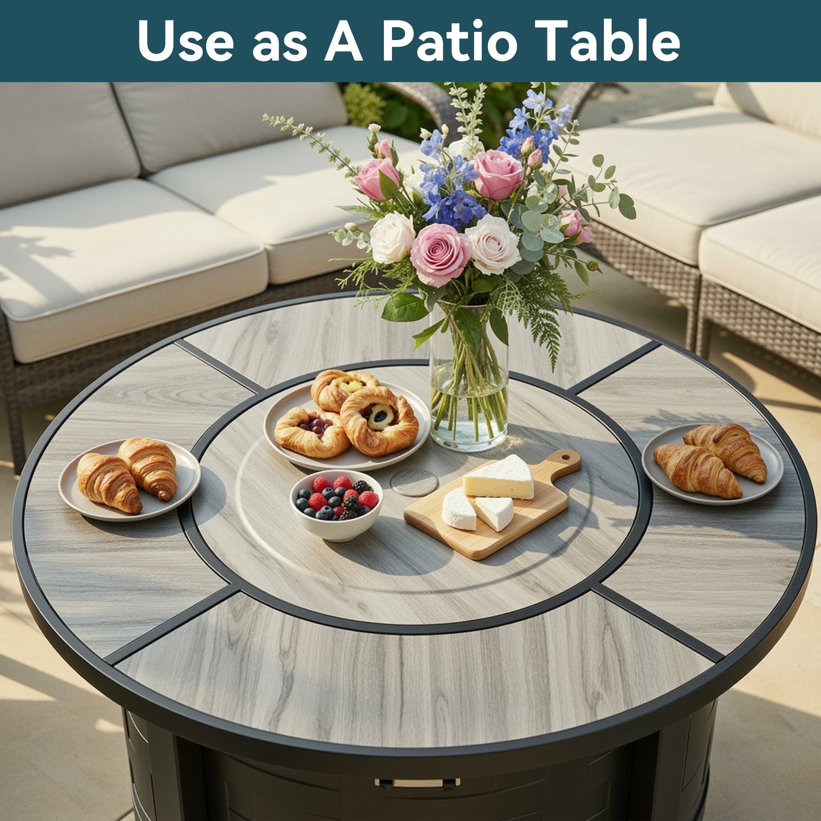 The 30-inch propane fire table provides more space for gatherings of friends and family on cold nights. It is perfect for dining and entertaining without cleaning up smoke, mess, or ashes. This table can also be used as a coffee table and dining table.