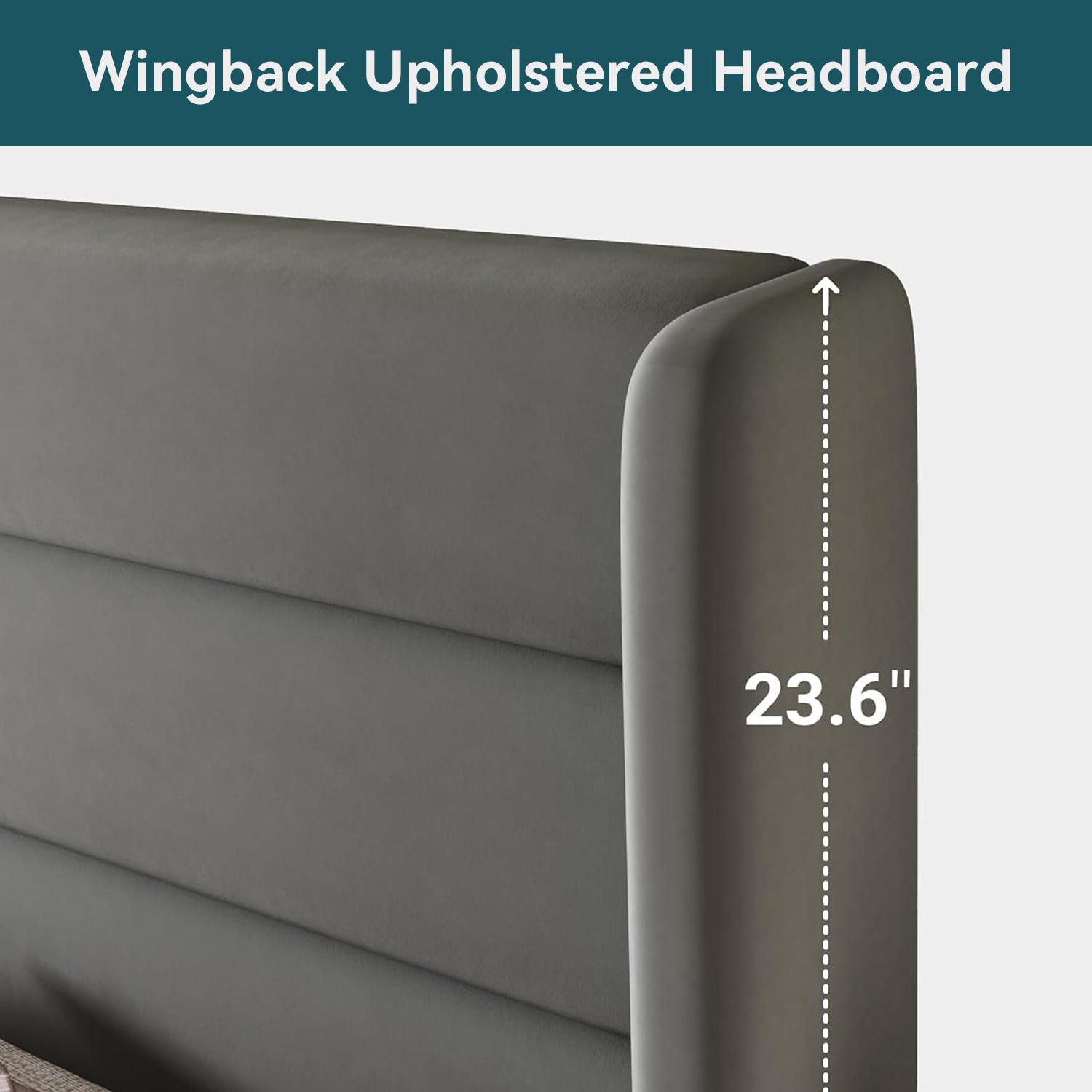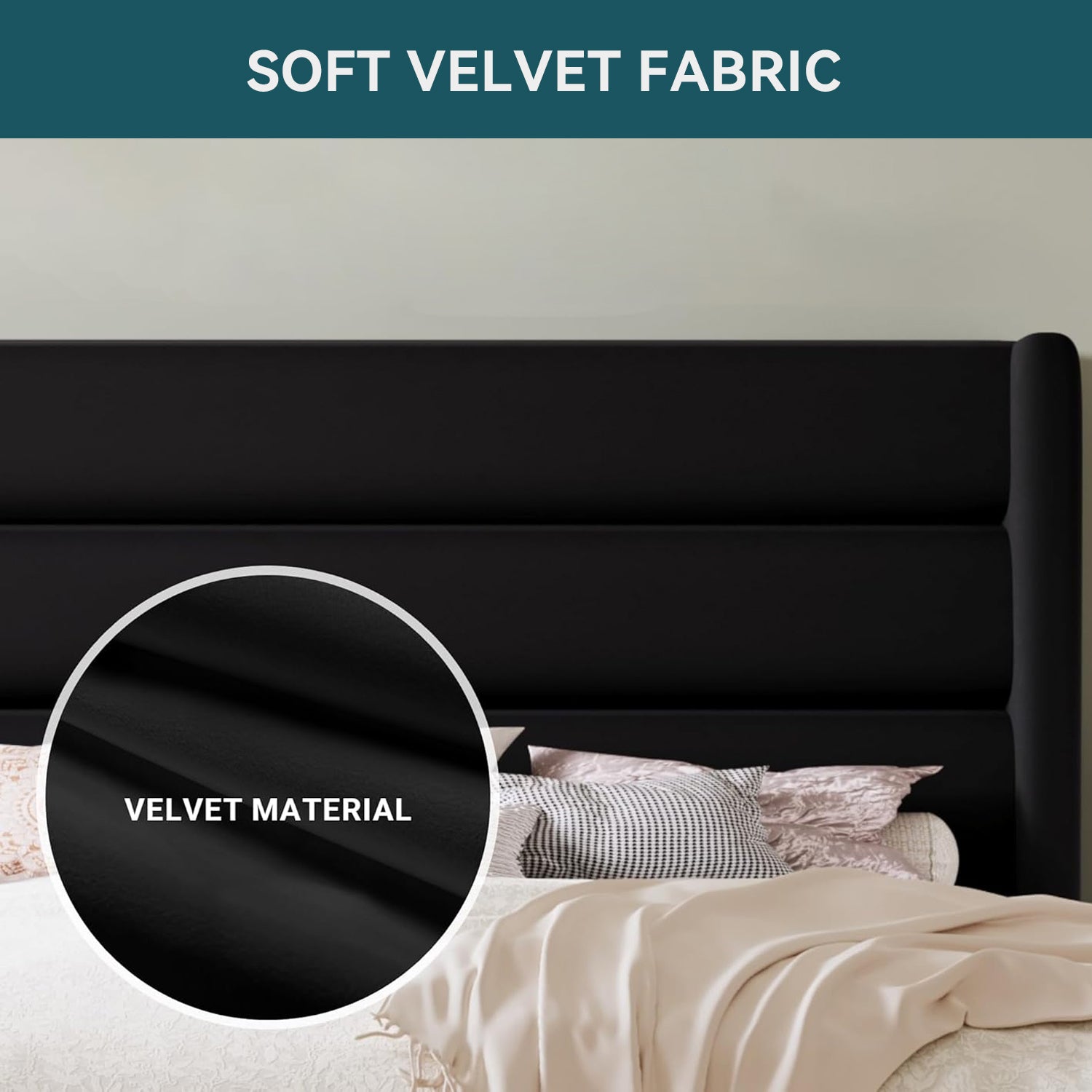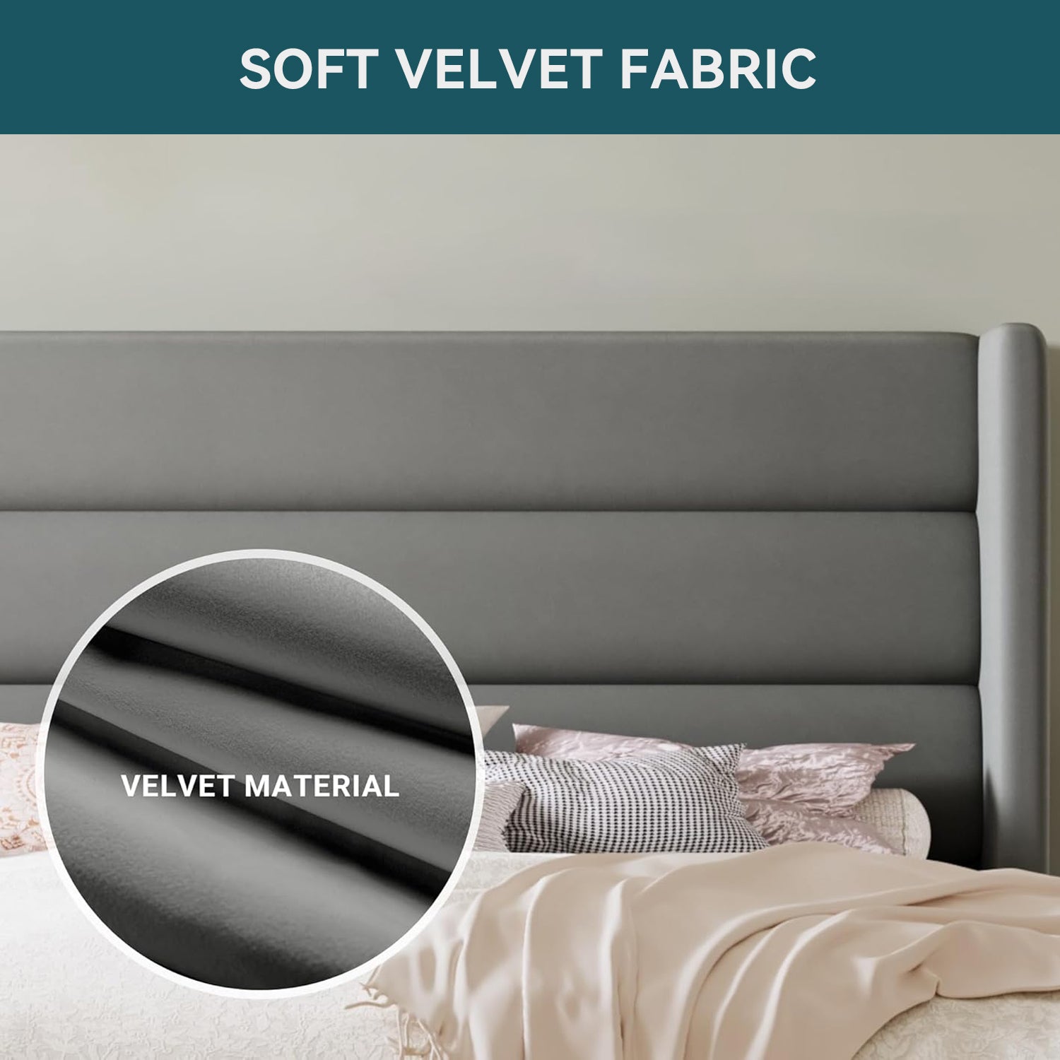 Velvet Platform Bed Frame with Vertical Tufted Wingback Headboard Under Bed Storage, No Box Spring Required