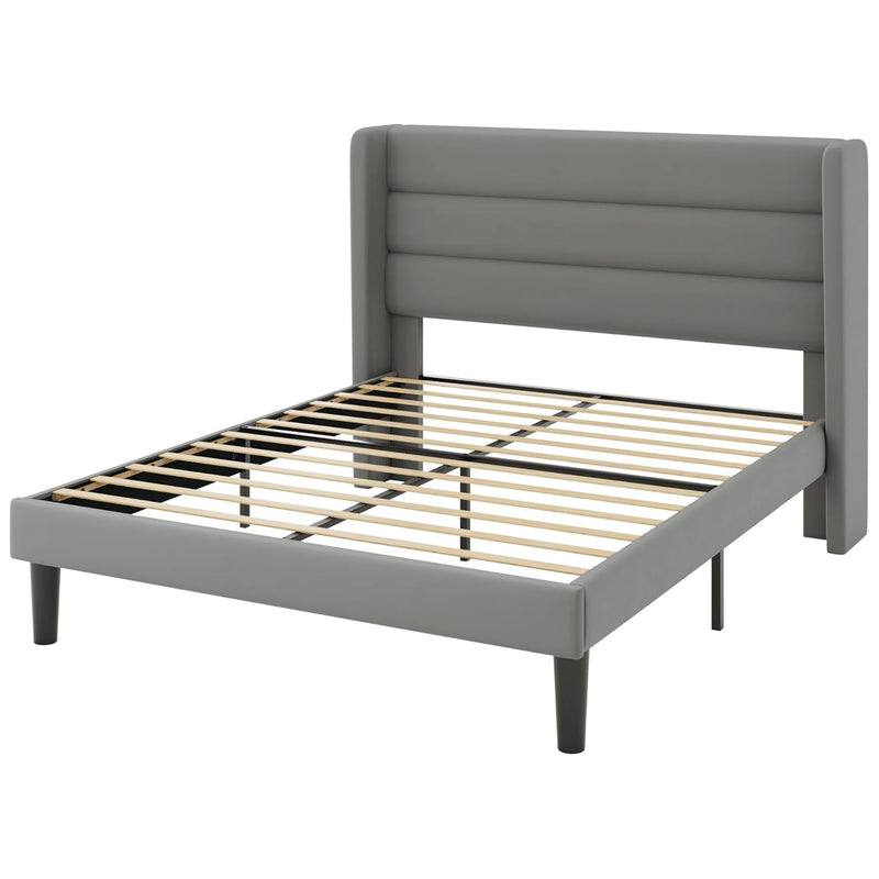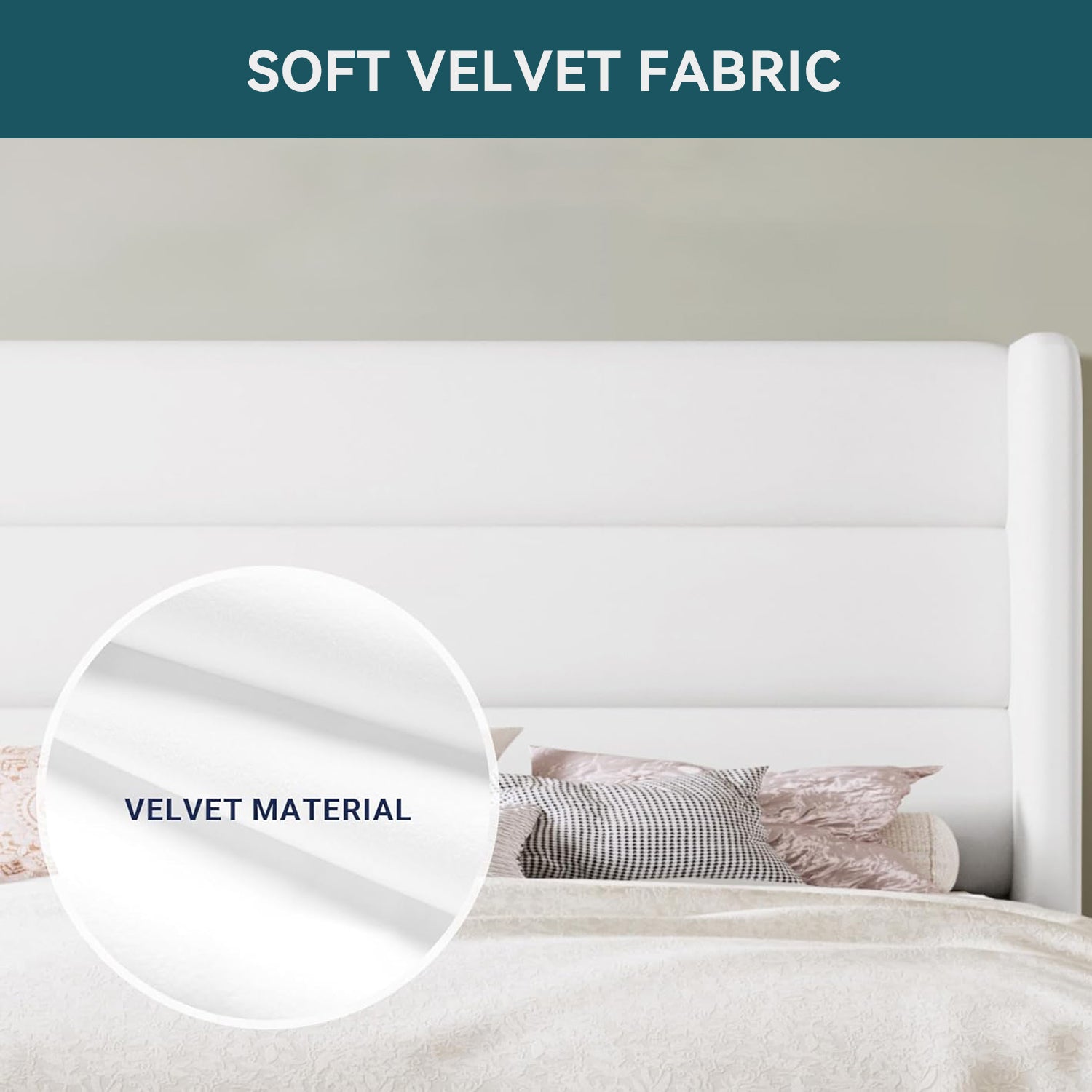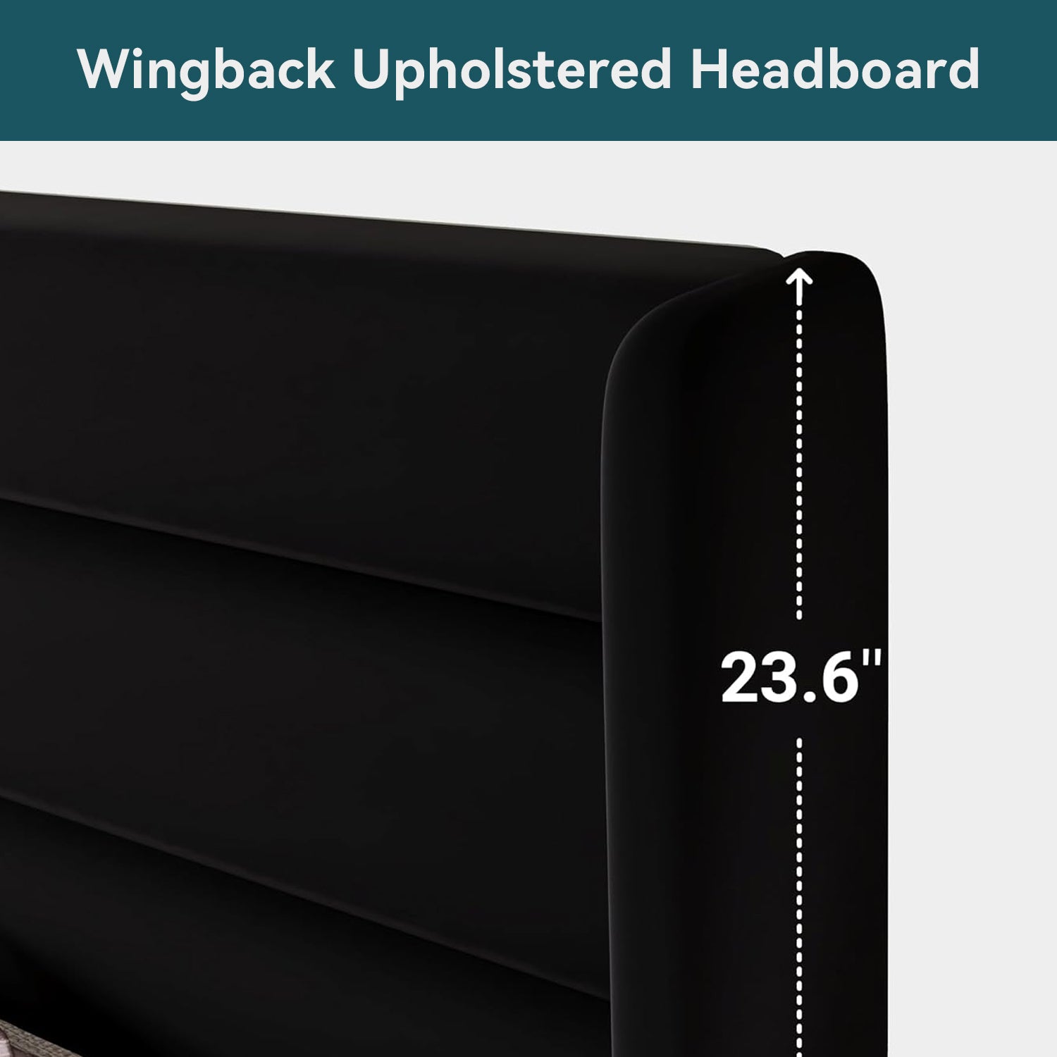 Velvet Platform Bed Frame with Vertical Tufted Wingback Headboard Under Bed Storage, No Box Spring Required