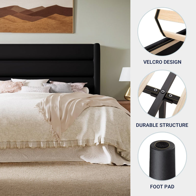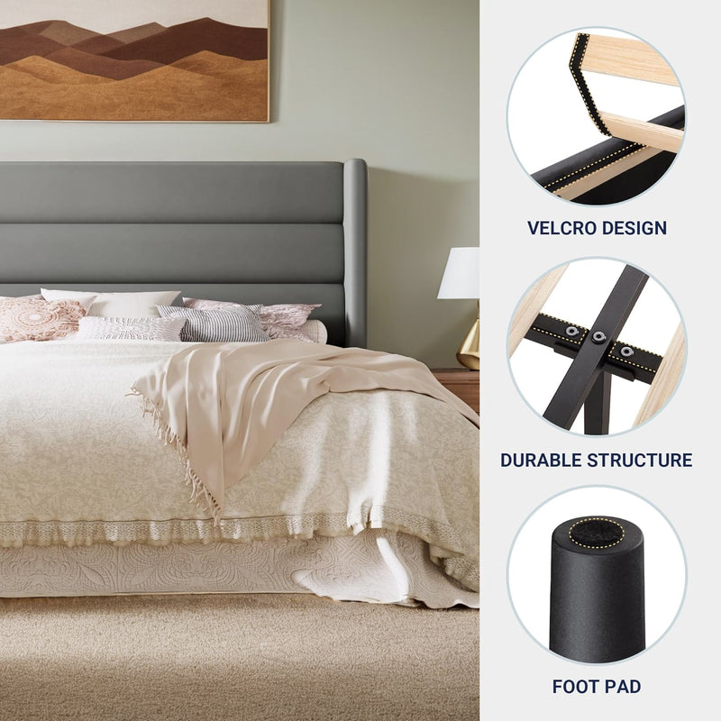 | Special Feature | No Box Spring Needed, Squeak Resistant, Sturdy, Upholstered, Wingback Headboard |