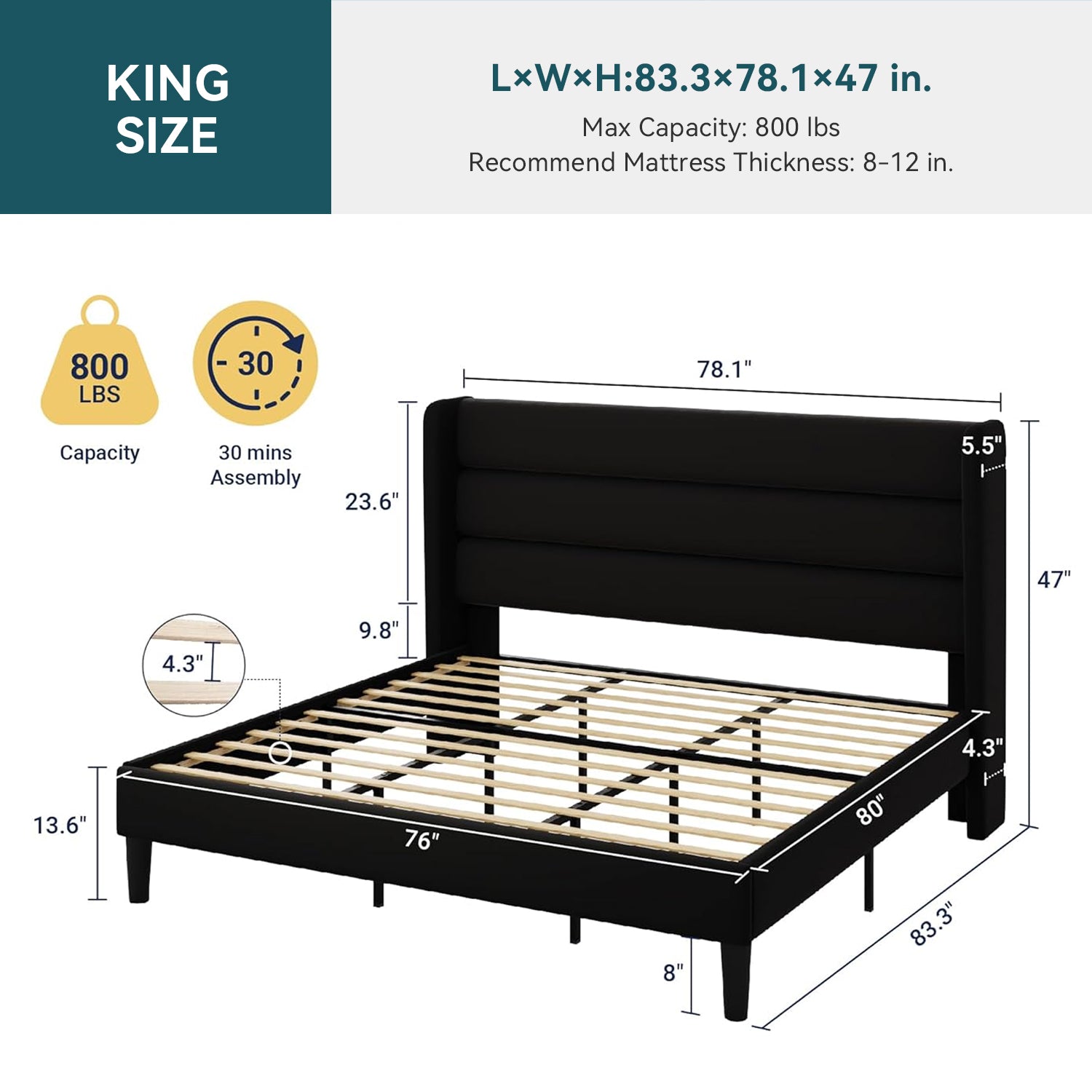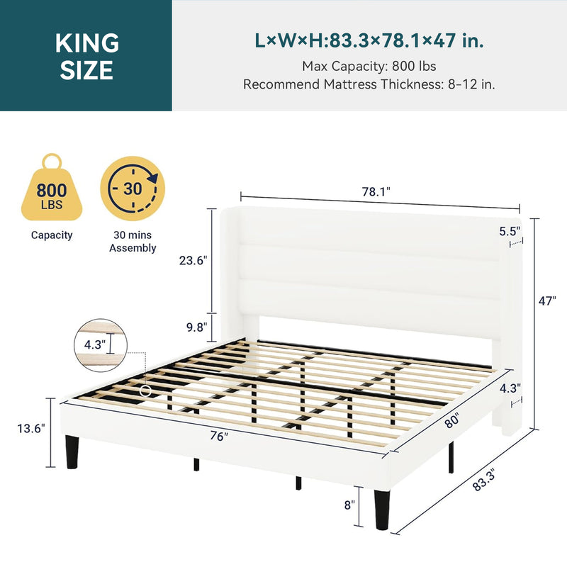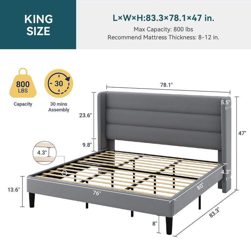 | King Size Bed Frame | 83.3"L x 78.1"W x 47"H |