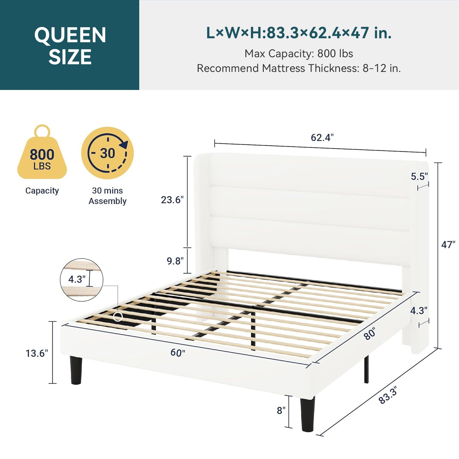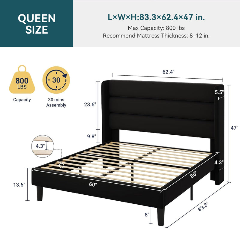 | Queen Size Bed Frame | 83.3"L x 62.4"W x 47"H |