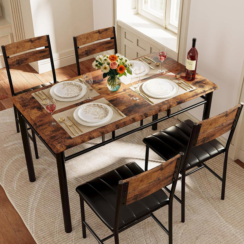 Dining Table Set for 4, Wood Kitchen Table with Upholstered Chairs,Space-Saving Kitchen Table Set Compact Dining Set