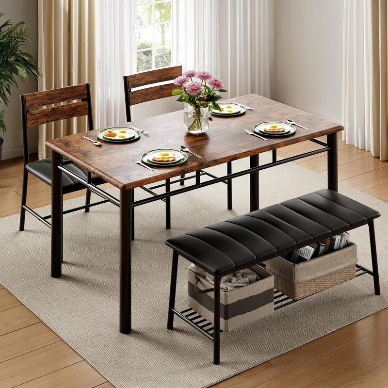 Dining Table Set, Wood Kitchen Table with Upholstered Bench and 2 Chairs,Space-Saving Kitchen Table Set Compact Dining Set