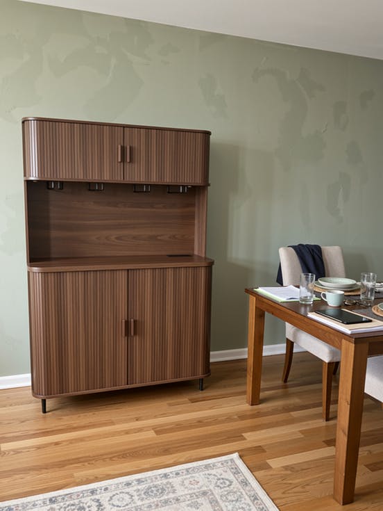You can use it as a bar, a coffee station, or just extra storage in the kitchen area. The layout works well for anyone who likes things organized but doesn’t want furniture that feels too formal or complicated.