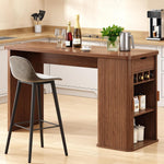 Kitchen Island, Counter Height Table, 59 Inch Long Bar Table with Sliding Door, Wine Rack and Storage Shelf