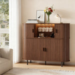 Wine Bar Cabinet with LED Lights, Liquor Cabinet with Charging Station, Detachable Wine Rack and Glass Holder