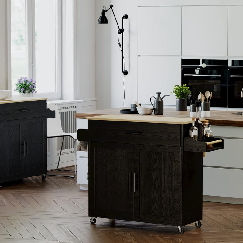 The tabletop of this kitchen island cart features a drop leaf bar, expand it when you need more counter space or just easily drop it down to make it compact to maximize the space.