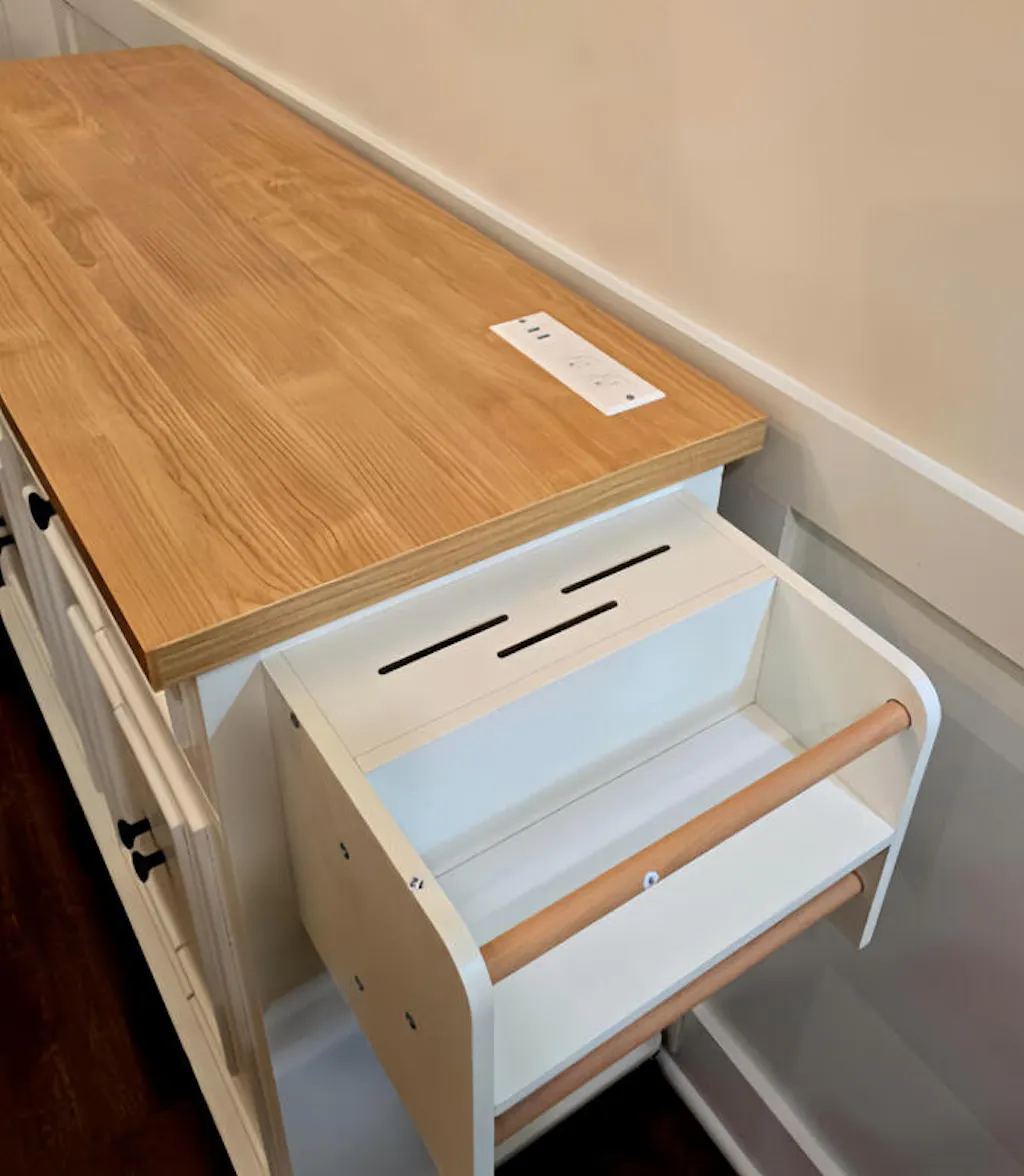The kitchen cart can be moved flexibly in the kitchen through its mobility, making effective use of the effective space in the kitchen. Especially for small kitchens, the design of the cart adds more movable storage space