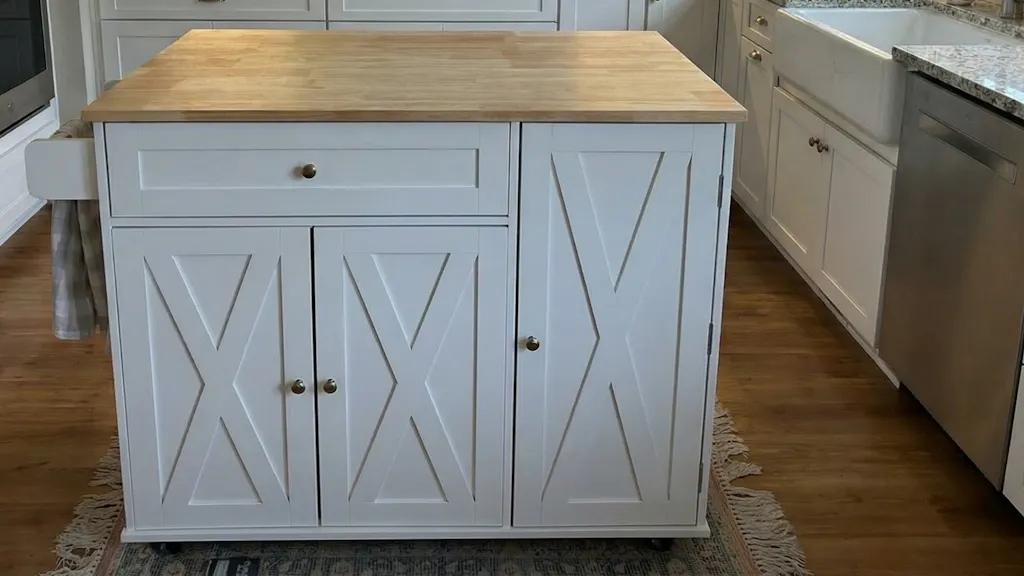 The Rolling Kitchen Island with Drop Leaf and Rubber Wood Top upgrades your kitchen with a perfect solution for small spaces, multifunctional storage, and effortless mobility. Engineered and solid rubber wood ensures durability, style, and practicality.